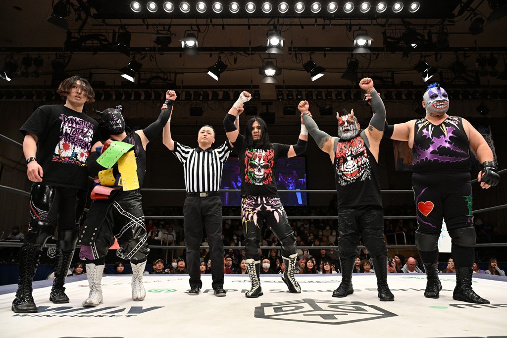 1月3日、東京・後楽園ホールで年始大会「新春☆ドラマチックパレード2026~答え合わせは一年後~」が開催。LDH JAPAN 所属の16人組ダンス&ボーカルグループTHE RAMPAGE・武知海青が上野勇希、To-yと保持するKO-D6人タッグ王座の2度目の防衛に成功。2・22後楽園での「デビュー2周年記念試合」でKO-D無差別級&DDT UNIVERSAL2冠王者・上野とのシングル戦が決定。1・25後楽園ではHARASHIMAと組み、KONOSUKE TAKESHITA&秋山準との対戦が決まった。