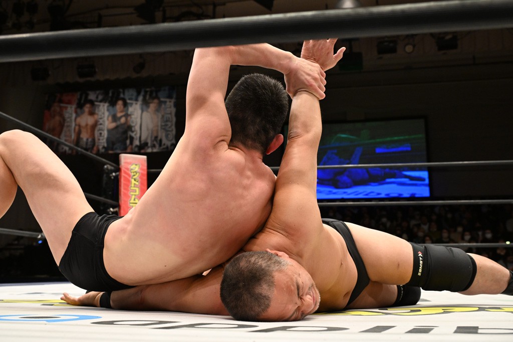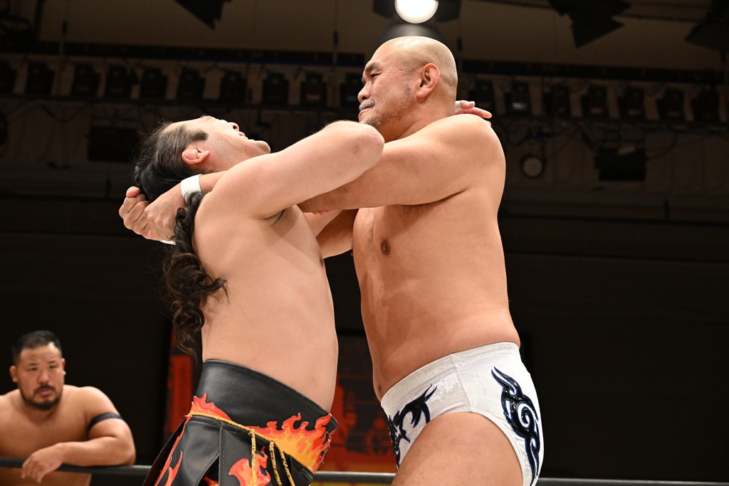 武知と初対決になるTAKESHITAは「武知海青とやっと対角に立てるのも、久しぶりに秋山さんと組めるのも楽しみ。去年の1・3後楽園で秋山さんと組んで、飯野雄貴&納谷幸男と対戦したんですけど……。米国のプロレスに慣れて、日本のスタイルを失いかけた、怖いプロレスを取り戻せたんで、体感したいと思います」、秋山は「武知君が今まで体験したことがないことを俺はやると思う。彼の運動神経とか見て、やっと来たかという感じで楽しみにしてます」と腕をぶした。