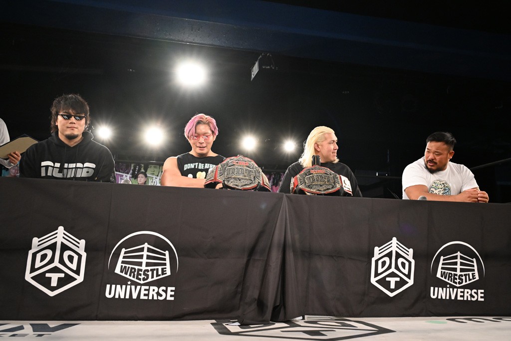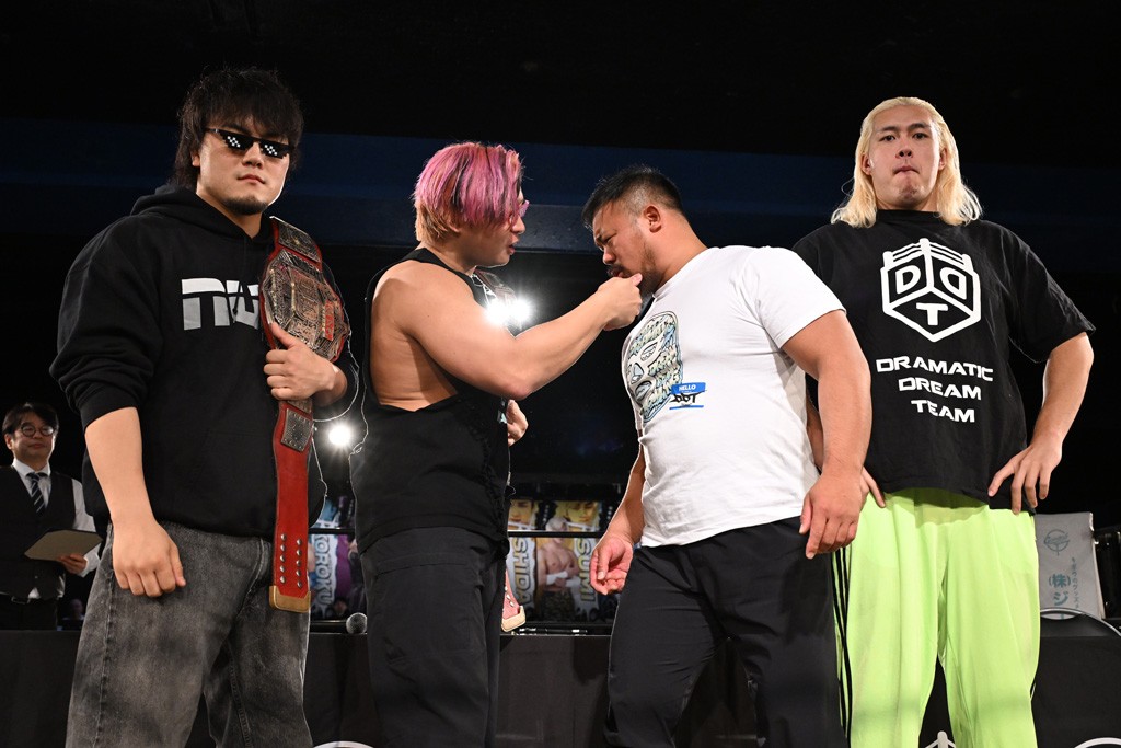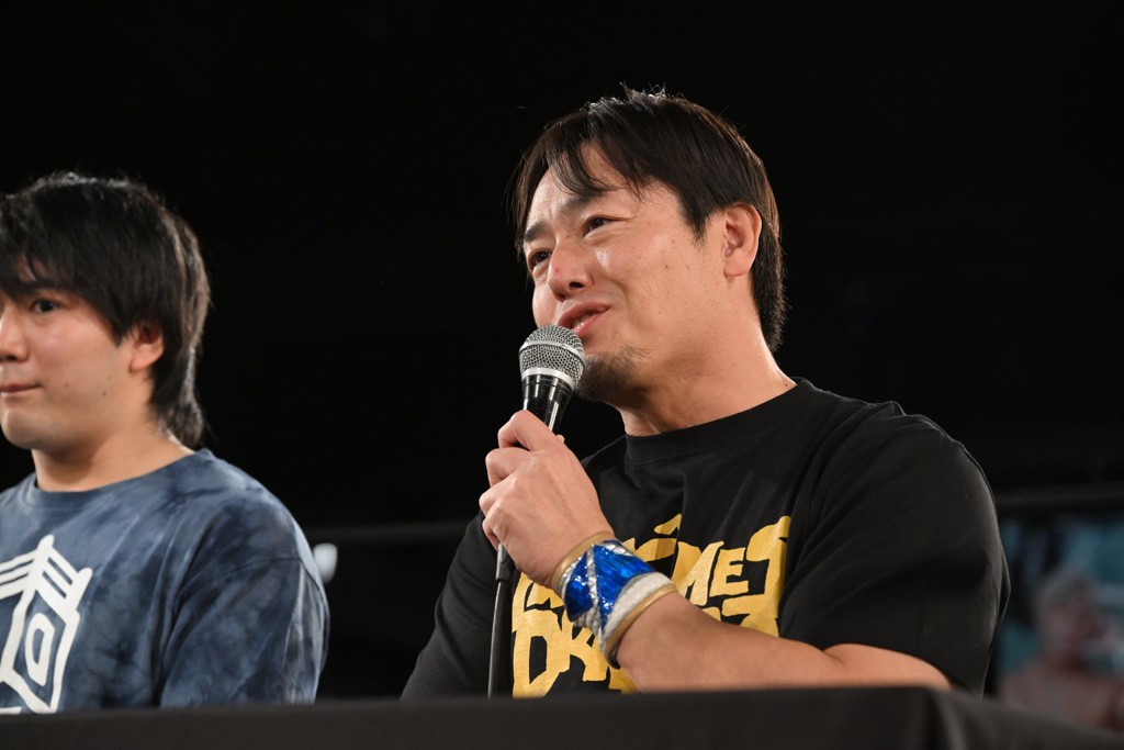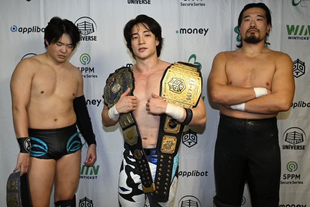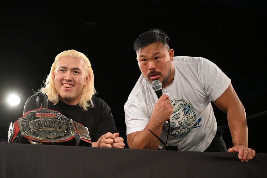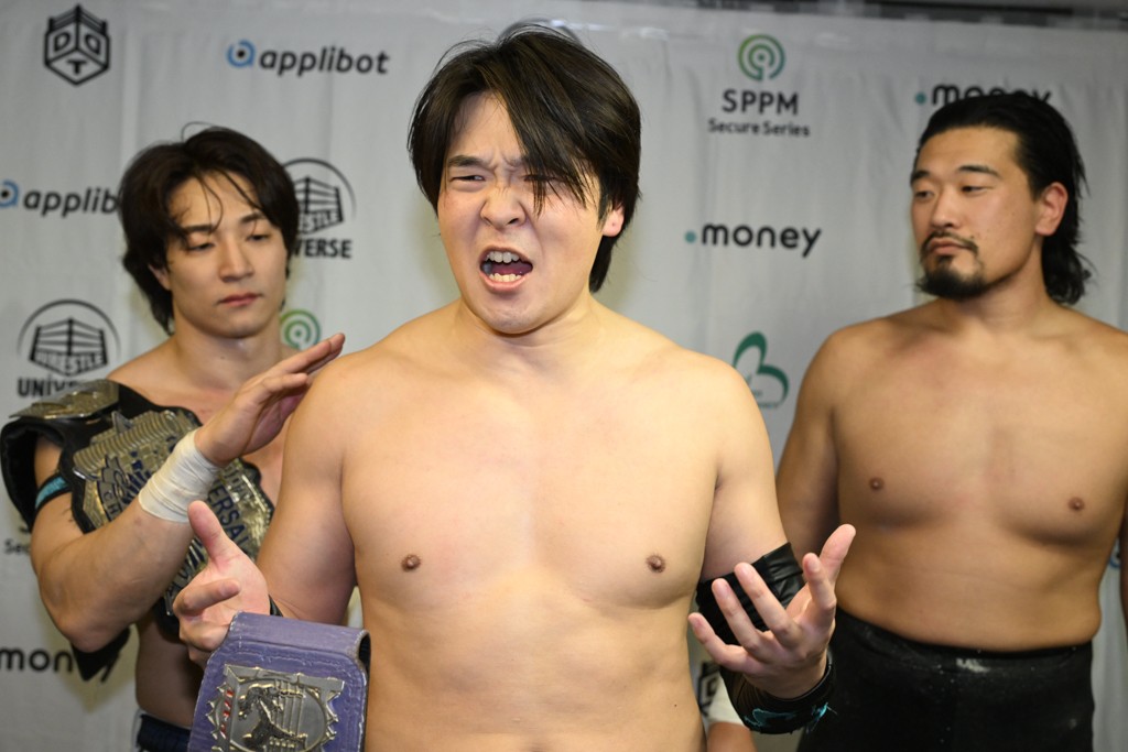 上野は「佐々木大輔とは半年間当たり続けたと思ったら、半年間以上当たらず。そして久しぶりの佐々木大輔。佐々木さん、どんだけ僕のこと好きなんですか? 僕は全然好きじゃないですよ。でも、クリスがああやってベルトを狙いに来てくれるのはうれしいもので、僕が学びを得た2人からどっちにも勝っちゃったら、どんなとこまで行けるんだろうか? 昨日、タケちゃん(KONOSUKE TAKESHITA)、武知海青、クリス、新日本プロレス・棚橋弘至さん。いろんな人のエネルギーを持った東京ドームを見て、僕たちが、DDTが行かないといけないって思ってますから。それに行くために全力を尽くします。クリスだろうが、佐々木大輔だろうが、僕が突っ走って行くとこまで行きますよ。大きいところに行くよ」と東京ドームでの仲間たちのファイトに刺激を受けた様子。