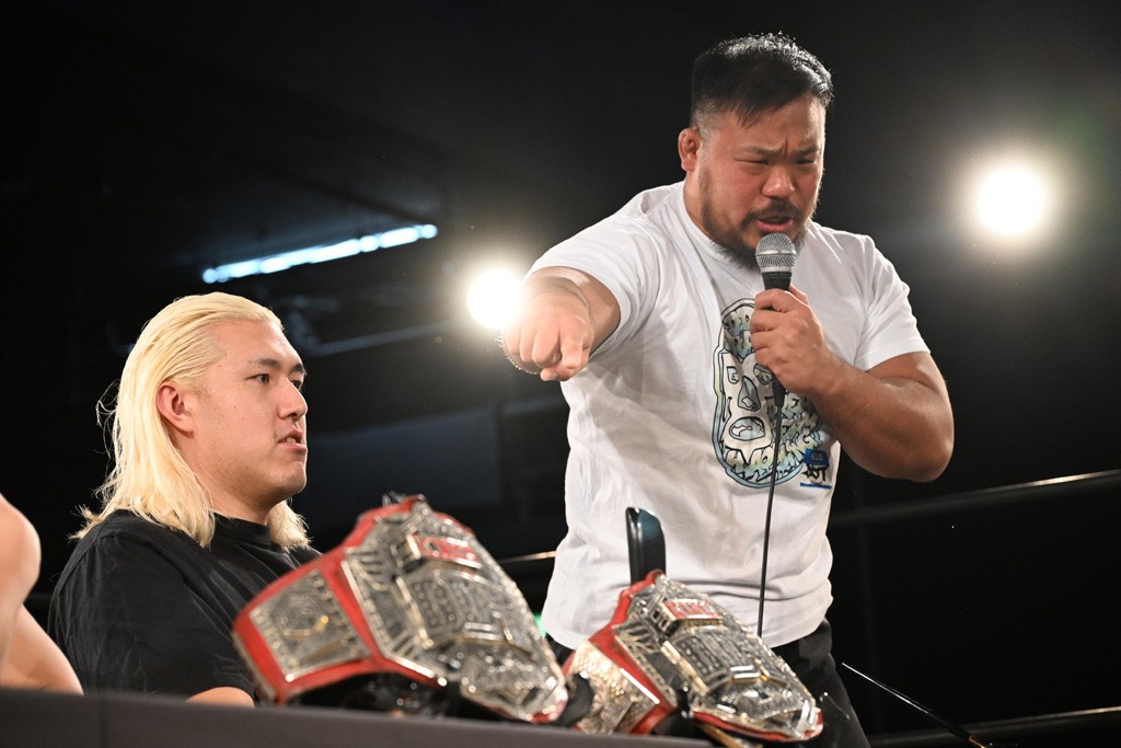 飯野雄貴&納谷幸男がKO-Dタッグ王座前哨戦でMAO&KANONを撃破しベルト奪還宣言!「おまえら2人ともぶっ潰して、俺がてめえらの腰からベルト剥ぎ取ってやる!」