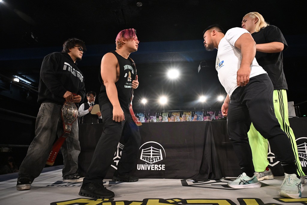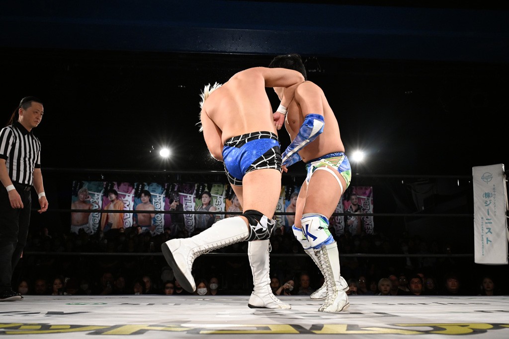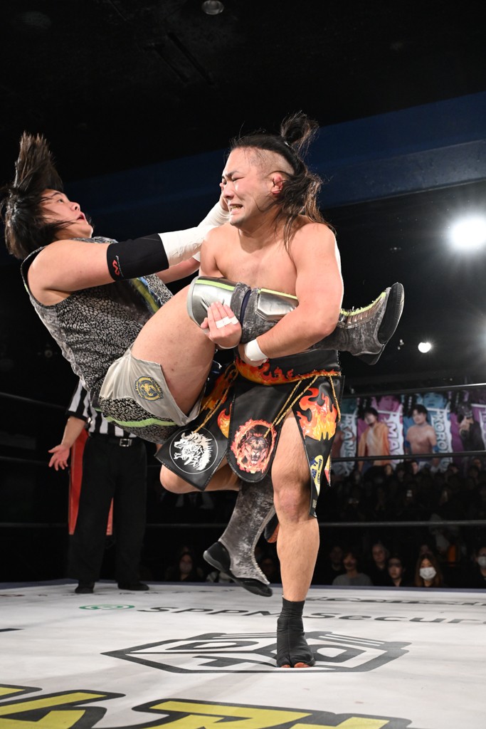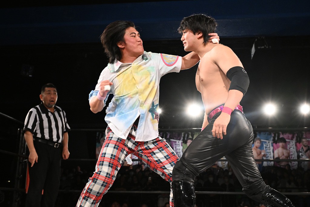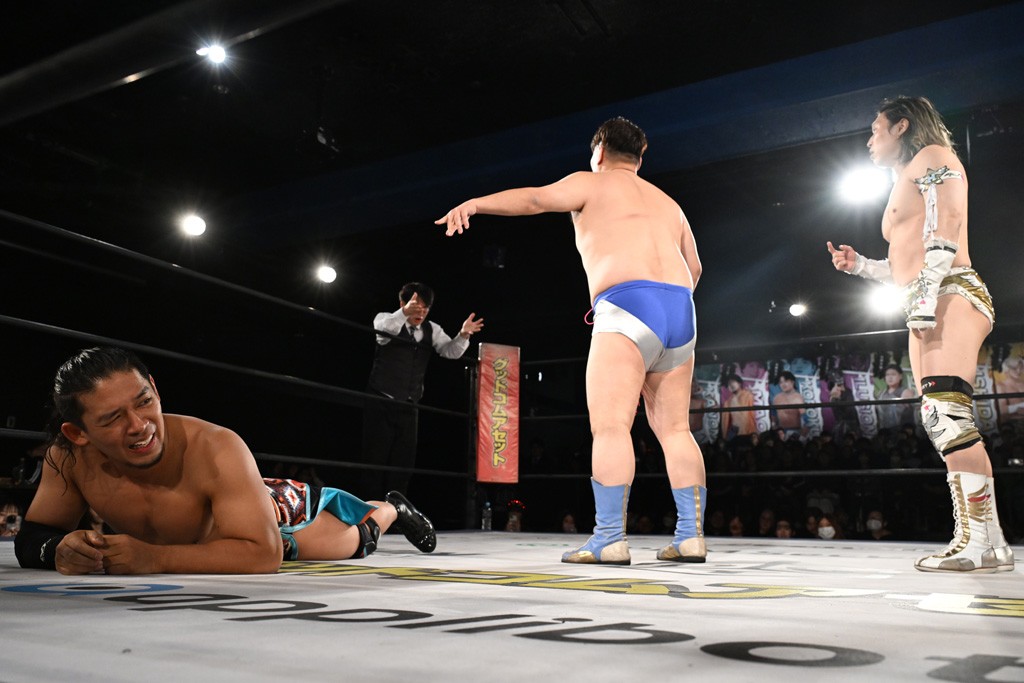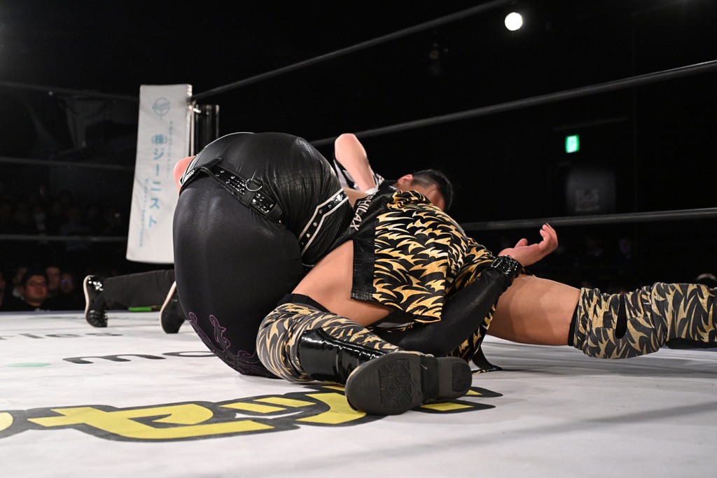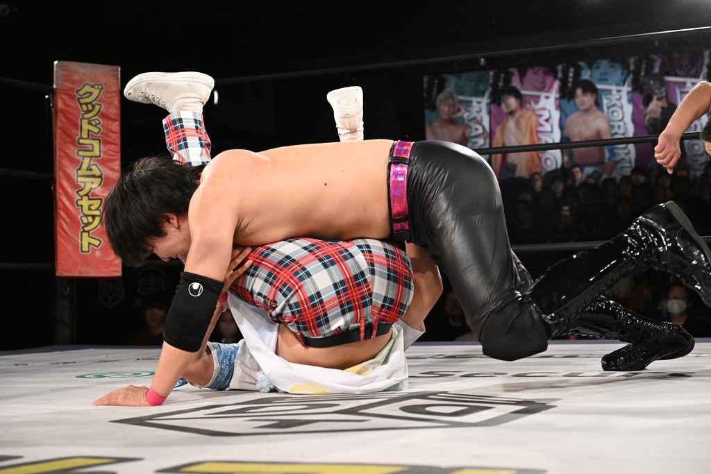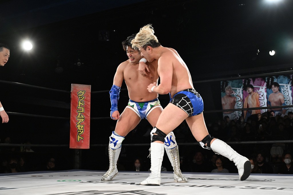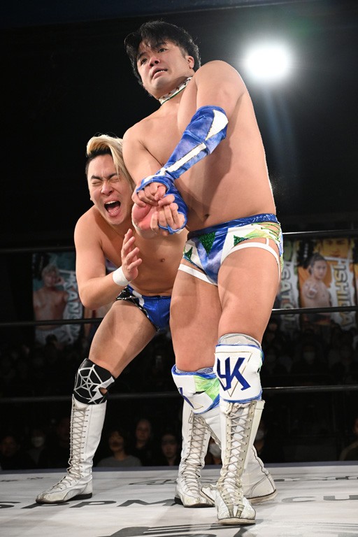 1・25後楽園でのKO-Dタッグ選手権試合(王者組=MAO&KANON《STRANGE LOVE CONNECTION=S.L.C.》vs挑戦者組=飯野雄貴&納谷幸男《The Apex》)の前哨戦はThe ApexがS.L.C.を撃破し、ベルト奪還を宣言した。