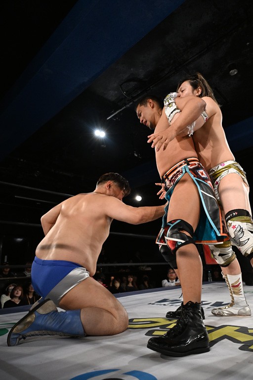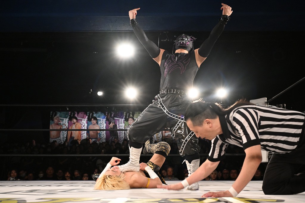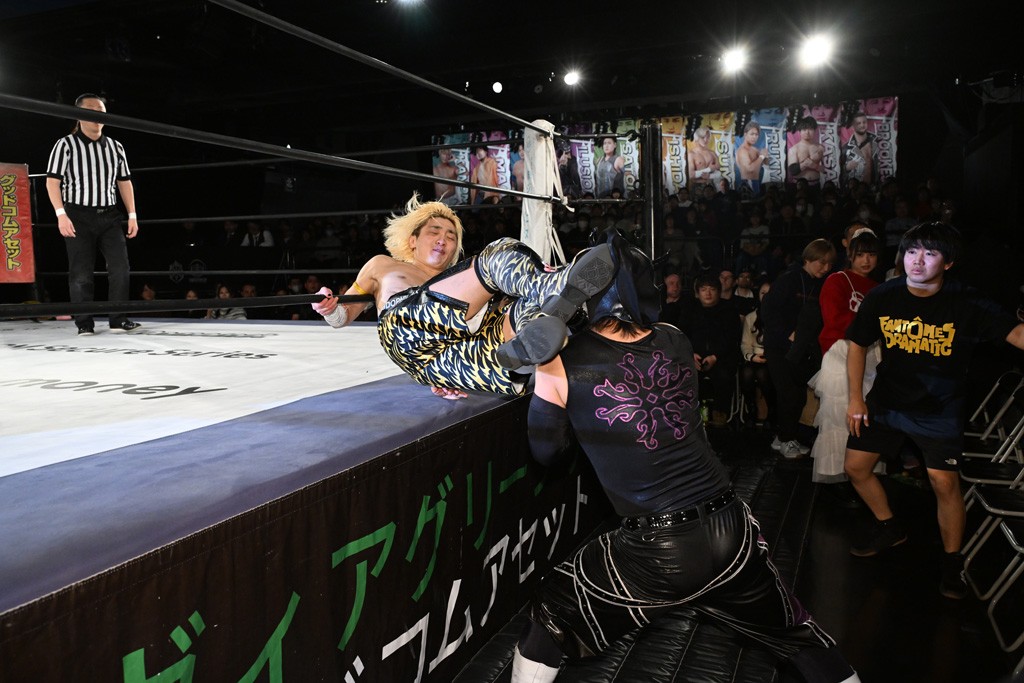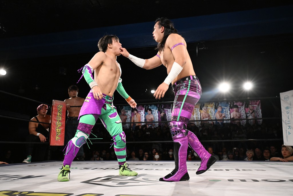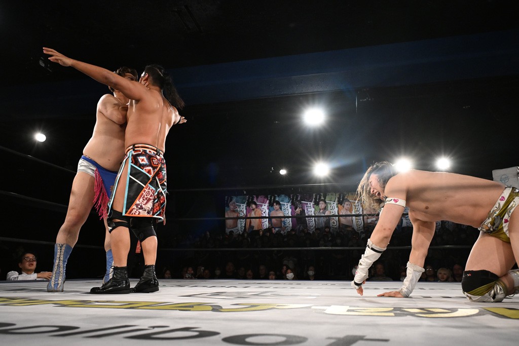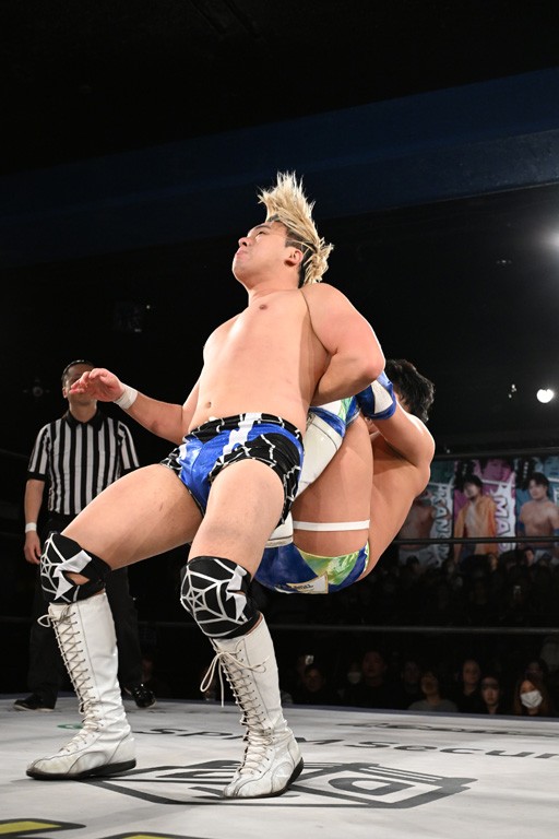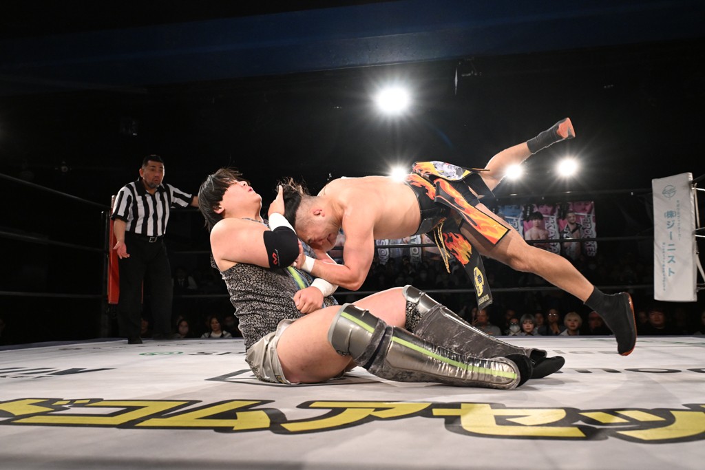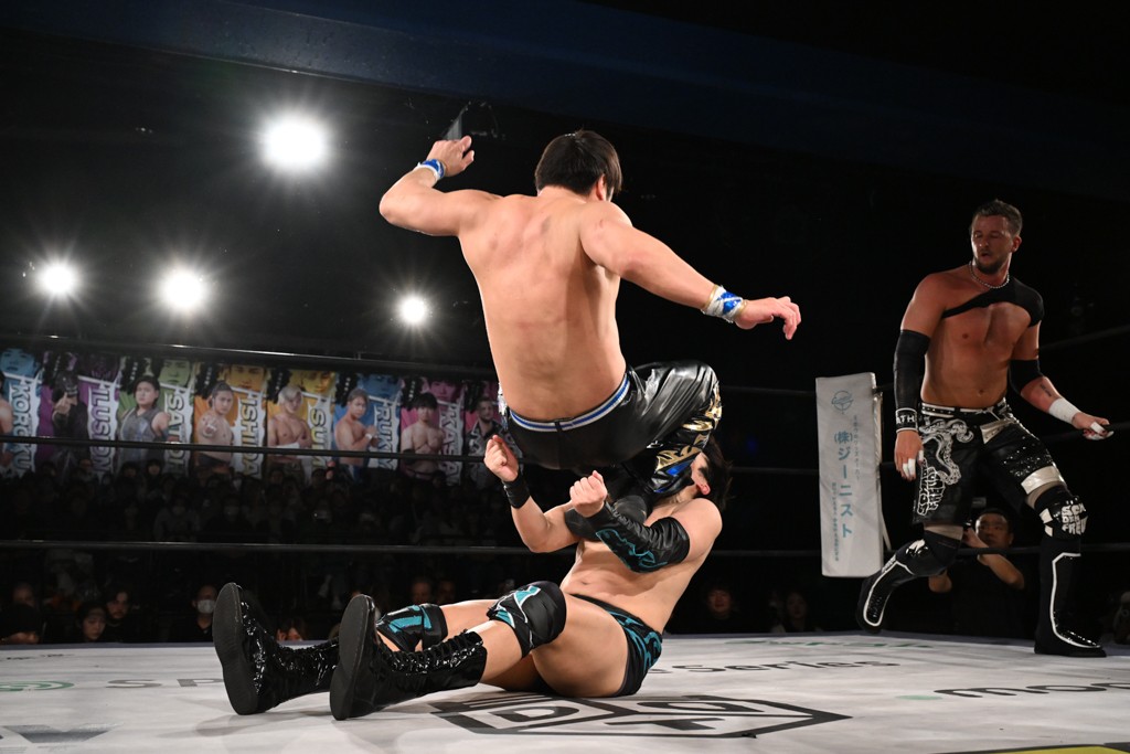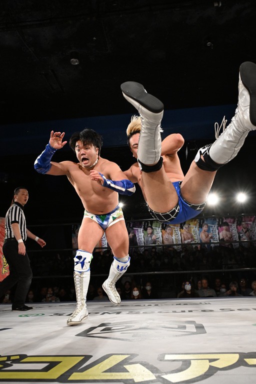 1・25後楽園でのKO-Dタッグ選手権試合(王者組=MAO&KANON《STRANGE LOVE CONNECTION=S.L.C.》vs挑戦者組=飯野雄貴&納谷幸男《The Apex》)の前哨戦はThe ApexがS.L.C.を撃破し、ベルト奪還を宣言した。
