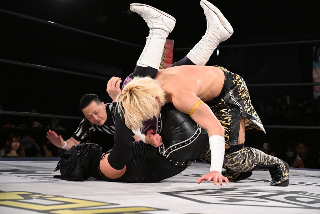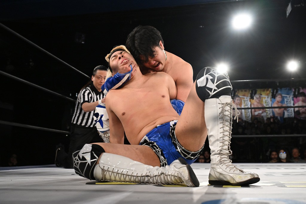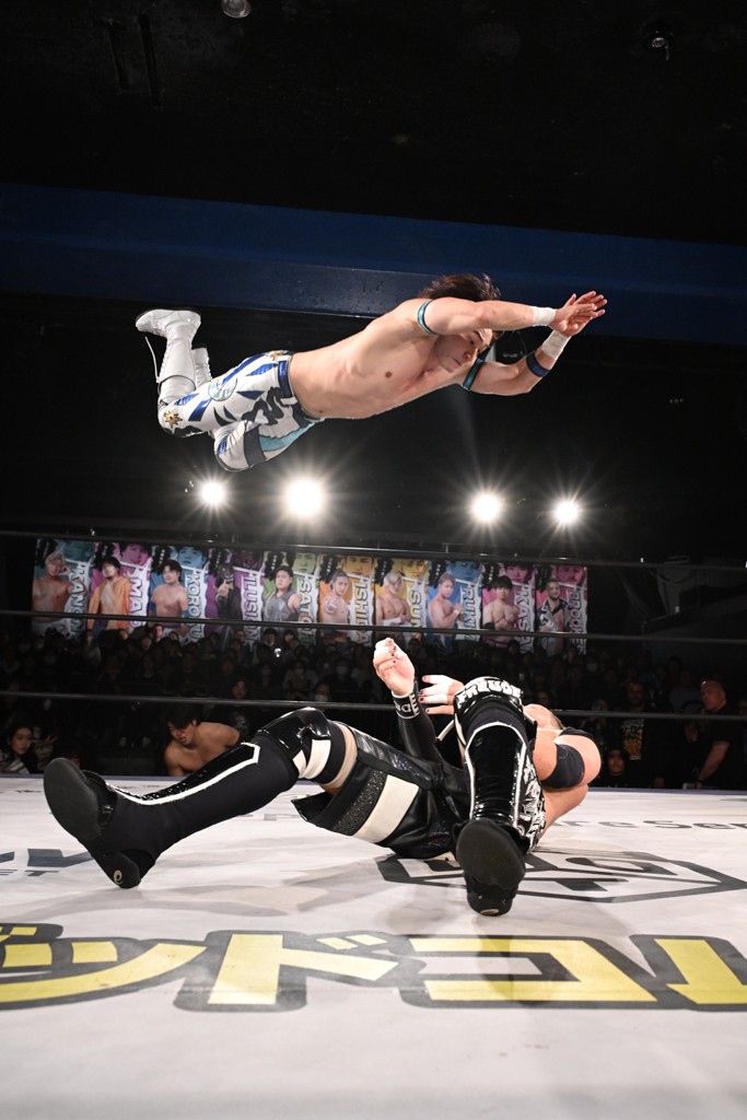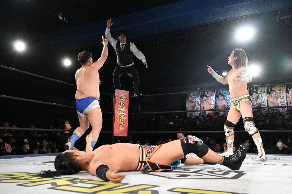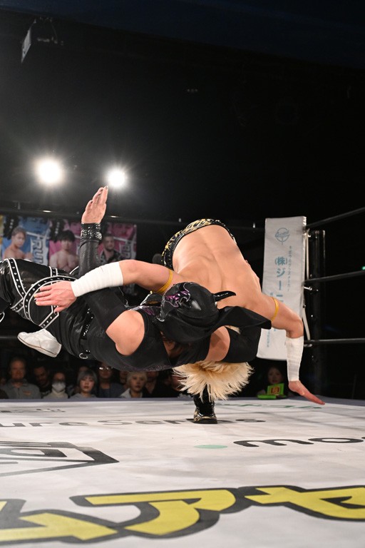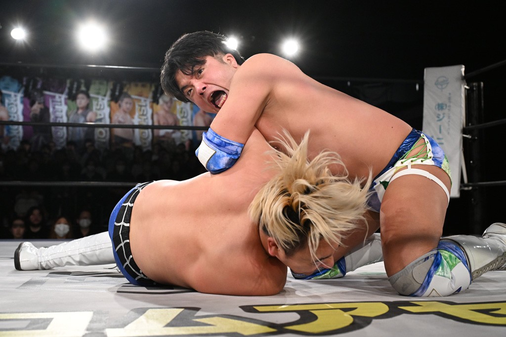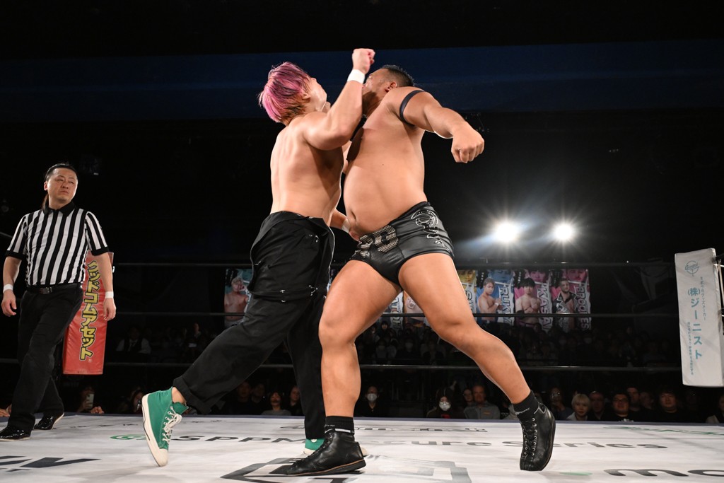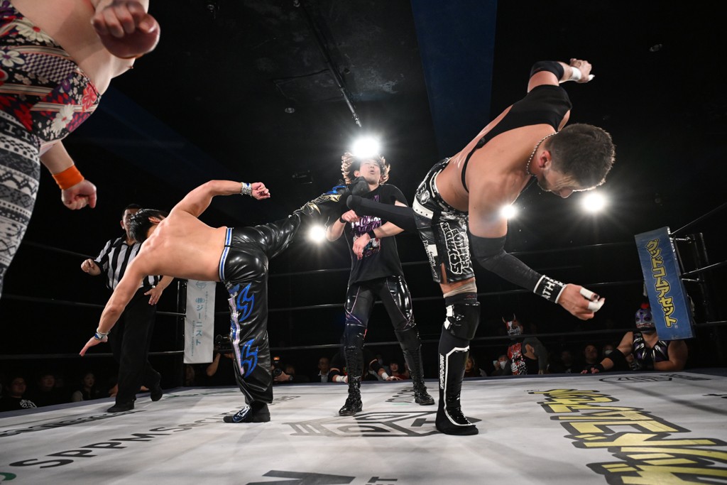 1・25後楽園でのKO-Dタッグ選手権試合(王者組=MAO&KANON《STRANGE LOVE CONNECTION=S.L.C.》vs挑戦者組=飯野雄貴&納谷幸男《The Apex》)の前哨戦はThe ApexがS.L.C.を撃破し、ベルト奪還を宣言した。