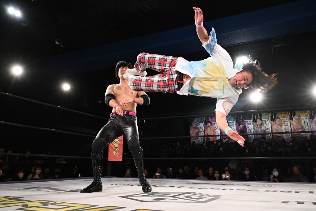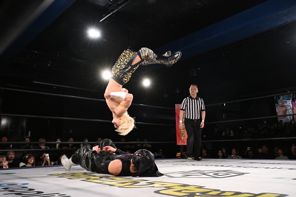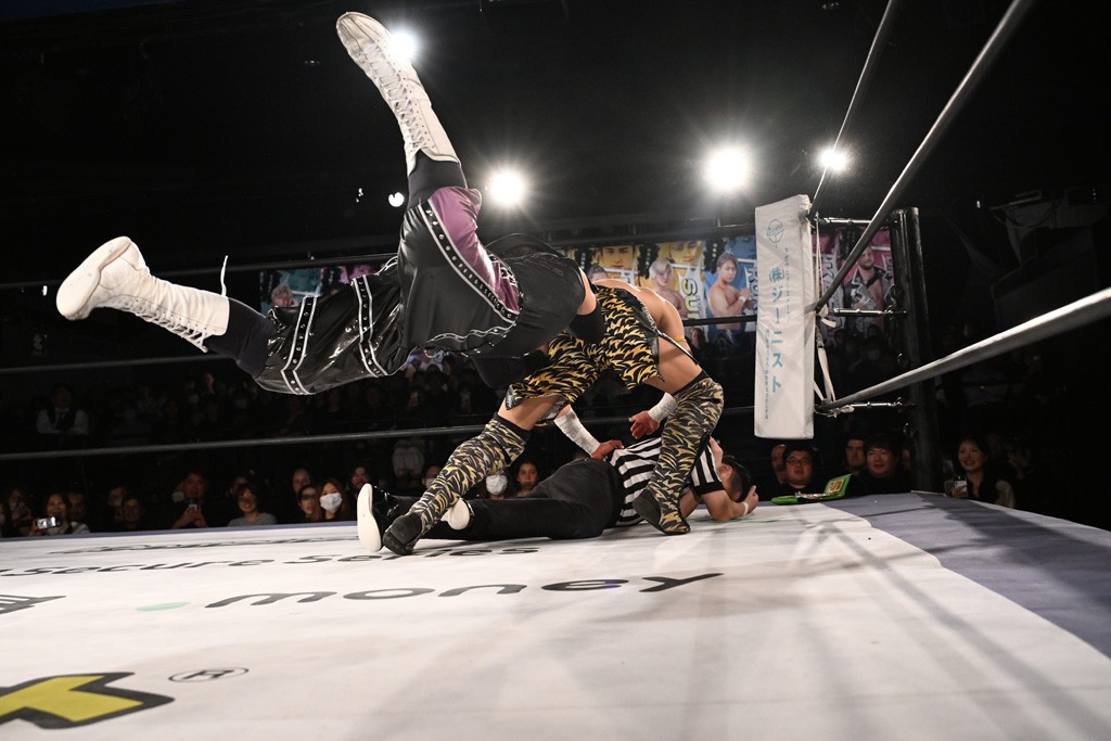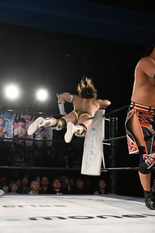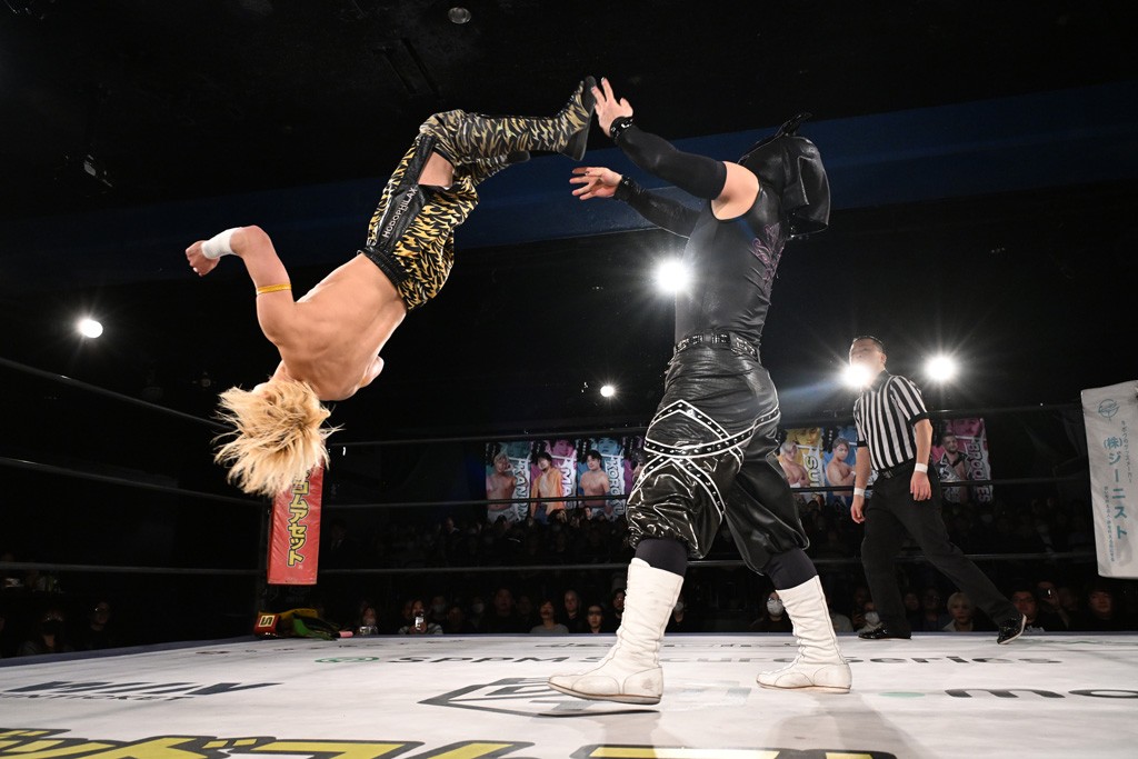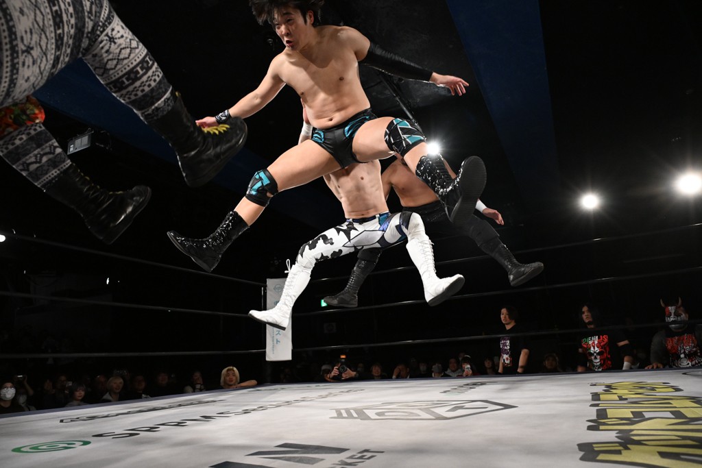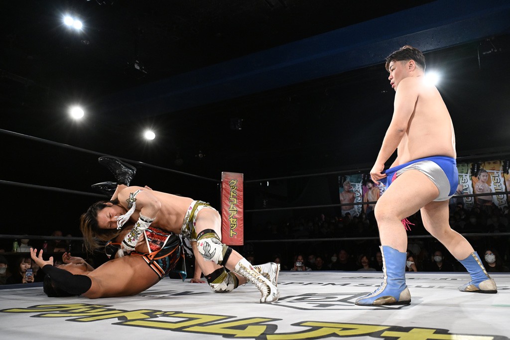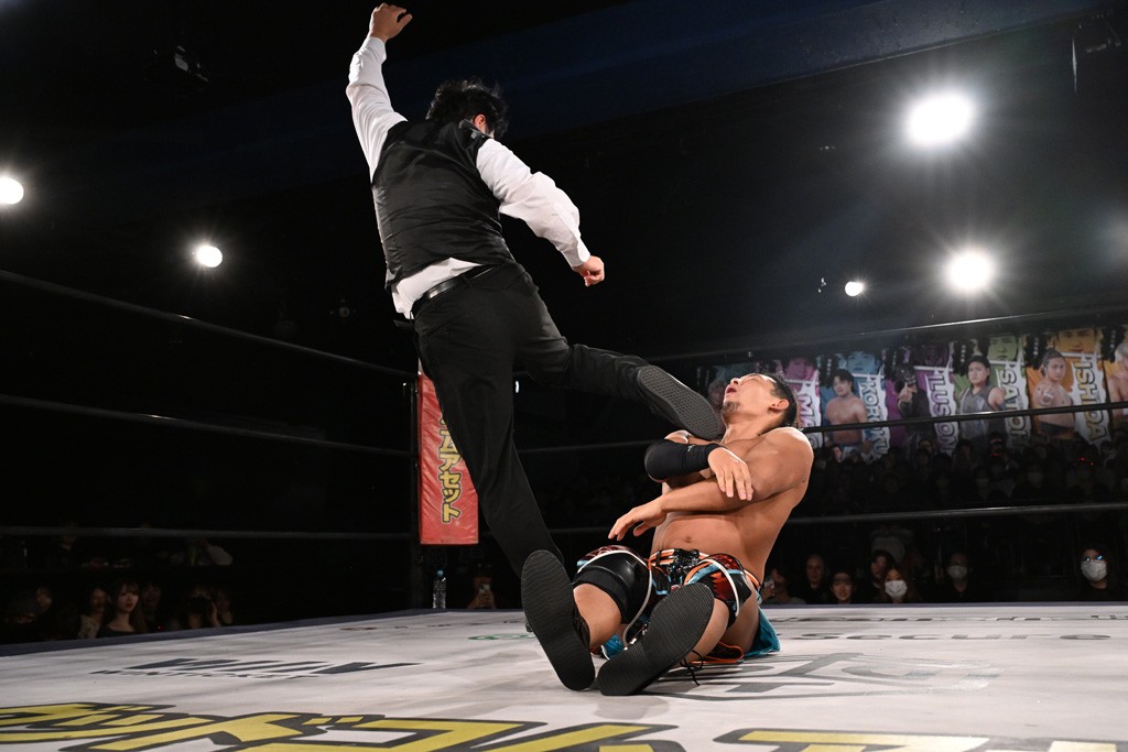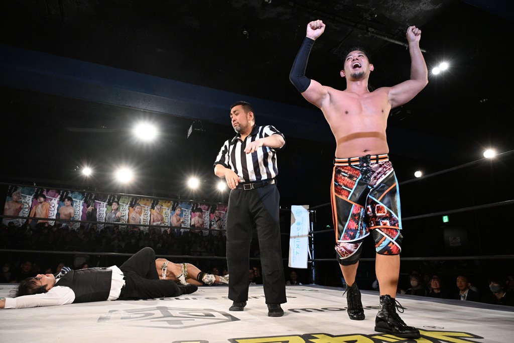 1・25後楽園でのKO-Dタッグ選手権試合(王者組=MAO&KANON《STRANGE LOVE CONNECTION=S.L.C.》vs挑戦者組=飯野雄貴&納谷幸男《The Apex》)の前哨戦はThe ApexがS.L.C.を撃破し、ベルト奪還を宣言した。