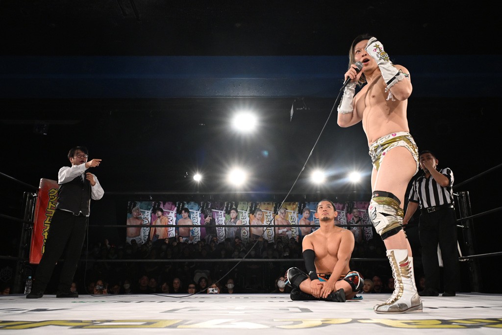 佐々木は「俺の狙いは上野、てめえだけだ。クリス・ブルックス、おまえには用はねぇ。上野、必ず俺が不幸にしてやる。おまえに2026年春は来ない。おまえはこの冬で終わりだ。てめえはこの冬にすべてのベルトを失って寒さに凍えて死ぬんだ」と吐き捨てた。