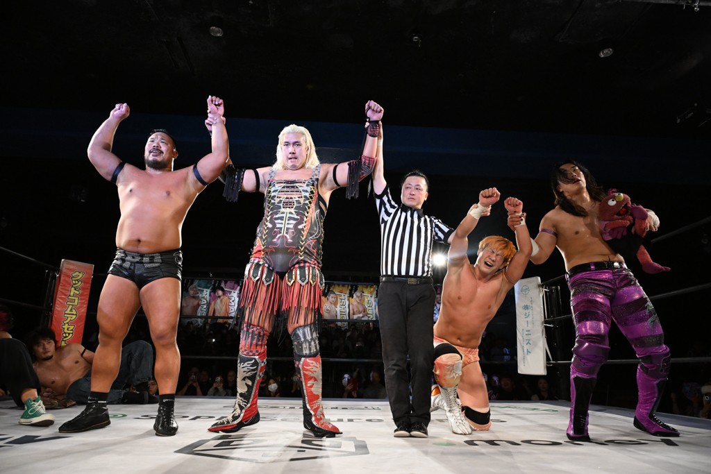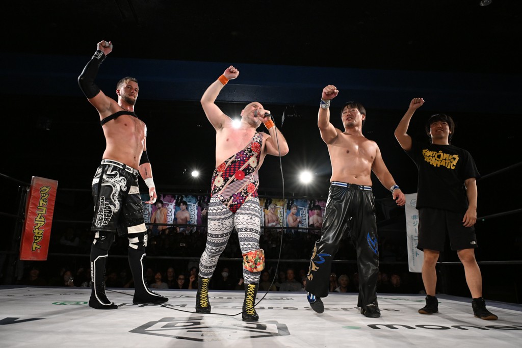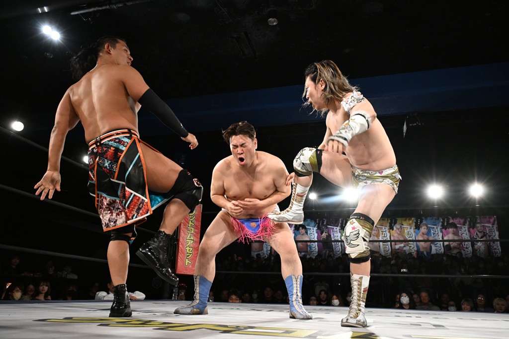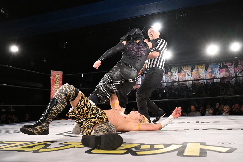 この日のメインイベントでファンドラのクリス&HARASHIMA&アントンは上野勇希&To-y&樋口和貞、佐々木大輔&岡谷英樹&デムース(with MJポー)との3WAY6人タッグマッチで対戦。この一戦は1・25後楽園でのKO-D無差別級&DDT UNIVERSAL両選手権試合~変則3WAYマッチ(2冠王者=上野vs挑戦者=クリスvs挑戦者=佐々木)の前哨戦にもなった。