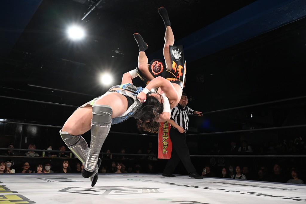 そして、今大会のセミファイナルでMAO、KANONは秋山準、中村宗達と組み、飯野&納谷&宮脇純太&正田壮史と8人タッグ戦で前哨戦を戦った。