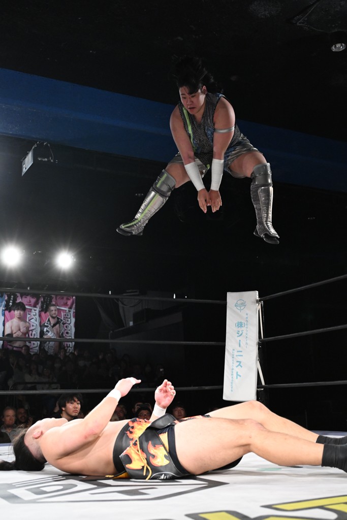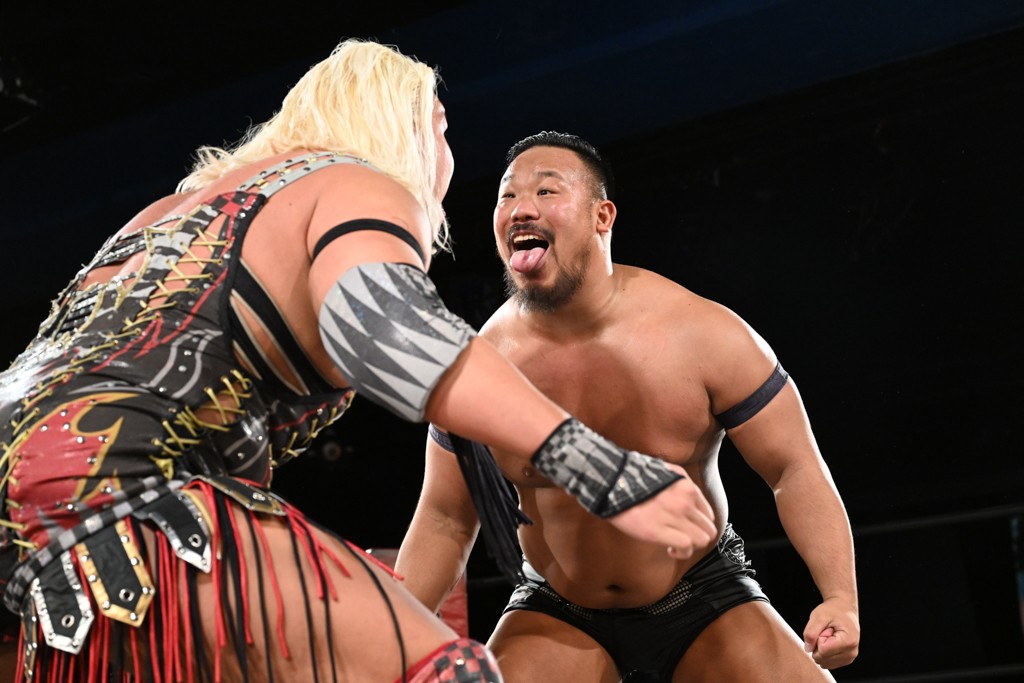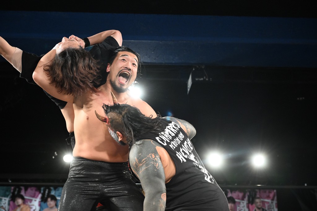 バックステージでも飯野の舌鋒は止まらない。「楽しかったな。KANON、おまえのチョップ、ラリアット気持ちよかったよ。でも、一番俺が悔しいのは、てめえを最初のスピアで粉砕できなかったことだ。次の後楽園、一発目で潰してやるよ。MAO、KANON。KANON、MAO! てめえら2人ともぶっ潰してやるよ!」と絶叫し、興奮冷めやらぬ様子。