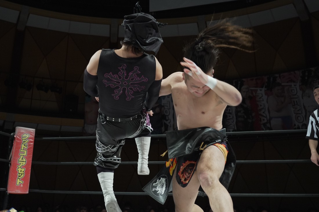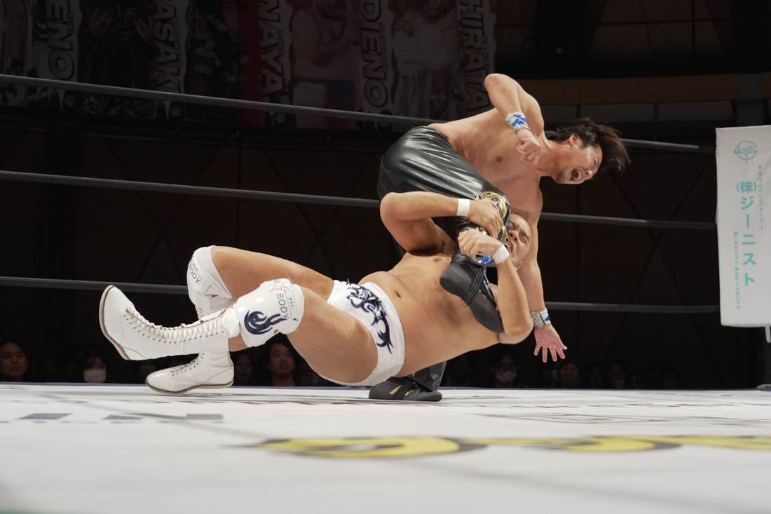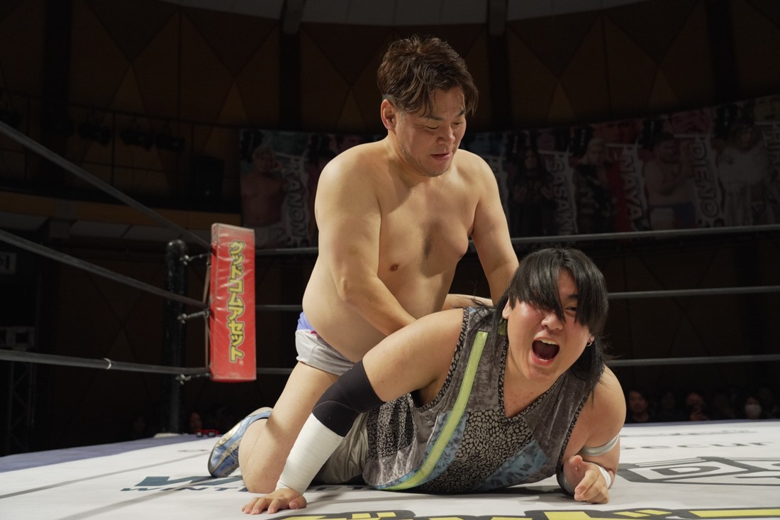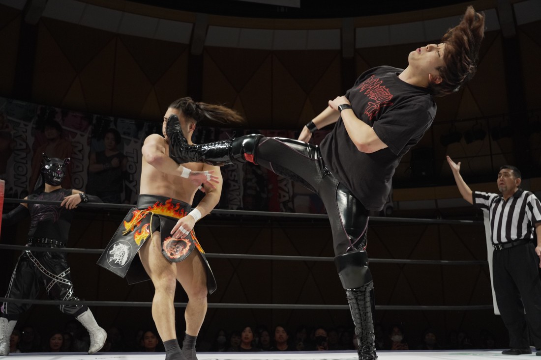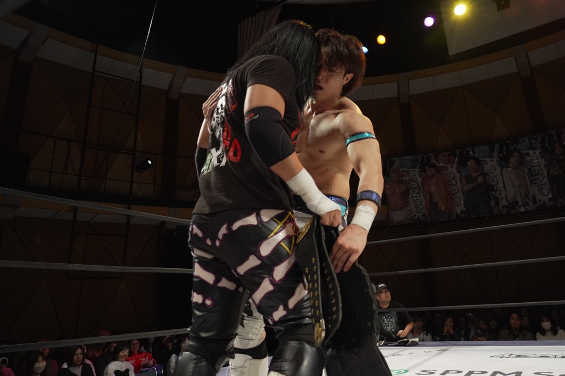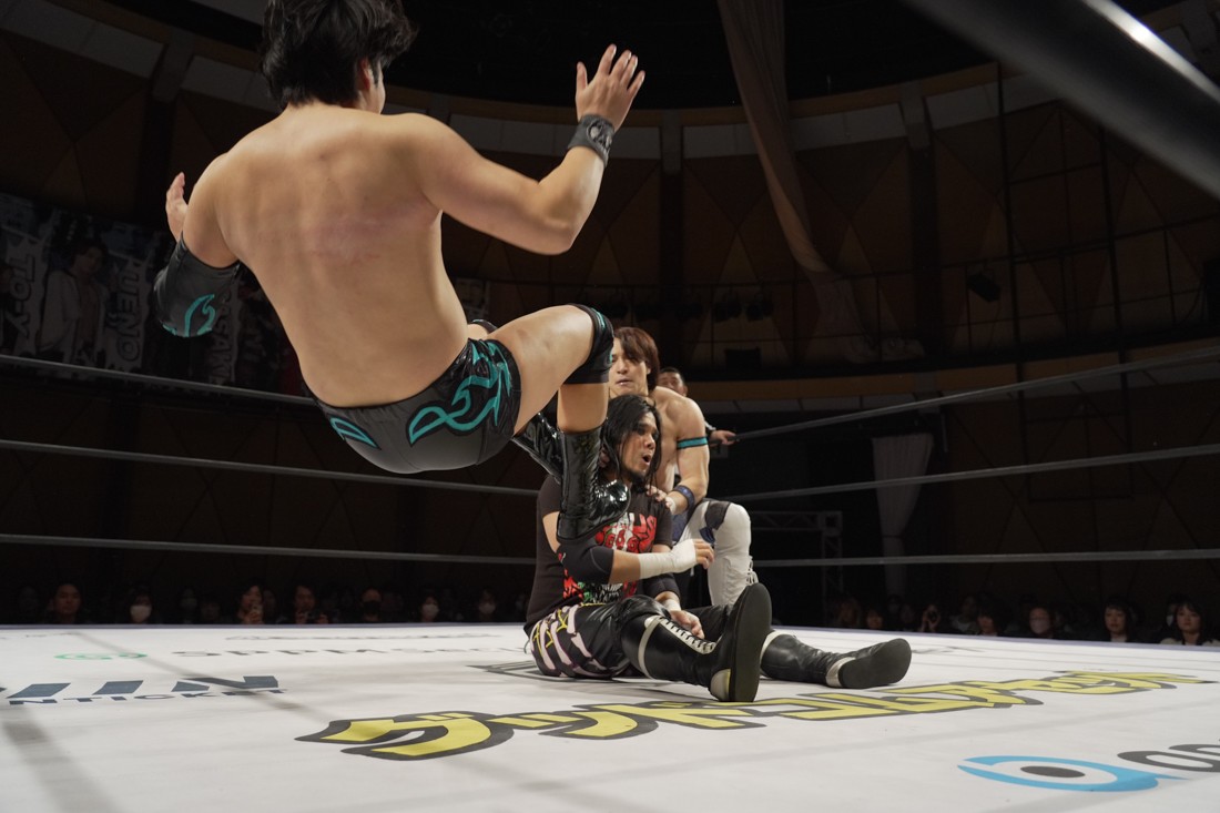 これが公式戦初戦となる正田壮史は、1敗0点の葛西陽向と対戦。奇しくもSCHADENFREUDE Internationalから脱退した正田と、その後クリスが結成したFANTÔMES DRAMATICのメンバーとなった葛西の対戦となったが、正田は敢えて“先輩風”を吹かしながら葛西を挑発。葛西もグーパンチやブルドッキング・ヘッドロック、ミサイルキックで食らいつくが、正田は強烈なジャーマンで投げると、マンブリをぶち込んで勝利。公式戦白星スタートを切った。