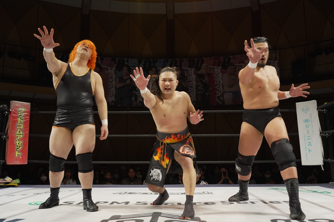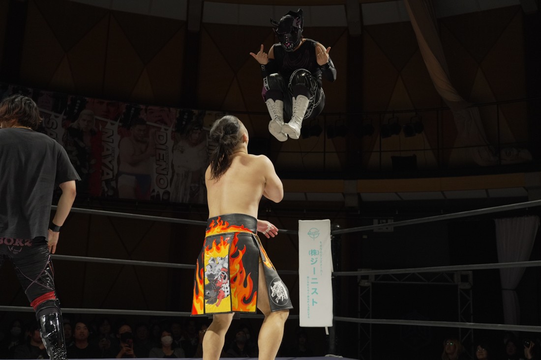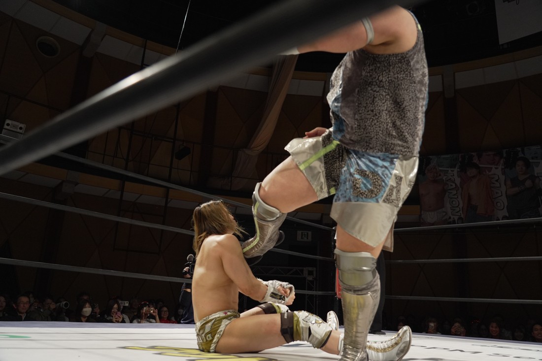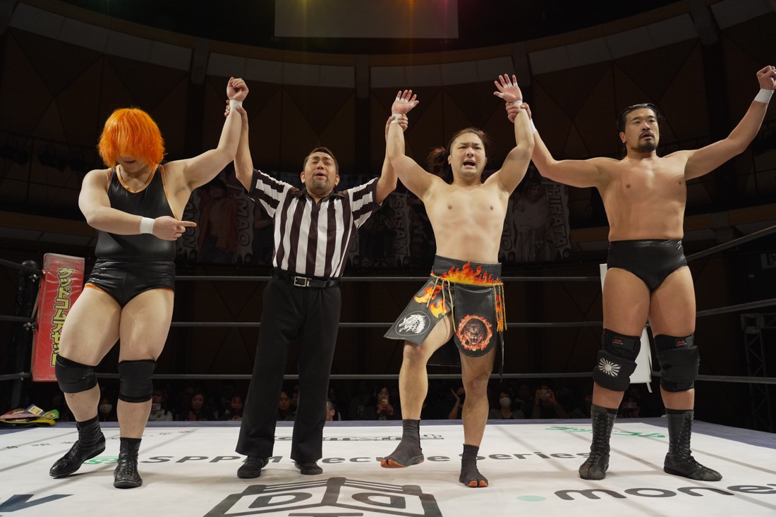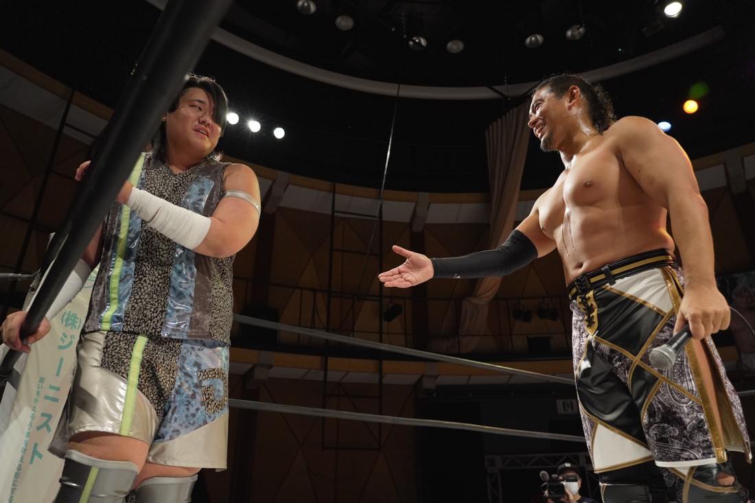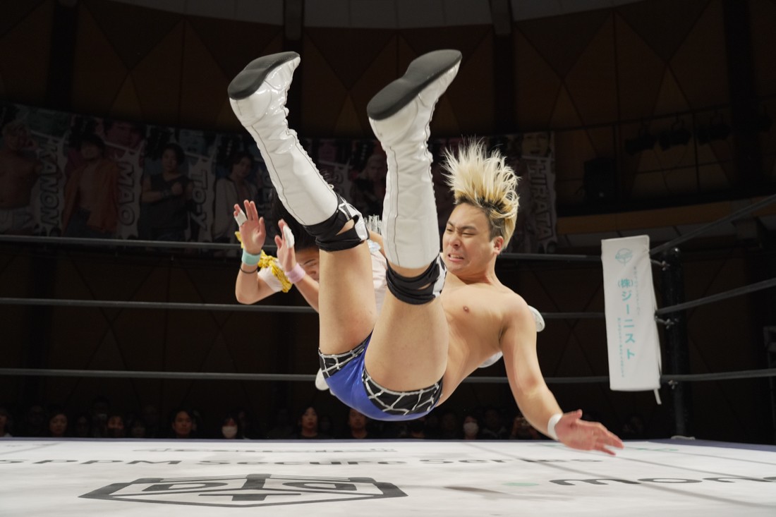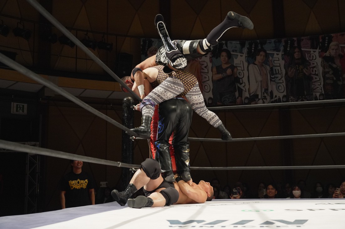 これが公式戦初戦となる正田壮史は、1敗0点の葛西陽向と対戦。奇しくもSCHADENFREUDE Internationalから脱退した正田と、その後クリスが結成したFANTÔMES DRAMATICのメンバーとなった葛西の対戦となったが、正田は敢えて“先輩風”を吹かしながら葛西を挑発。葛西もグーパンチやブルドッキング・ヘッドロック、ミサイルキックで食らいつくが、正田は強烈なジャーマンで投げると、マンブリをぶち込んで勝利。公式戦白星スタートを切った。