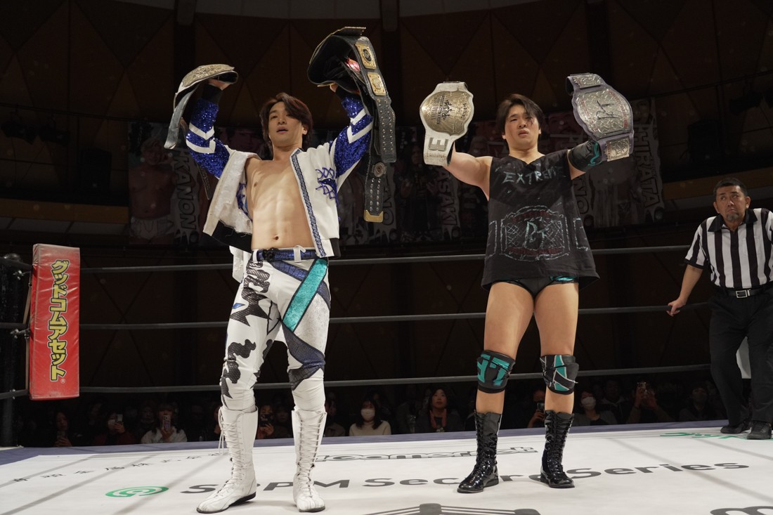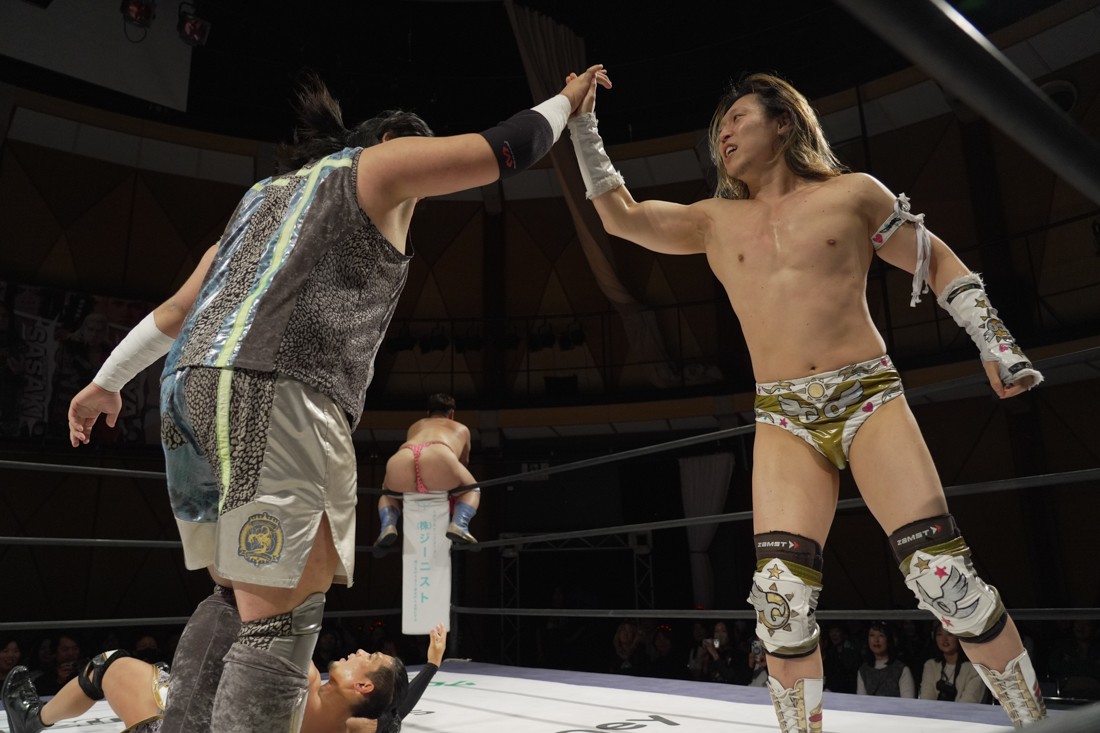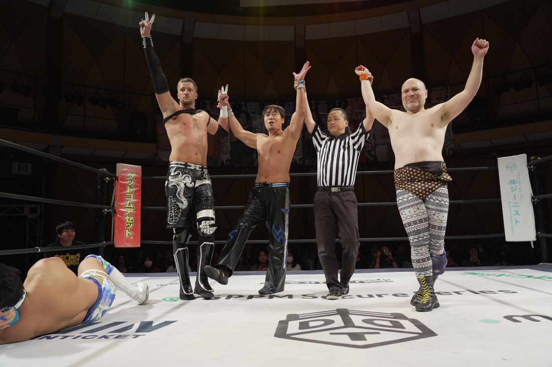 メインイベントでは1・25後楽園ホール大会でクリス・ブルックスを加えた3人でKO-D無差別級&DDT UNIVERSAL両選手権変則3WAYマッチを行う上野勇希と佐々木大輔がタッグマッチで前哨戦。