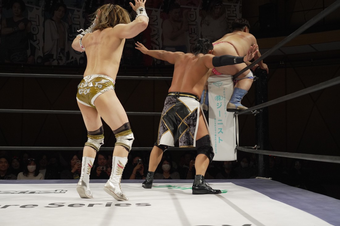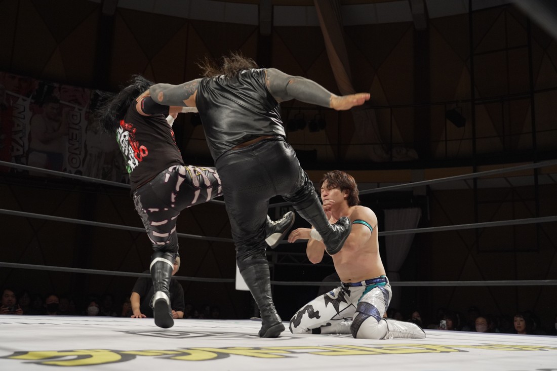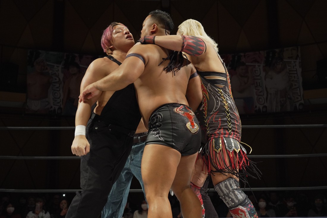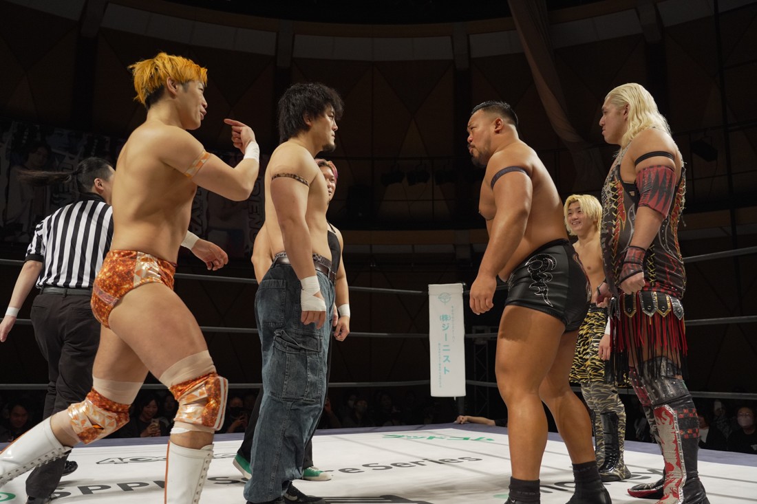 プロレスリング・ノアからDDTにレギュラー参戦している宮脇純太は、MAO&KANON with KIMIHIROのSTRANGE LOVE CONNECTIONと合体。S.L.C.とはKO-Dタッグの前哨戦となる飯野雄貴&納谷幸男のThe Apexは須見和馬と組んで6人タッグマッチで激突。