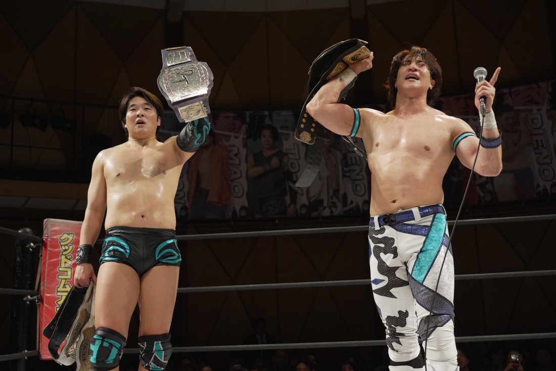 佐々木は帰国が近づいているデムースとのタッグだったが、デムースは上野の乳首を噛んでいくと、To-yの乳首にも顔を近づけたが、なぜか嗚咽。乳首を噛まれないことに怒り爆発のTo-yは自らデムースの顔面を自分の乳首に押しつけると、不気味な笑いと共に覚醒。そんなTo-yのアシストもあり、最後は上野がJul.2でデムースに勝利したが、佐々木は無差別級とUNIVERSALのベルトを強奪。鬼の形相ですぐに奪い返した上野だったが、コメントスペースでは「久しぶりにやり合って思い出してきました。俺のリズムを崩してくる佐々木大輔特有の嫌な思いをさせえられる。ヤバい、どうしよう! 佐々木さんのこと好きになってきちゃった」と発言。対する佐々木は「ずいぶん調子が悪そうだな! 俺の目の前に立つと、あの血塗られたトラウマが蘇って調子が出ないんだろ?」と“リズムを狂わされる”上野をあざ笑った。