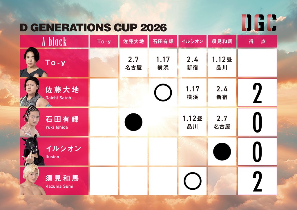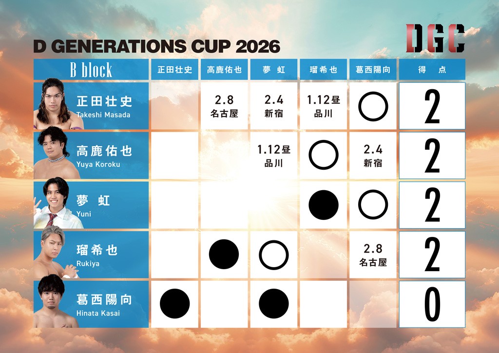 1月10日、大阪・アゼリア大正で「新春☆ドタバタフェス2026」が開催。この日、「D GENERATIONS CUP 2026」Bブロック公式戦が2試合行われた。