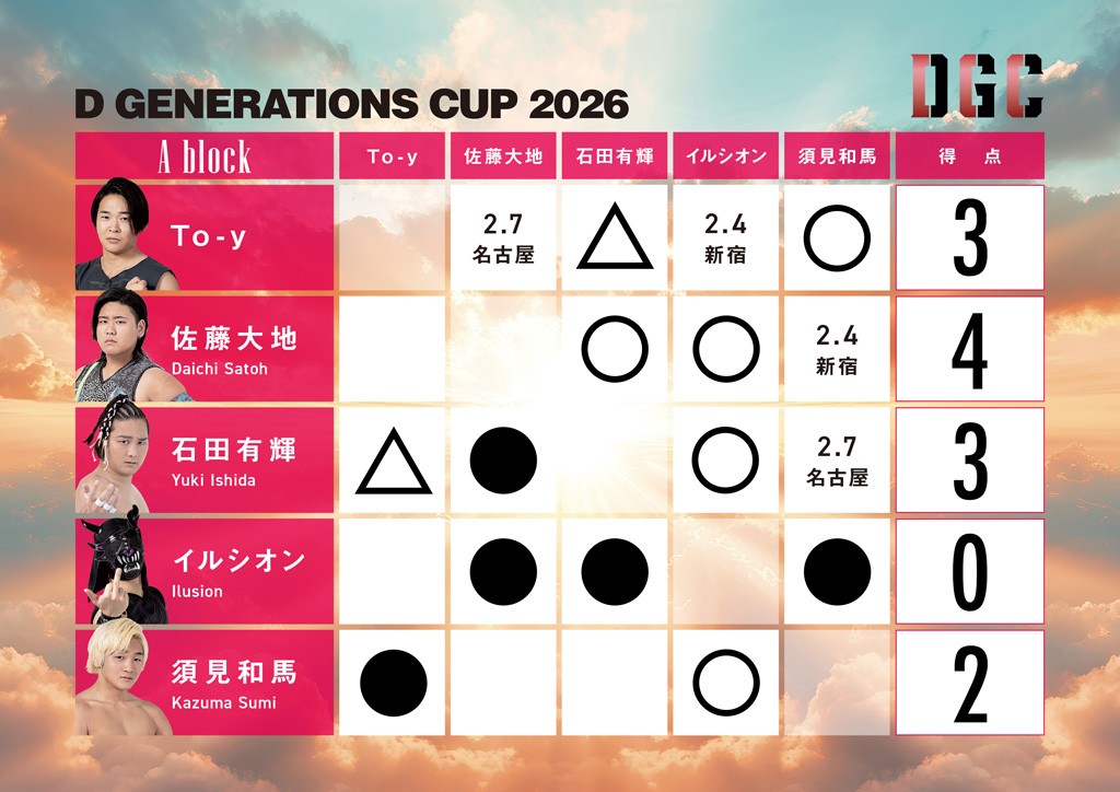 「D GENERATIONS CUP 2026」星取表(1月17日現在)