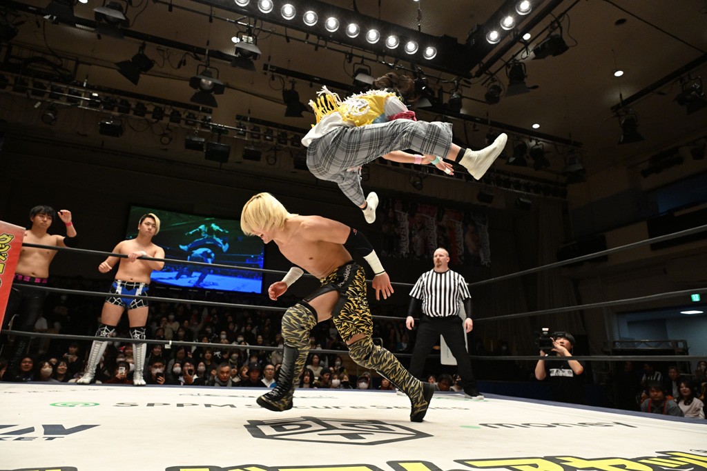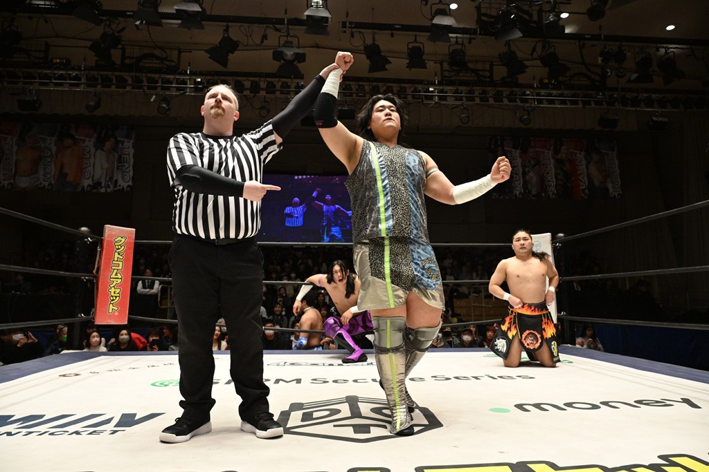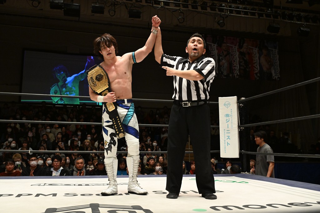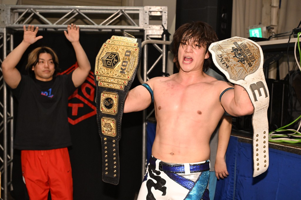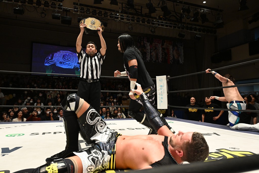 上野勇希が変則3WAYマッチでKO-D王座死守も、UNIVERSAL王座は佐々木大輔が強奪! KANONが3・22後楽園で無差別級王座に初挑戦