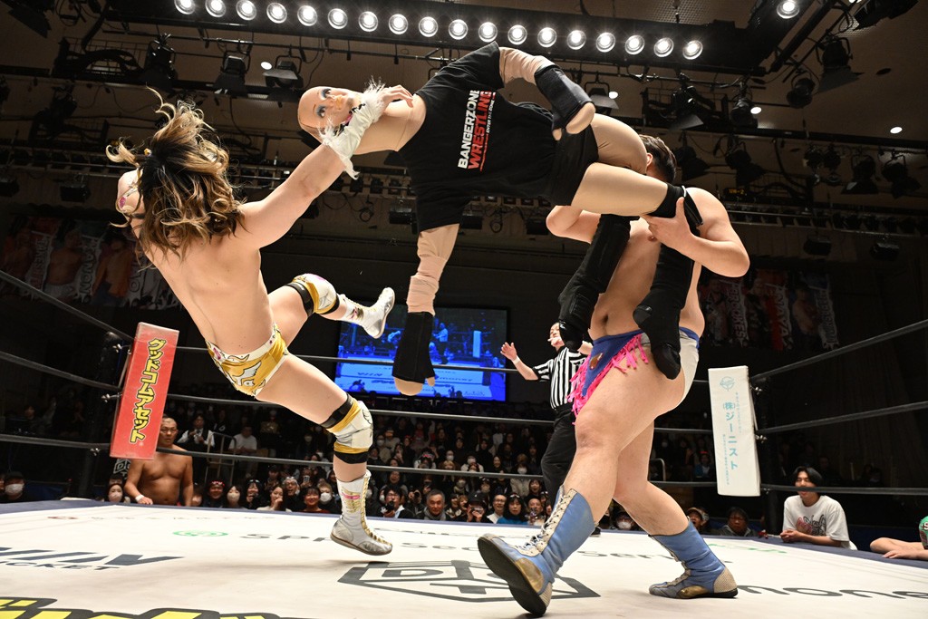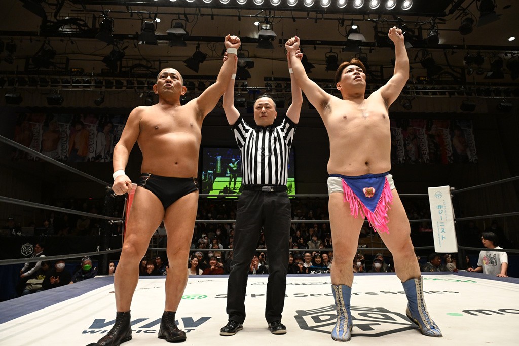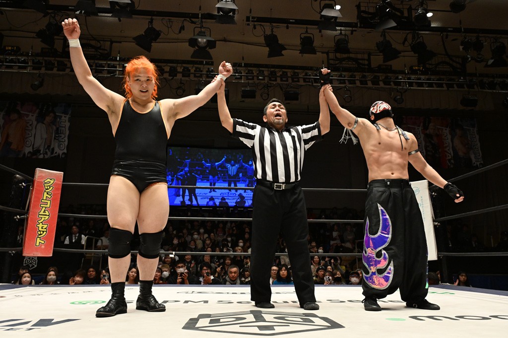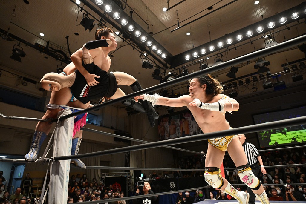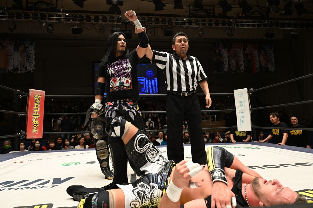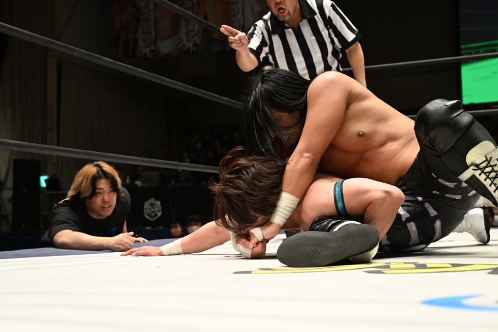 上野勇希が変則3WAYマッチでKO-D王座死守も、UNIVERSAL王座は佐々木大輔が強奪! KANONが3・22後楽園で無差別級王座に初挑戦