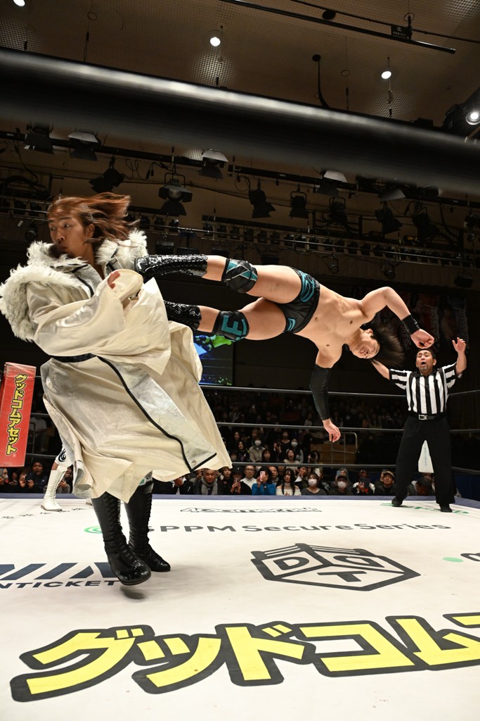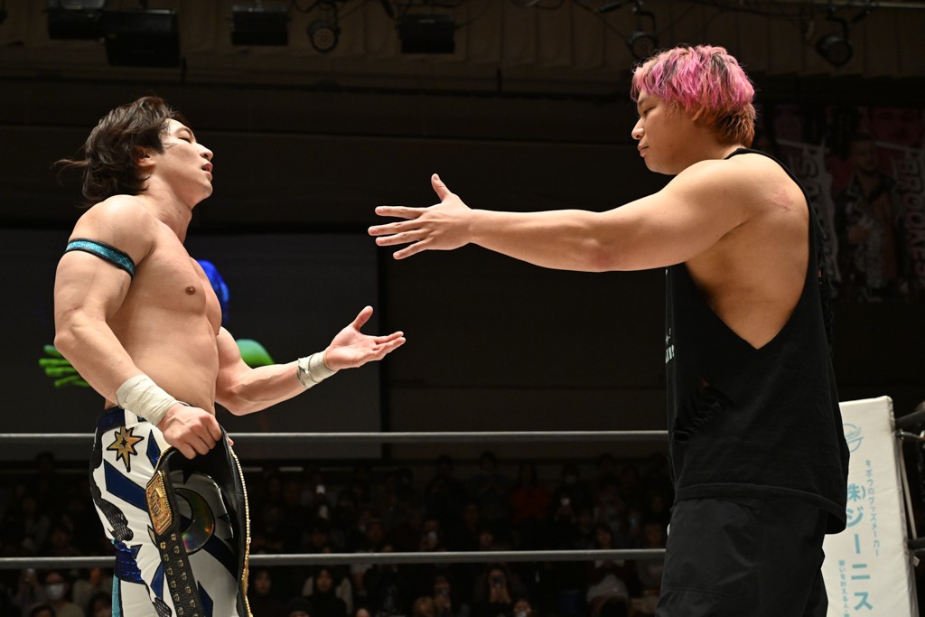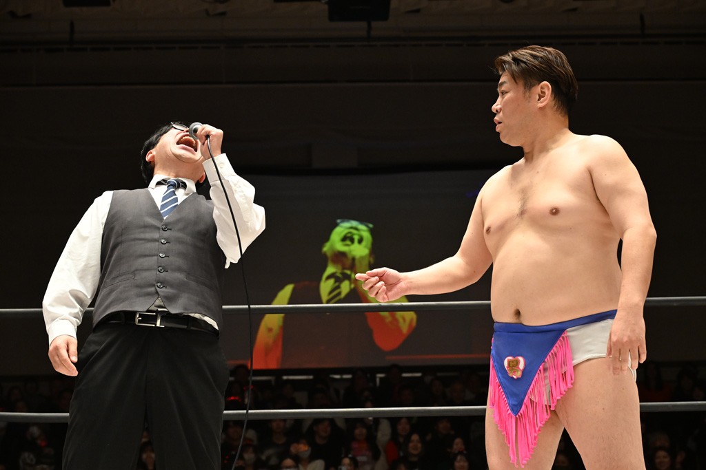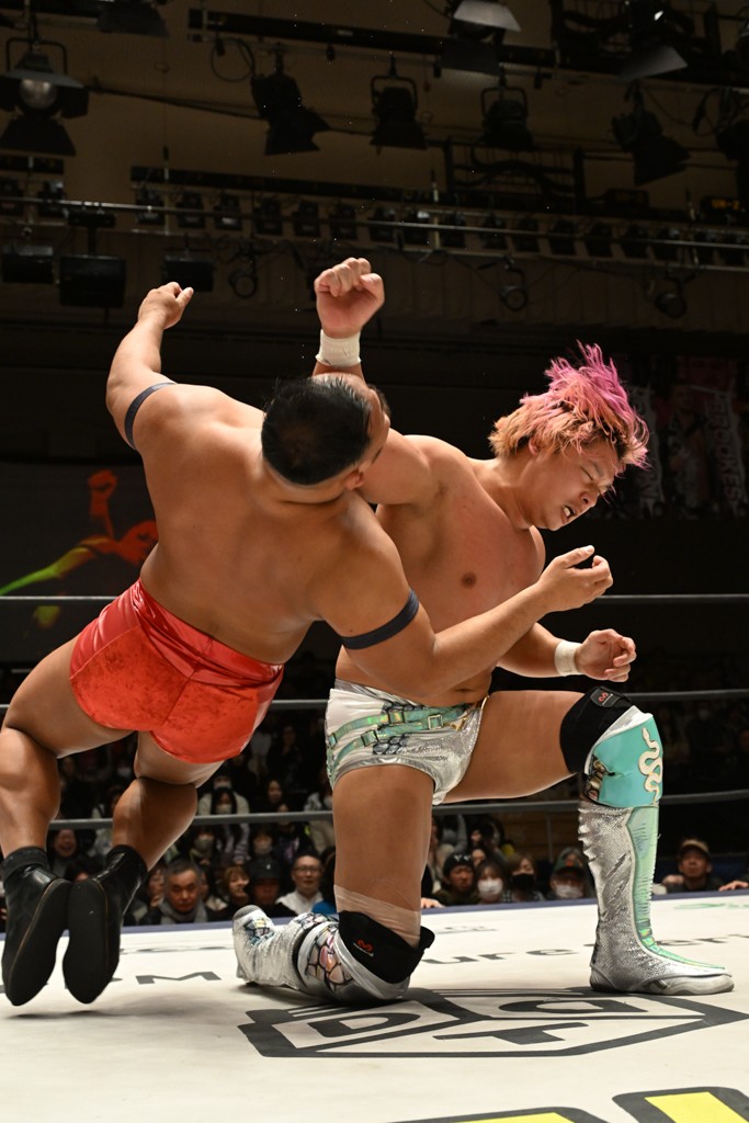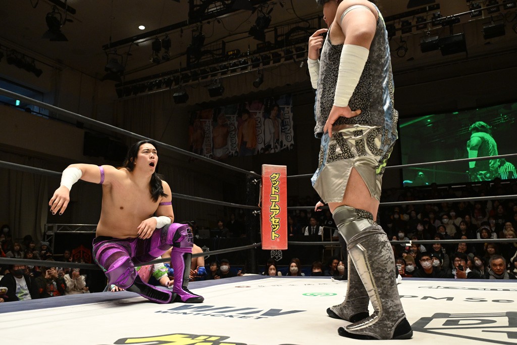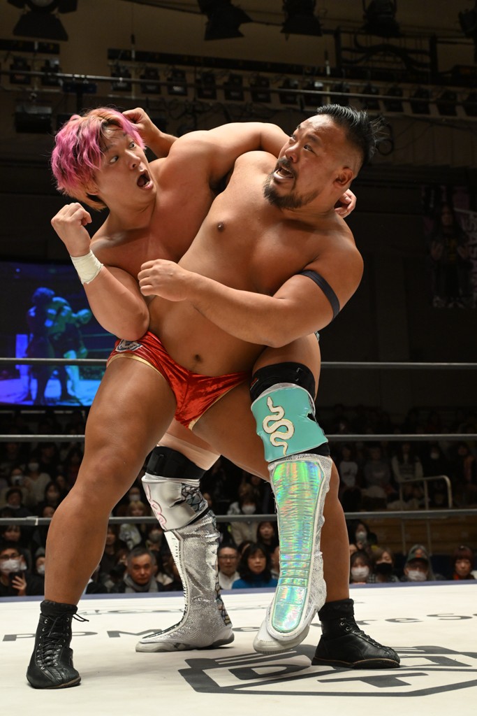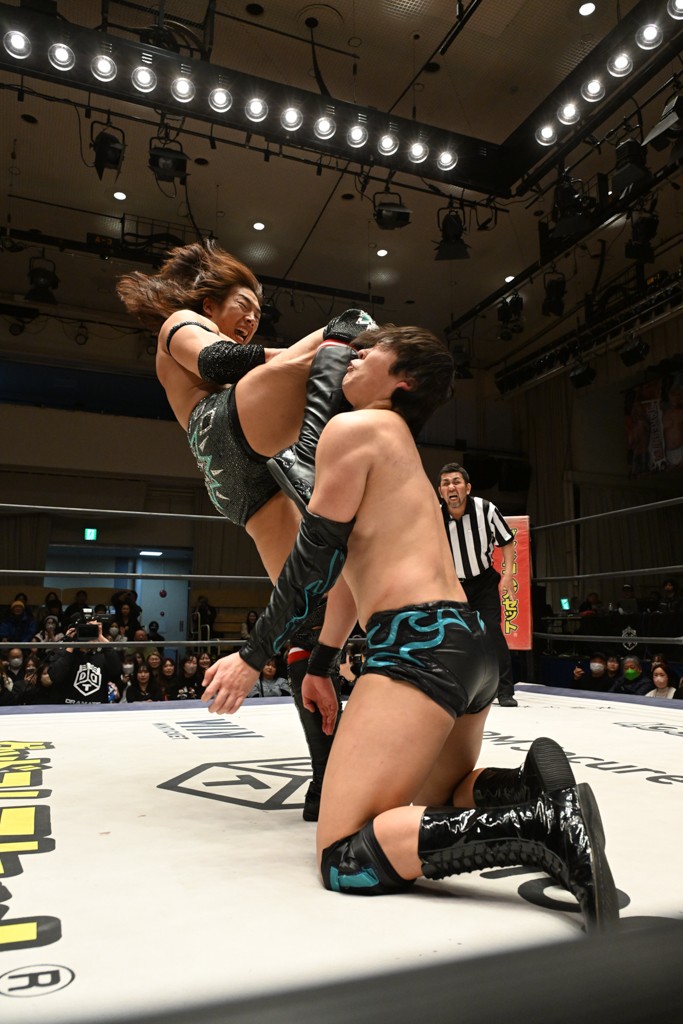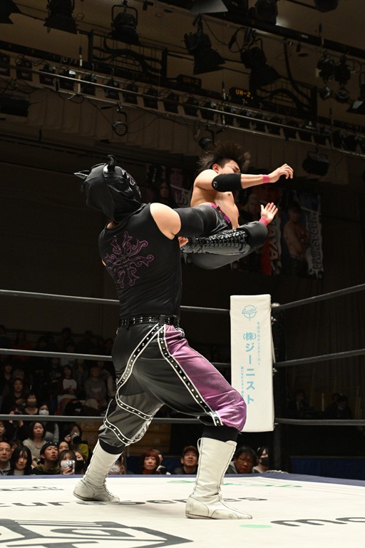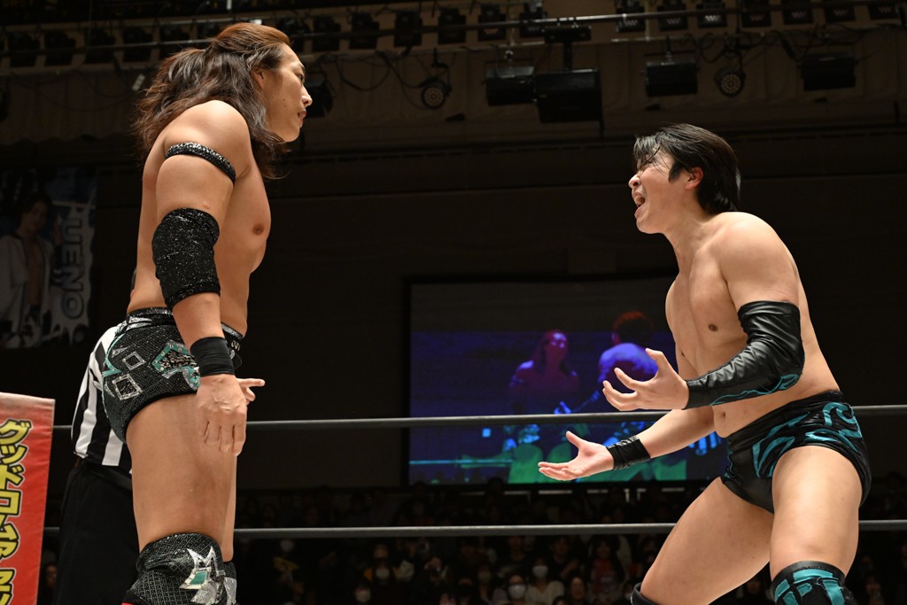 2・22後楽園では武知海青の2周年記念試合で一騎打ちに臨むが「海青も(欠場で)悔しいよな。俺も2週間前に感じたよ。今日も悔しい思いもいっぱいしたよ。でも進んでいくから。来月もどうなるか分からんけど、楽しいシングルマッチしようや。俺ももちろん勝つこともあれば負けることもあるかもしれない。でも、そんなこと構わずやるよ。プロレスラーだから。プロレスラーだから負けへんよ」と気を引き締めた。