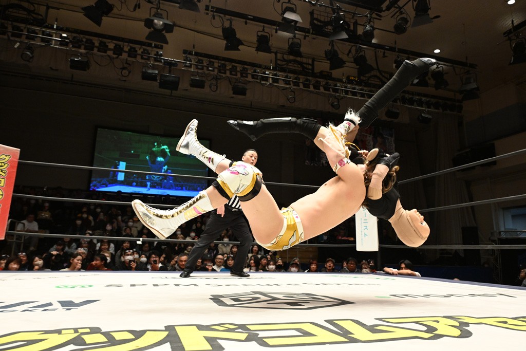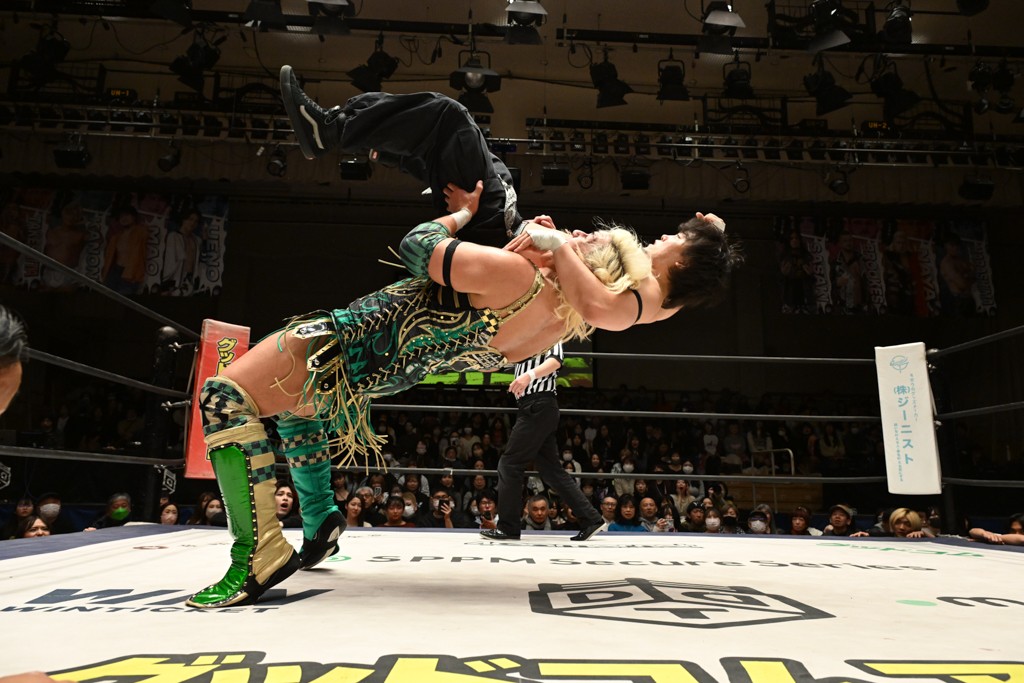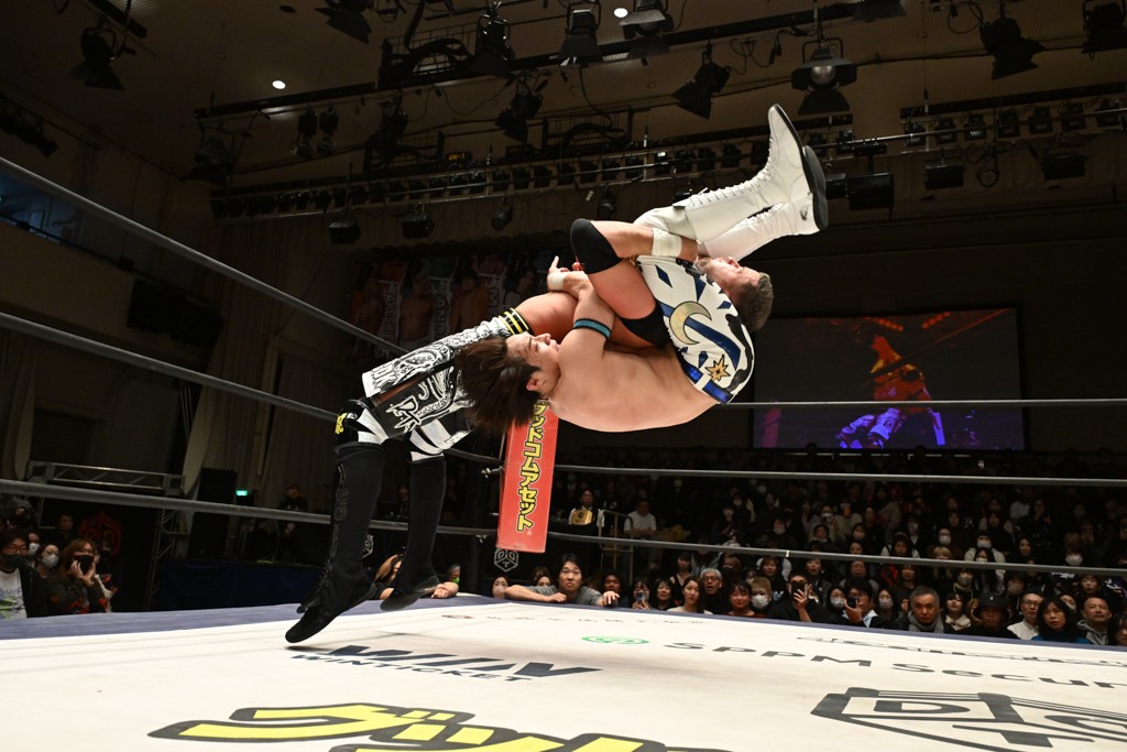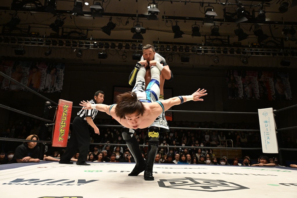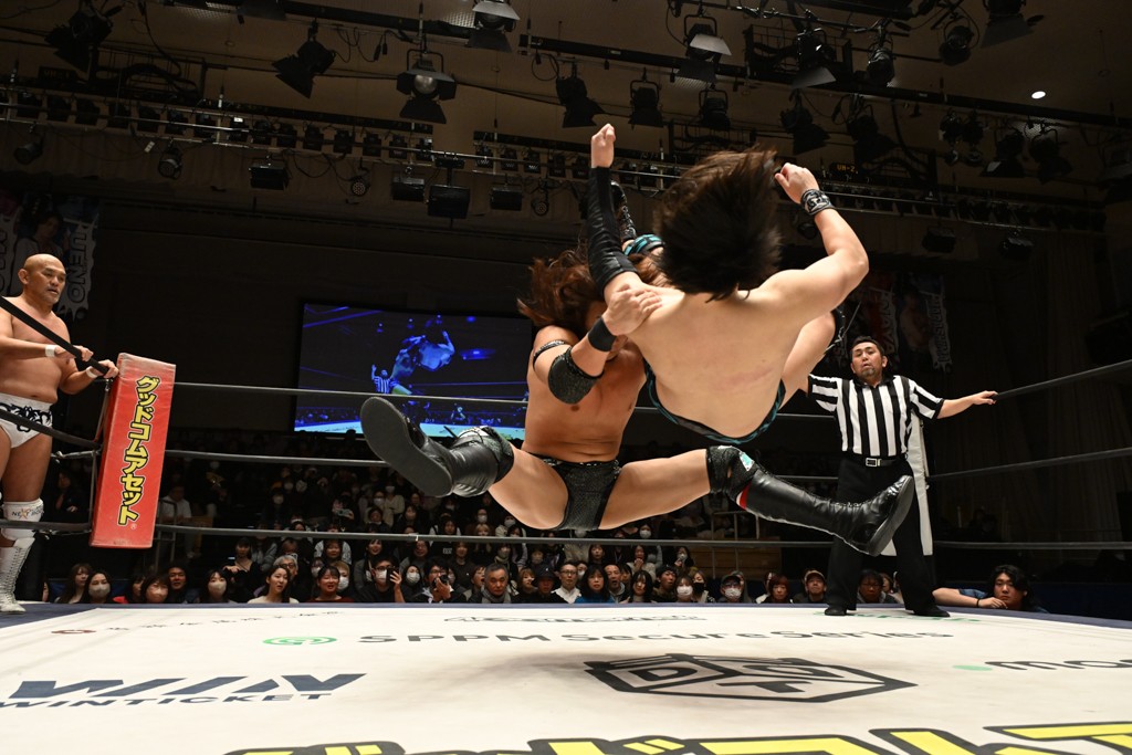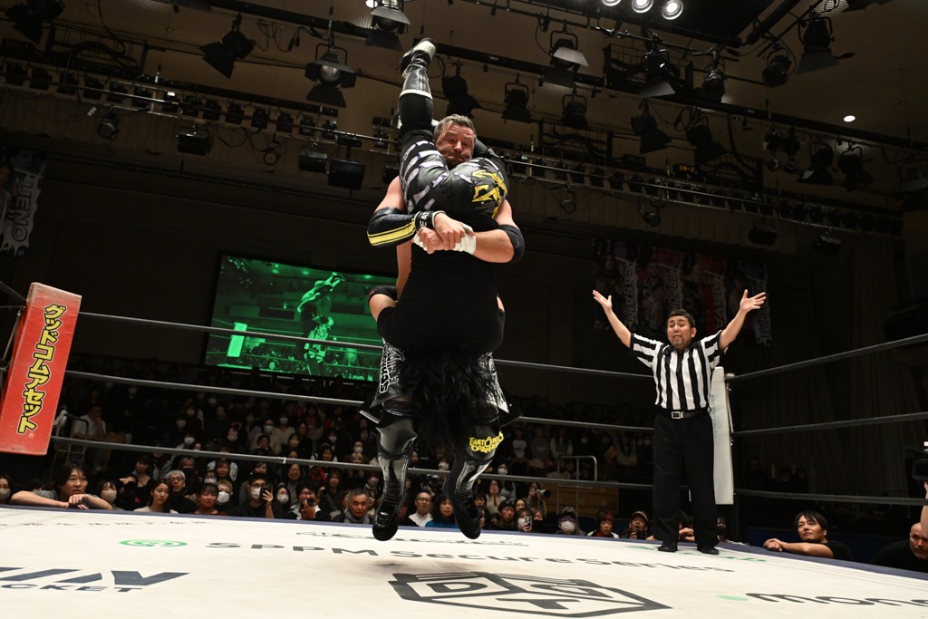 1月25日、東京・後楽園ホールで「MISSION IN BATTLE~新春絢爛~」が開催。KO-D無差別級&DDT UNIVERSAL両選手権試合~変則3WAYマッチ(2冠王者=上野勇希vs挑戦者=佐々木大輔vs挑戦者=クリス・ブルックス)は、2冠王者の上野がKO-D無差別級王座を死守するも、UNIVERSAL王座は佐々木が強奪。上野の持つ王座には3・22後楽園での「旗揚げ29周年記念大会」でKANONが初挑戦することが決定した。