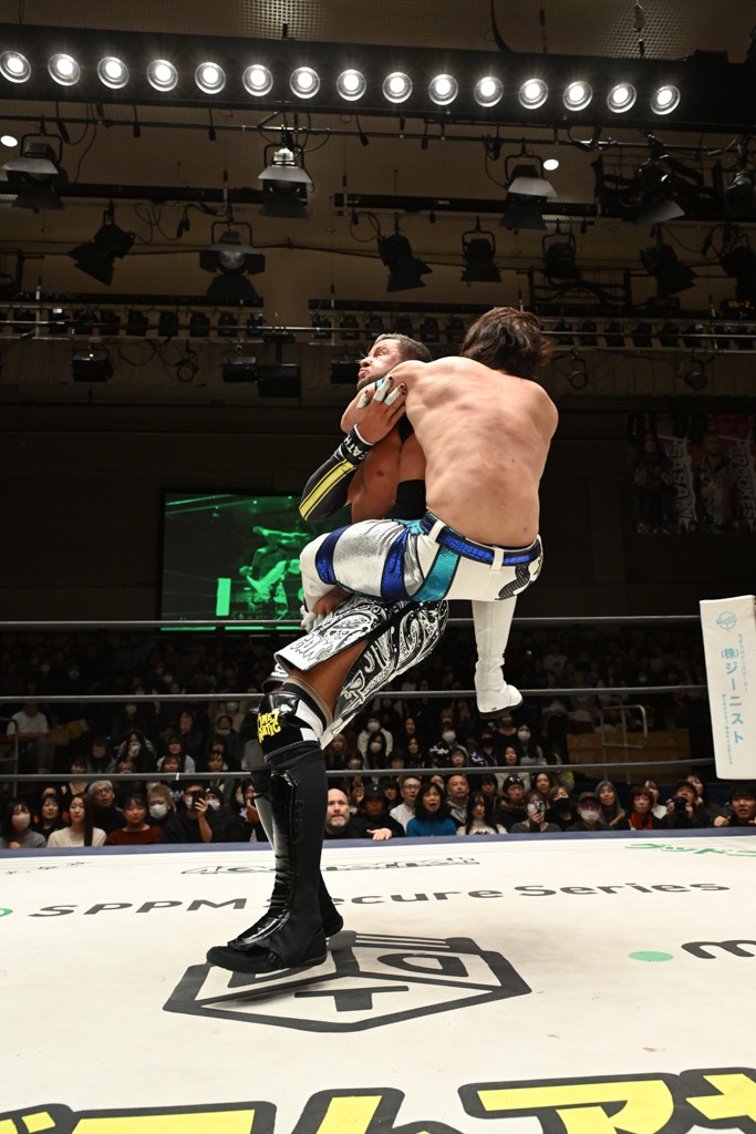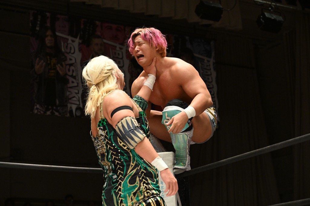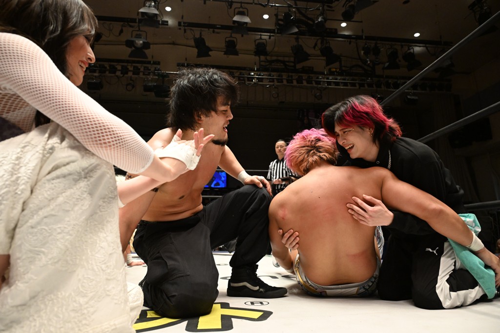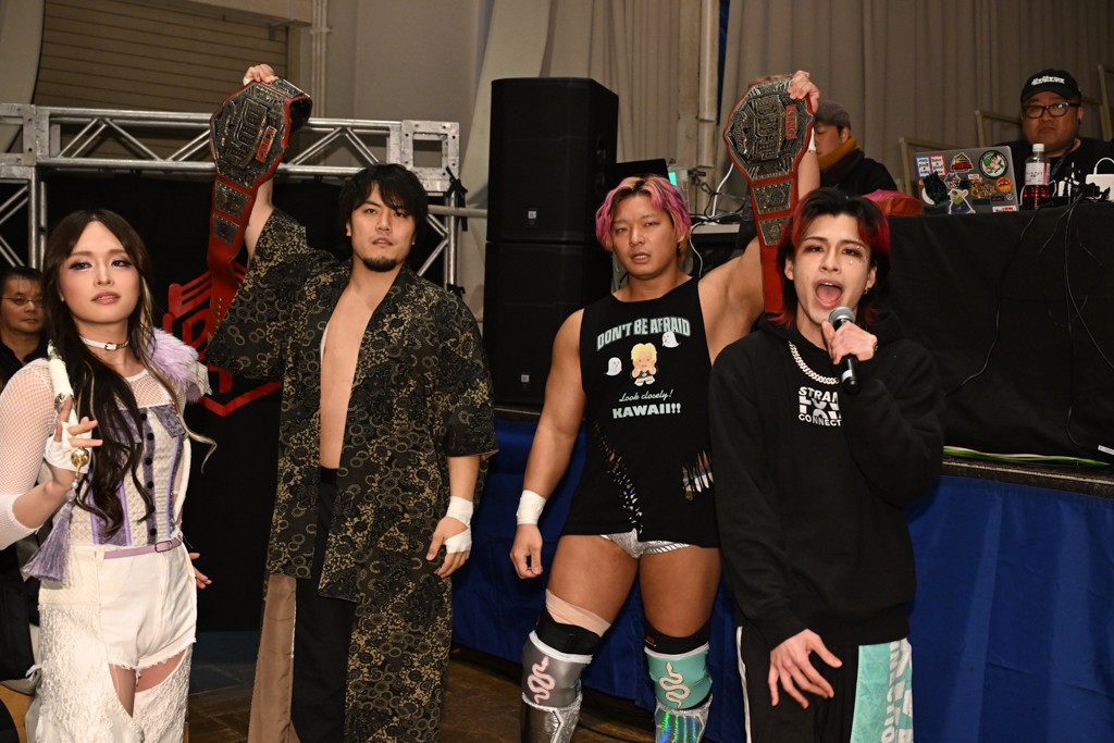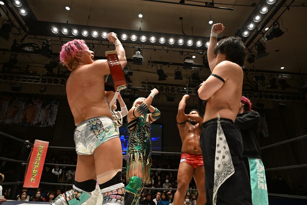 STRANGE LOVE CONNECTION(S.L.C.)のMAO&KANONが飯野雄貴&納谷幸男(The Apex)を退け、KO-Dタッグ王座3度目の防衛に成功。戦いを通じて認めったことで、The Apexの2人はS.L.C.へ合流することになった。