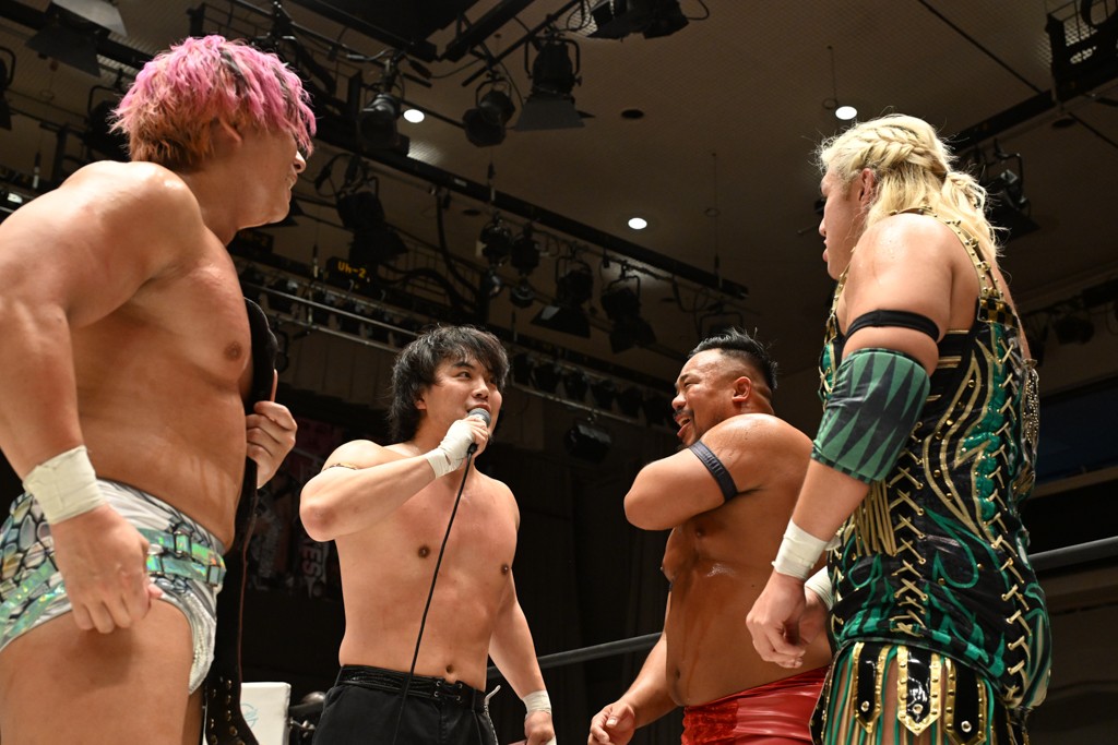 The37KAMIINA時代の先輩相手に善戦健闘したTo-yは「武知さん、悔しい思いしたかもしれないけど、そのために仲間がいるんで。俺はまた新たな悔しさが生まれた。これを解消するためには どんどん戦い抜いて、こんなチャンスはないかもしれないけど。もう1度、KONOSUKE TAKESHITAと戦ってやるから。そのときは俺がもっともっと、ジ・オーセンティックな、ホンモノのTo-yになって倒しにいってやるからな」といつか巡ってくるであろうチャンスを見据えた。