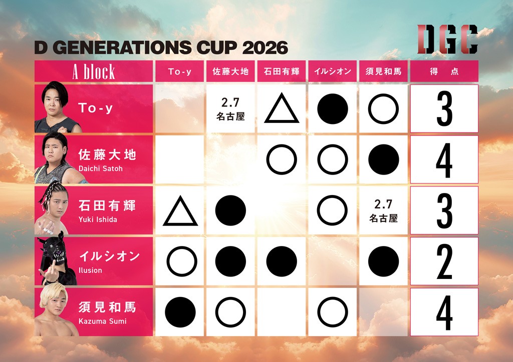 「D GENERATIONS CUP 2026」星取表(2月4日現在)