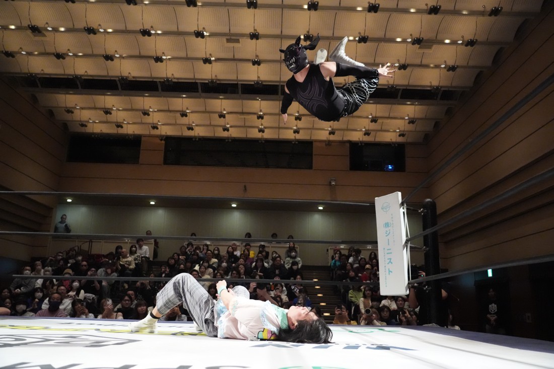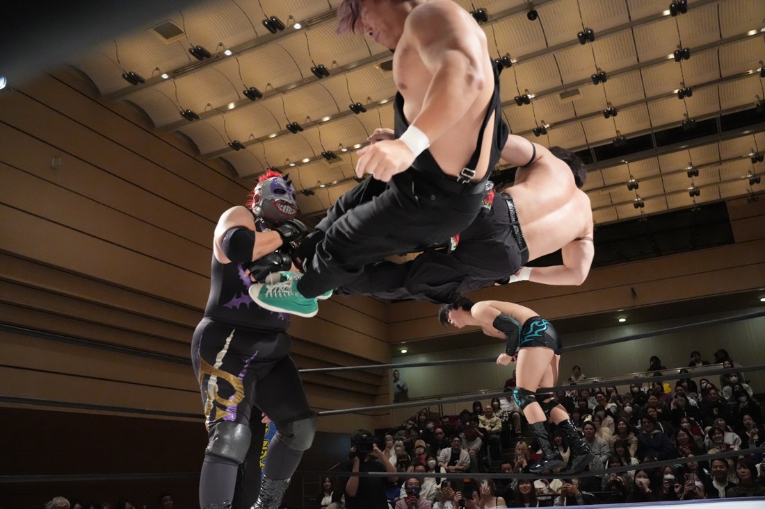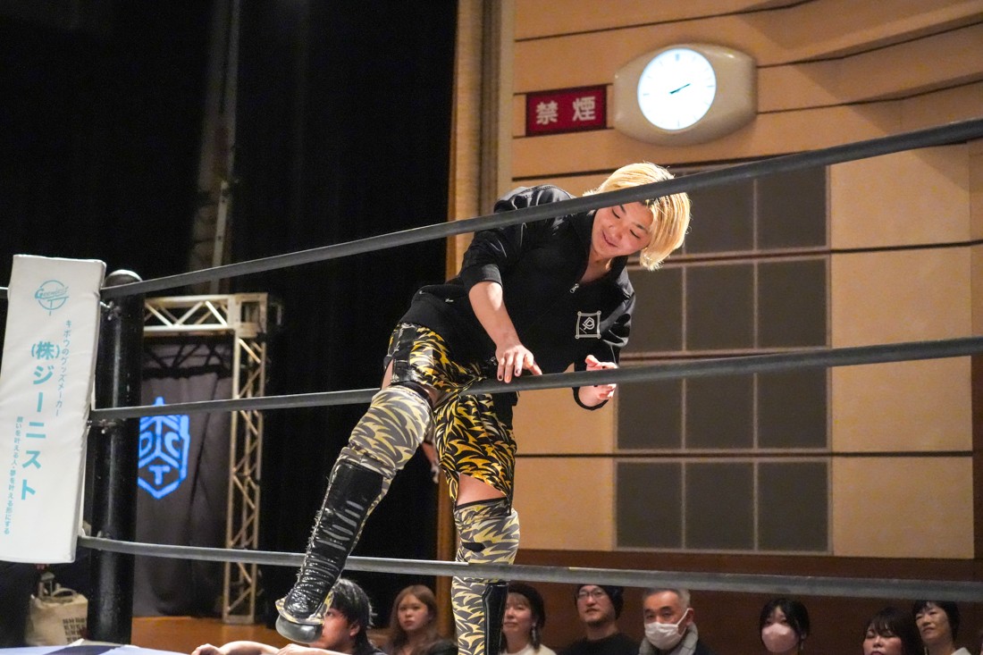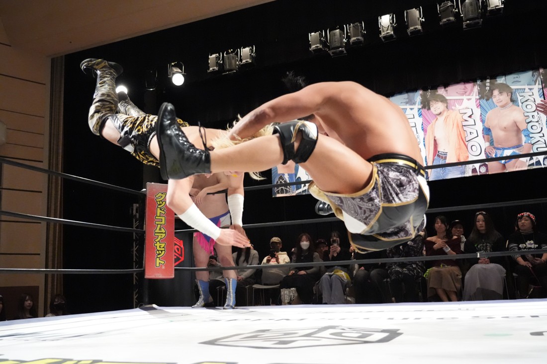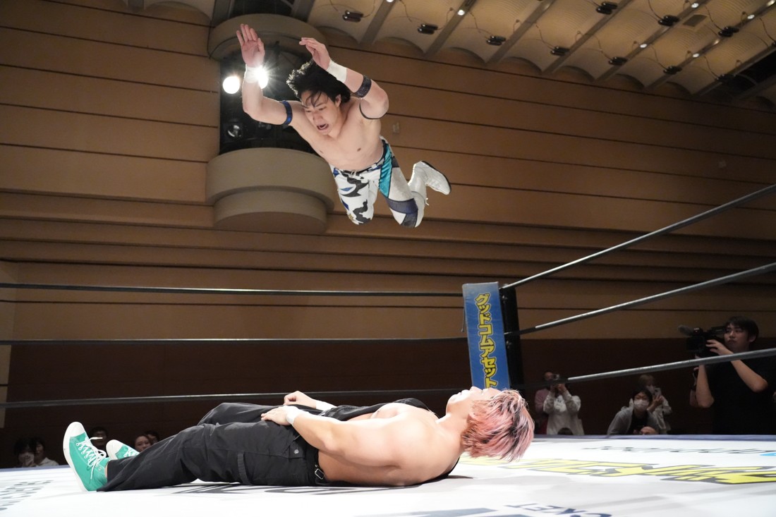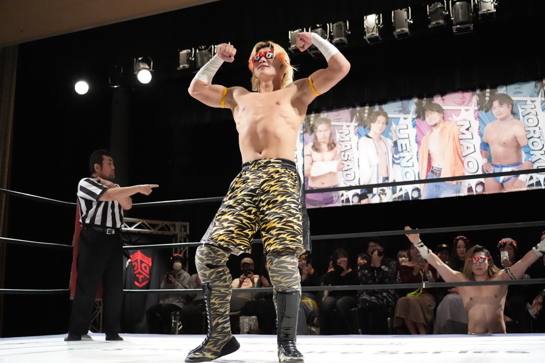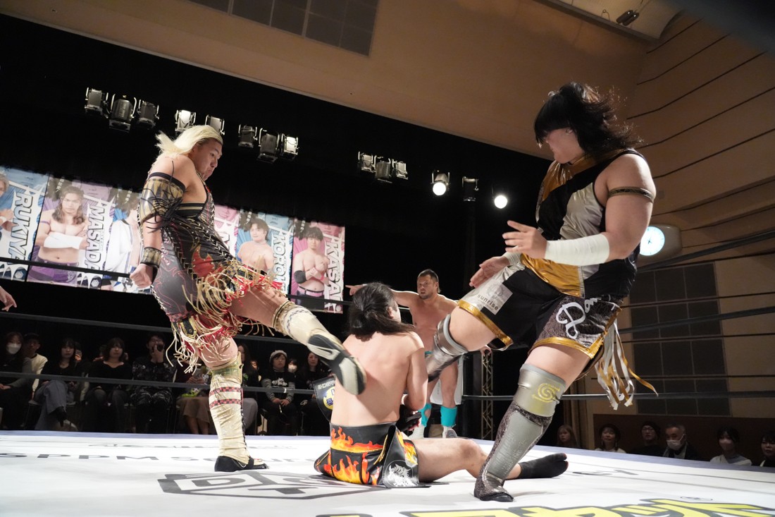 2月8日、愛知・今池ガスホールで「イマイケファイト・フィーバー 2026」が開催。新世代によるシングルNo.1決定リーグ戦「D GENERATIONS CUP 2026」Bブロックが最終戦を迎え、オープニングマッチで2勝1敗4点の瑠希也と3敗0点の葛西陽向が対戦。何としてでも1勝あげたい陽向は積極的に攻め込んでいくが、瑠希也がプロトボム2連発で勝利。陽向は全敗で公式戦を終えたが、瑠希也はメインの結果次第ではBブロック代表になる可能性が残された。