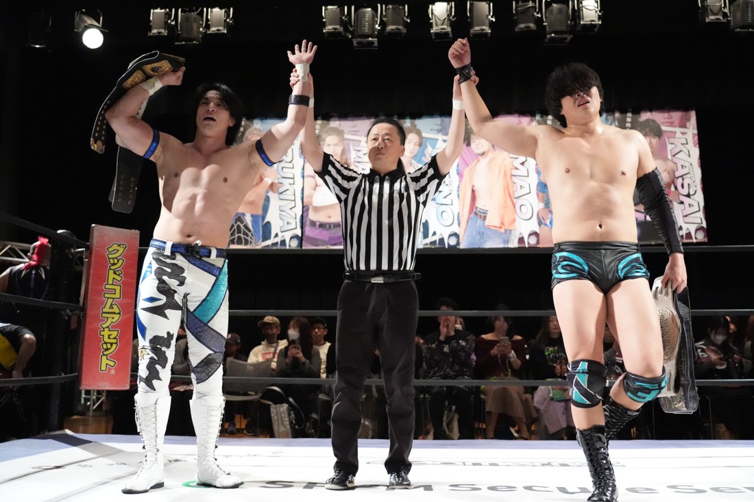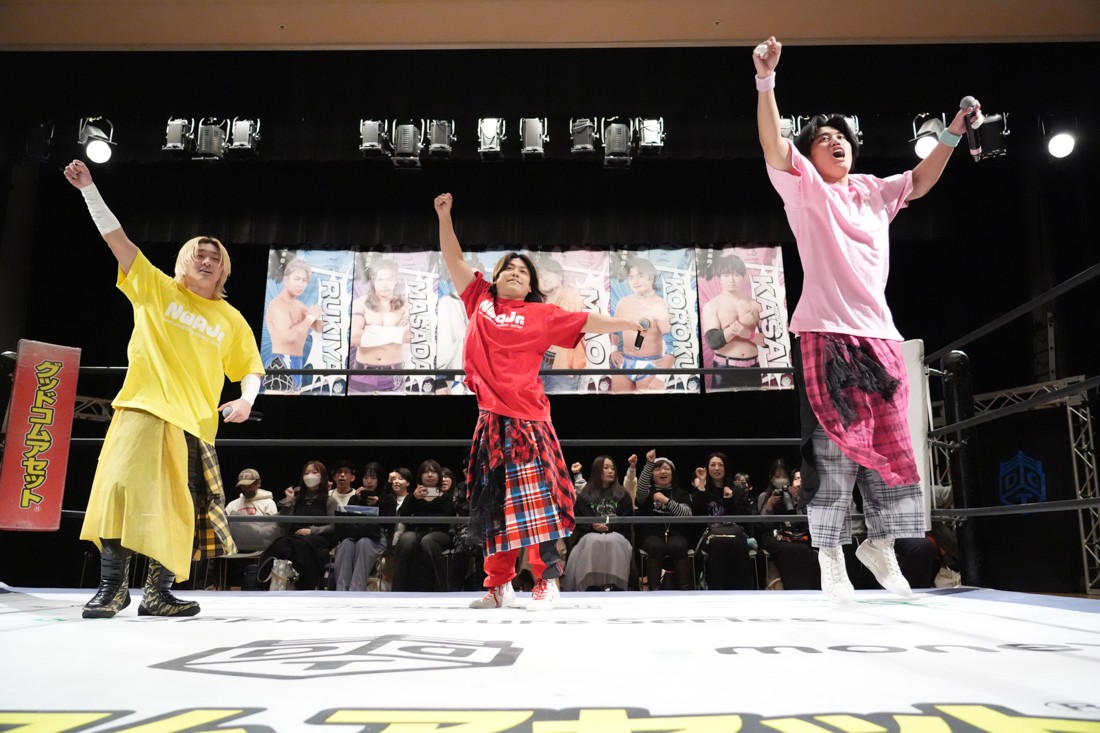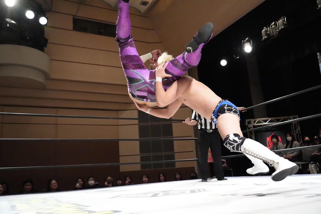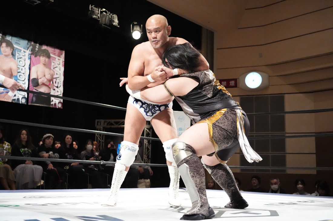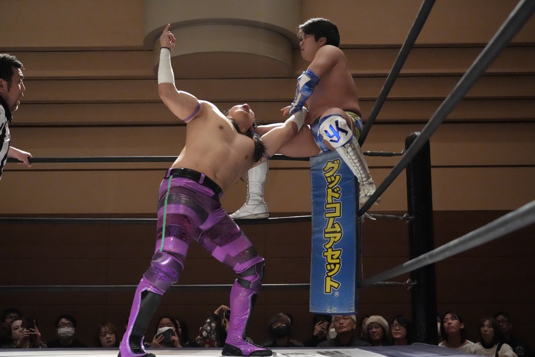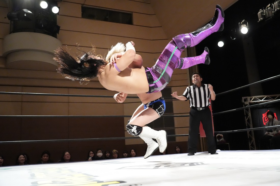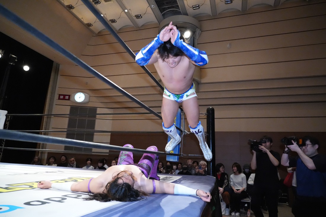 2月8日、愛知・今池ガスホールで「イマイケファイト・フィーバー 2026」が開催。新世代によるシングルNo.1決定リーグ戦「D GENERATIONS CUP 2026」Bブロックが最終戦を迎え、オープニングマッチで2勝1敗4点の瑠希也と3敗0点の葛西陽向が対戦。何としてでも1勝あげたい陽向は積極的に攻め込んでいくが、瑠希也がプロトボム2連発で勝利。陽向は全敗で公式戦を終えたが、瑠希也はメインの結果次第ではBブロック代表になる可能性が残された。