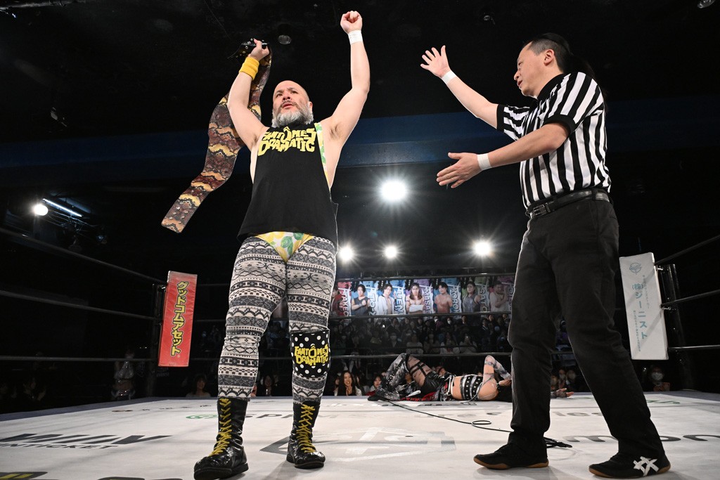 KANONが覚醒……STRANGE LOVE CONNECTIONがディーノ&ササダンゴを破りKO-Dタッグ王座V4達成!「俺は俺なりのDDTのアイコンになって、DDTの中心にたどり着きます!」(KANON)