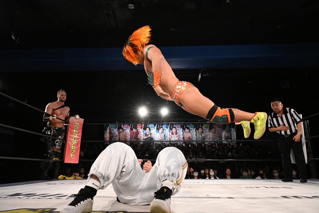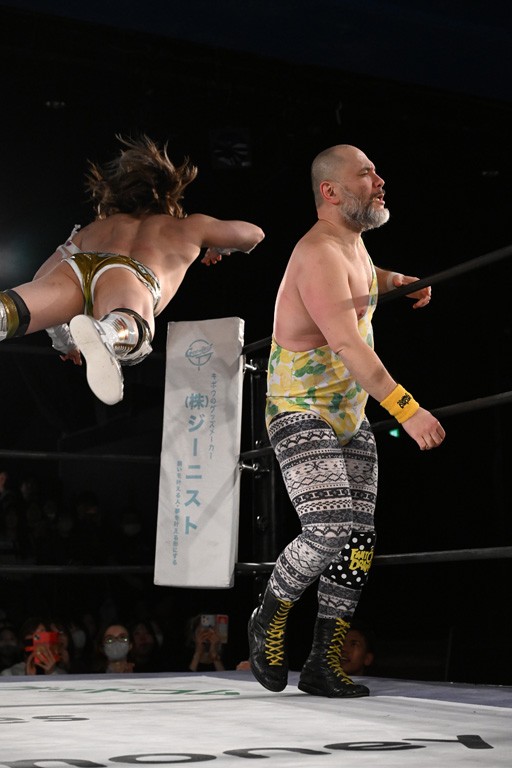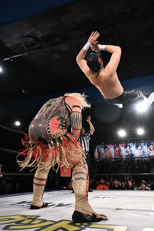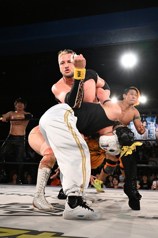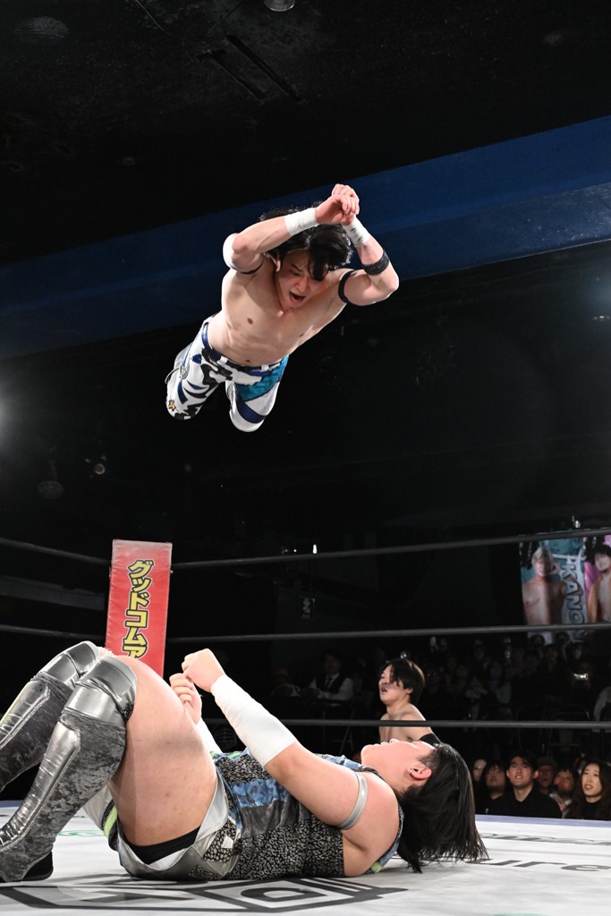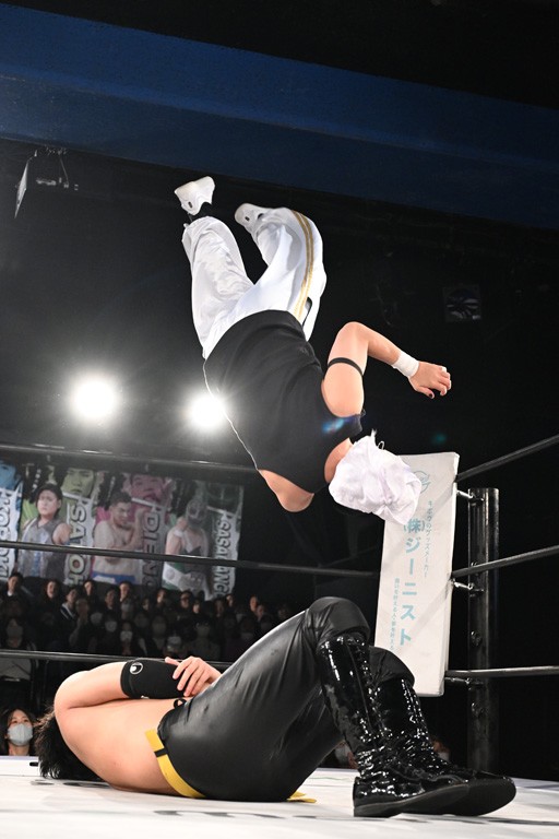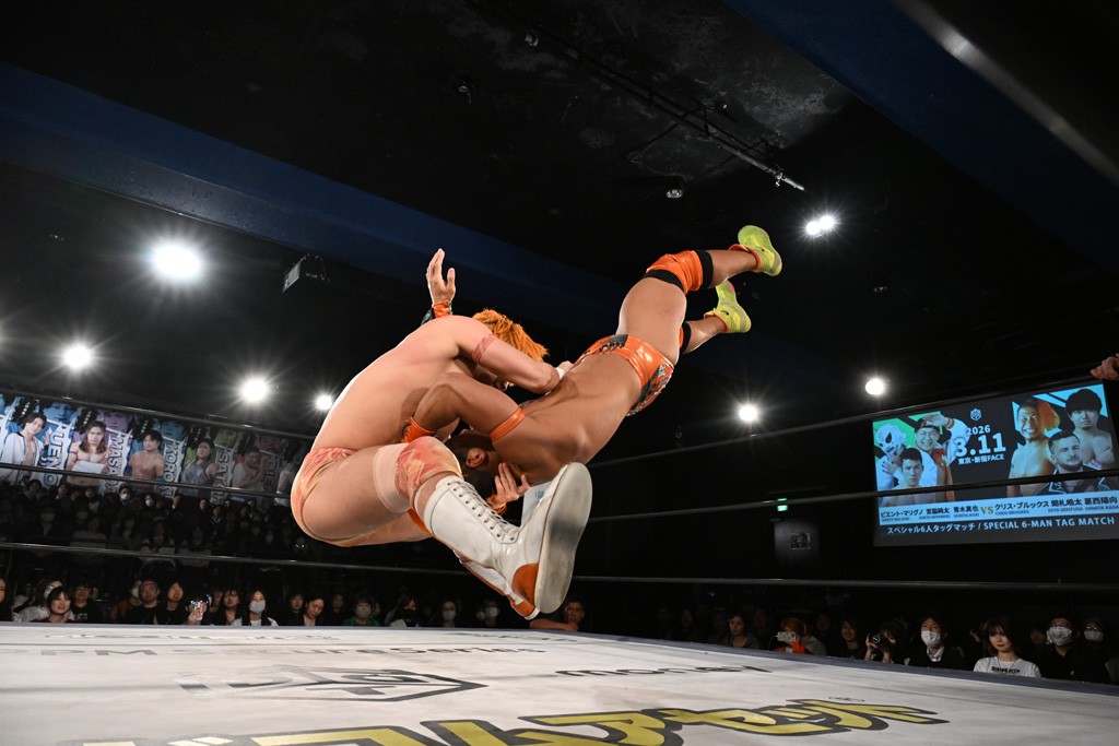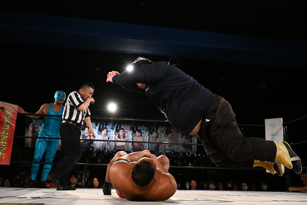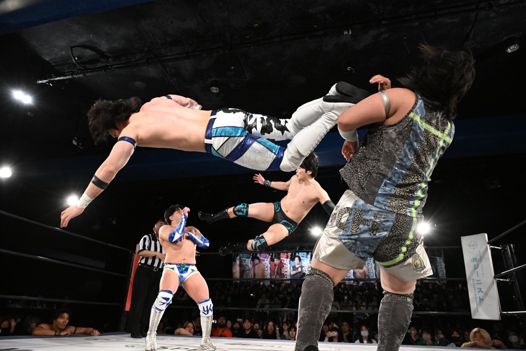 3・22後楽園大会の全カード発表が行われるも、アイアンマン王座防衛戦が勝手に組まれていた今林GMが彰人にブチギレ! 髙木がアイアンマンを狙い奇襲も、彰人のカットで今林GMは命拾い!