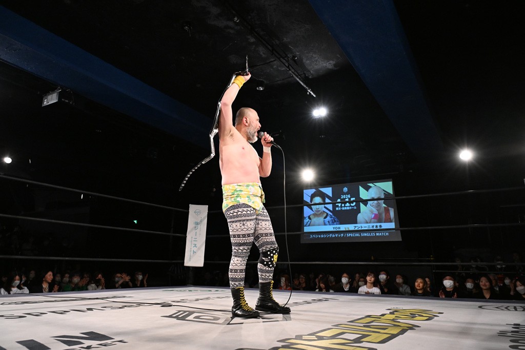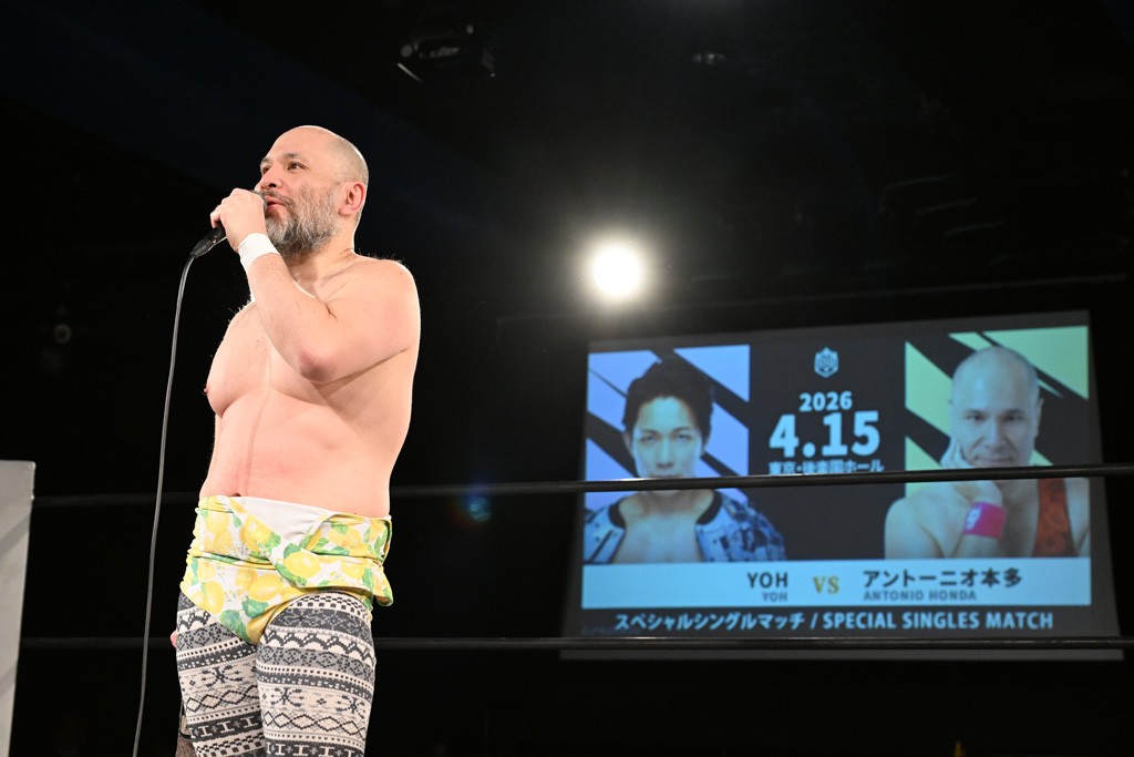 9月で閉館となる新宿FACE大会のスケジュールを発表! DDTと三井アウトレットパークのコラボイベント「DDT×MOP Wrestle Tour 2026」限定で争われるMOPタッグ王座をお披露目! 4・15後楽園大会でYOHvsアントーニオ本多のスペシャルシングルマッチが電撃決定! アントンがYOHを相手にアイアンマン防衛宣言をするが……!