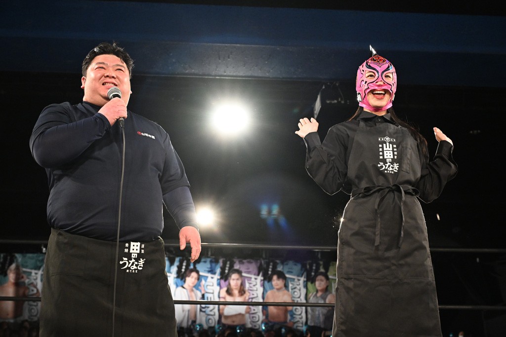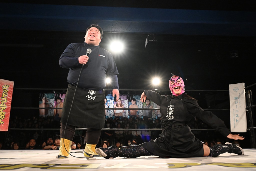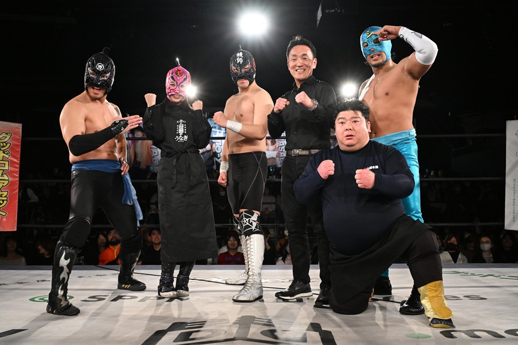 4・19志布志大会でデビューを目指す鰻マスクウーマンが登場するも、突如クリス&アントンが山田水産軍を襲撃! スーパー鰻マスクがに救援に駆け付けると、山田水産・山田社長が鰻マスク、スーパー鰻マスク、鰻マスクウーマンは生き別れになった三兄弟であると告白! 4・19志布志大会で鰻三兄弟がトリオを結成し、アジャコング&クリス&アントンを迎撃することが緊急決定!