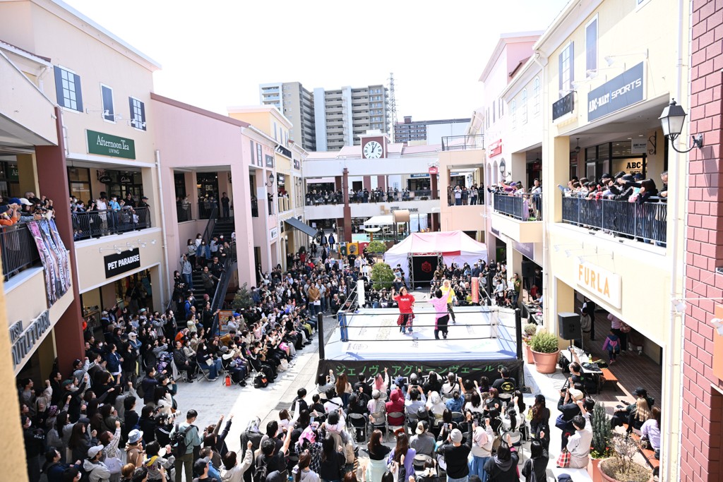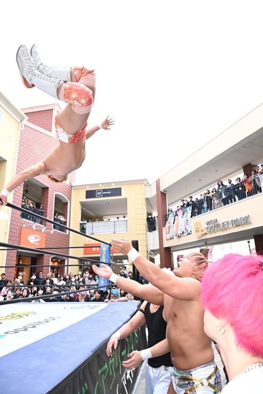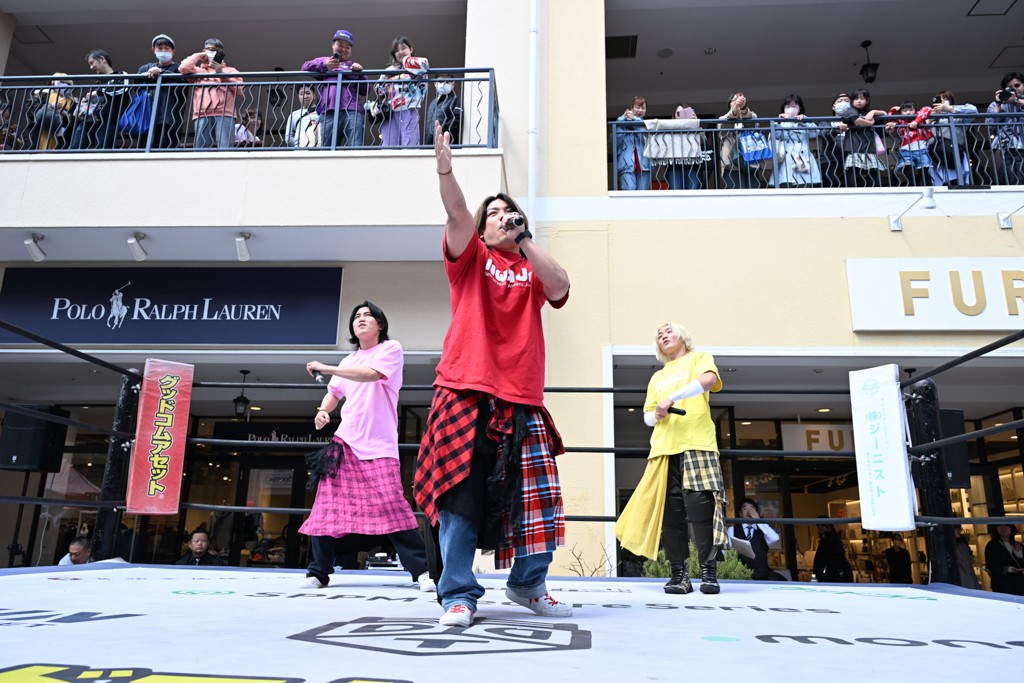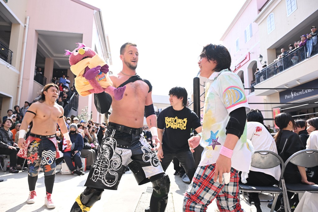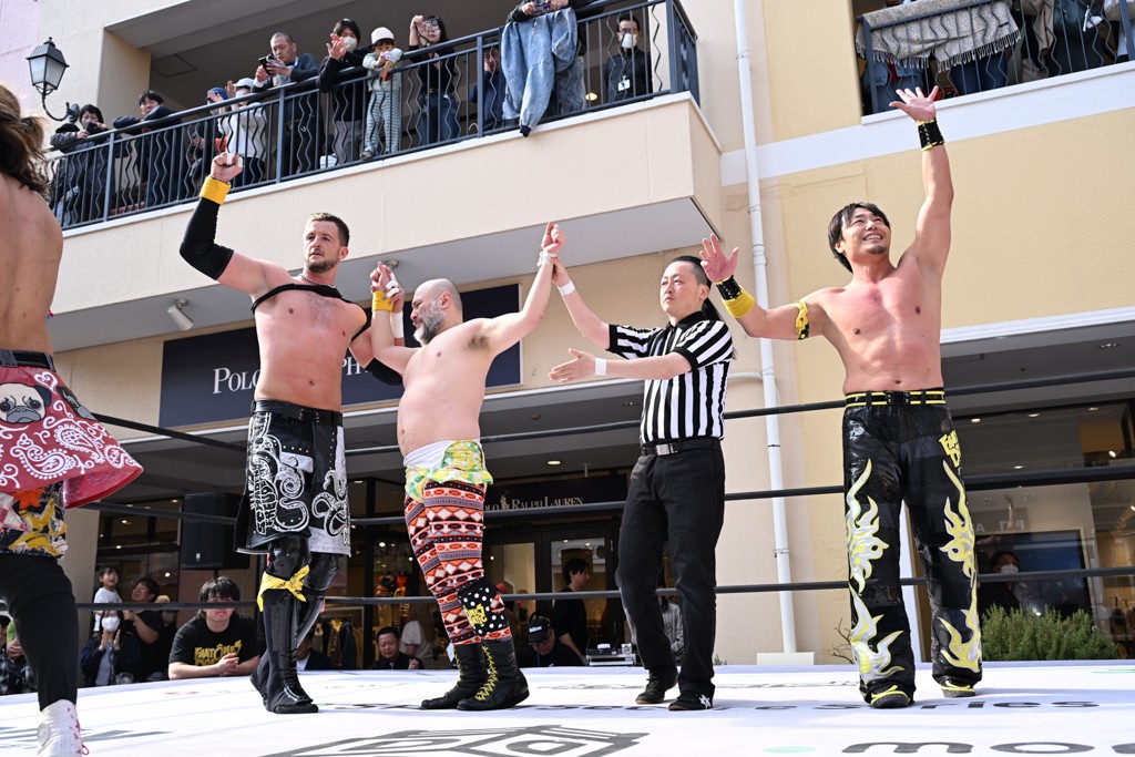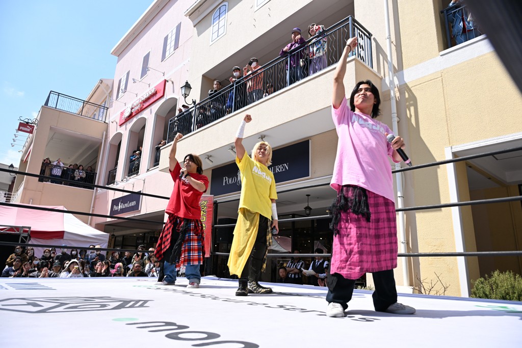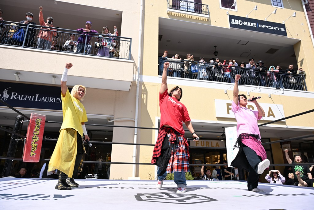 2人がベルトを受け取ると、KANONがマイク。KANONは「オッケー! 初代MOPタッグ王者になりましたー(会場拍手)! ビエント、来日して初めてのベルト奪取です! おめでとう! 彼の気持ちを聞いてみたいので、KIMIちゃん通訳をお願いします!」と言うと、マリグノはKIMIHIROの通訳で「ここ日本に来てベルトが獲れて嬉しい。全員タイトルホルダー、目指してこう」と力強いコメント。するとKANONは「去年STRANGE LOVE CONNECTION出来たばかりですけど、勢いに乗ってるんでこれからも頑張っていきたいと思います。そして、このMOPのベルトはこの後も4月、神戸と富山(小矢部)でもちろん防衛戦あります! このベルトを死守して、KANONとビエントがどんどんこのベルトの価値を高めて、いつか、三井アウトレットパークのCMに出たい!(会場拍手&笑い)夢は大きく持ちましょう! 今日は日曜日のこんな昼間に……(場内ざわつく)土曜日の! こんな昼間にこんなにたくさんの人が見てくれました。ありがとうございます! 僕たちDDTプロレスは、普段、東京、そして全国津々浦々、試合してますが、是非今日初めてプロレス見た方、初めてDDT見た方、もし興味あったら会場まで足をお運びください! 皆さんの応援がパワーになってます! ヤバい、ちょっと頭が回らなくなってきたので、締めたいと思います! このあとも三井アウトレットパークでお買い物をお楽しみください! 今日はありがとうございました!」と大会を締めくくった。なお、「DDT×MOP Wrestle Tour 2026 in 三井アウトレットパーク」としては4月11日三井アウトレットパーク マリンピア神戸大会、4月12日三井アウトレットパーク 北陸小矢部大会(両大会共に観戦無料)が予定されている。お近くの方はぜひ会場に足をお運びください。