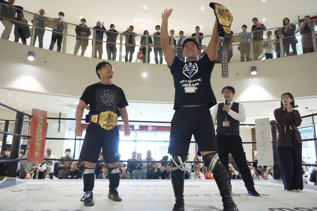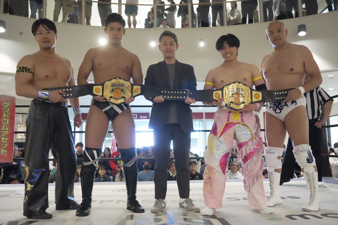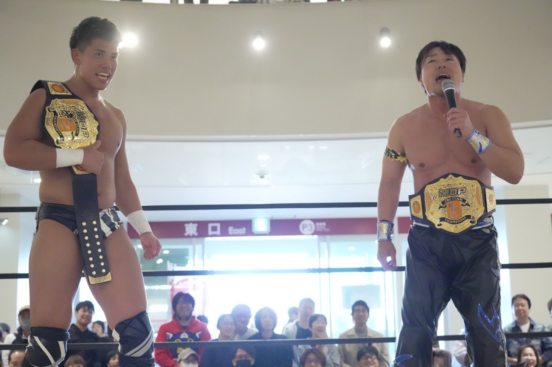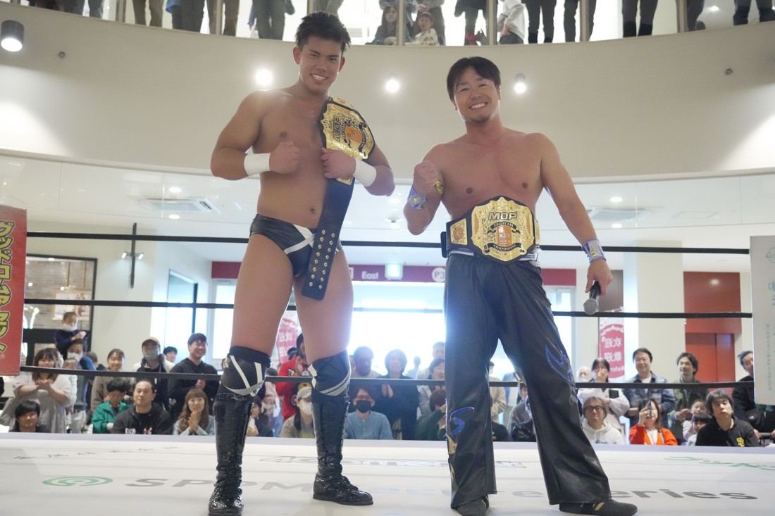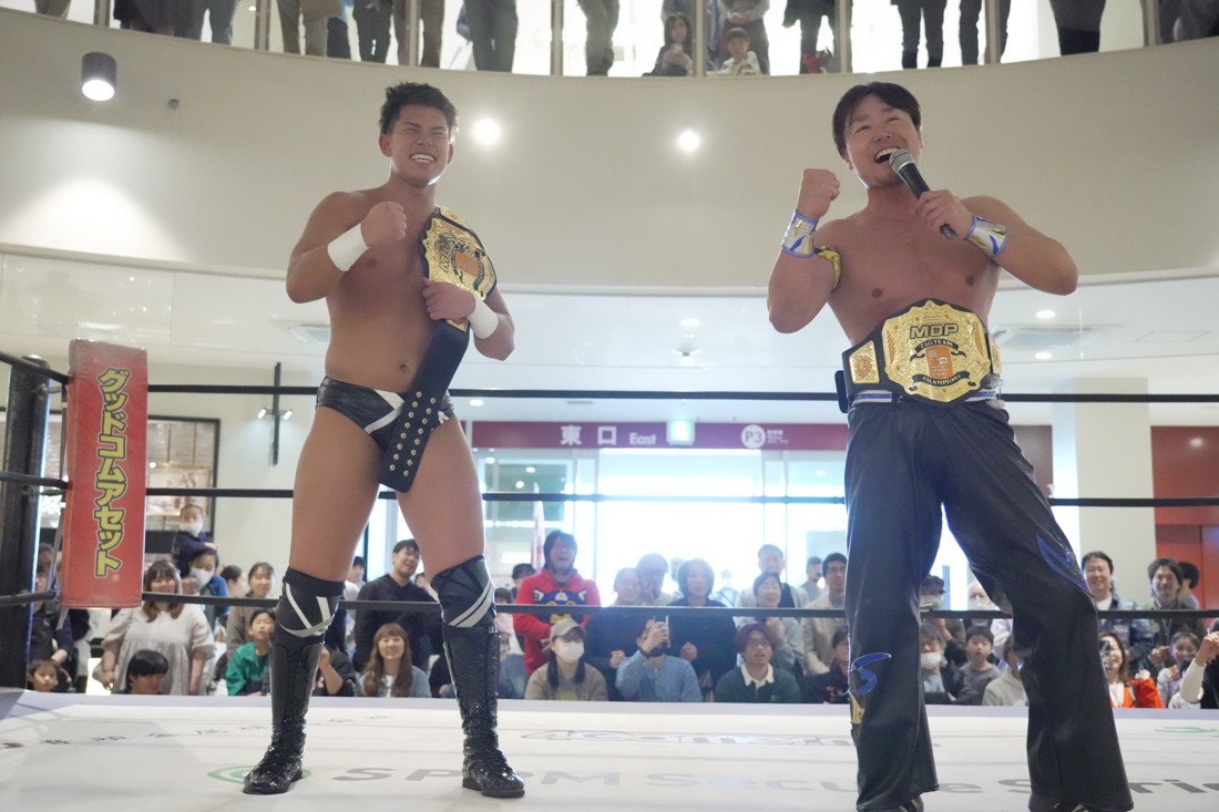 初めてプロレスを見るお客さんも多い中、終始大盛り上がりの熱戦の末、MOPタッグ初防衛に成功したHARASHIMAが「MOPのベルトを全国の三井アウトレットパークで防衛してやるさー」「なんでー?」「見ているみんなを楽しませてやるさー」「なんでー?」「みんなも沢山買い物もするさー」「なんでー?」「なんでかって、それは鍛えているからだー!」で、DDT×MOP Wrestle Tour 2026を締めくくった。