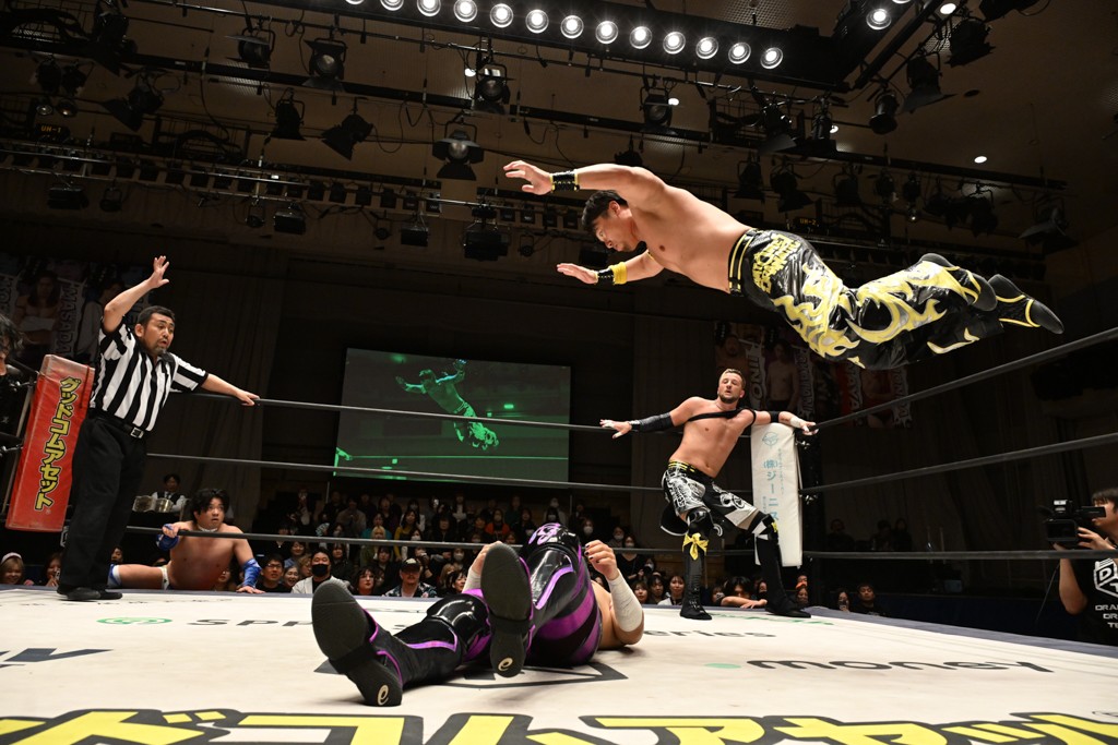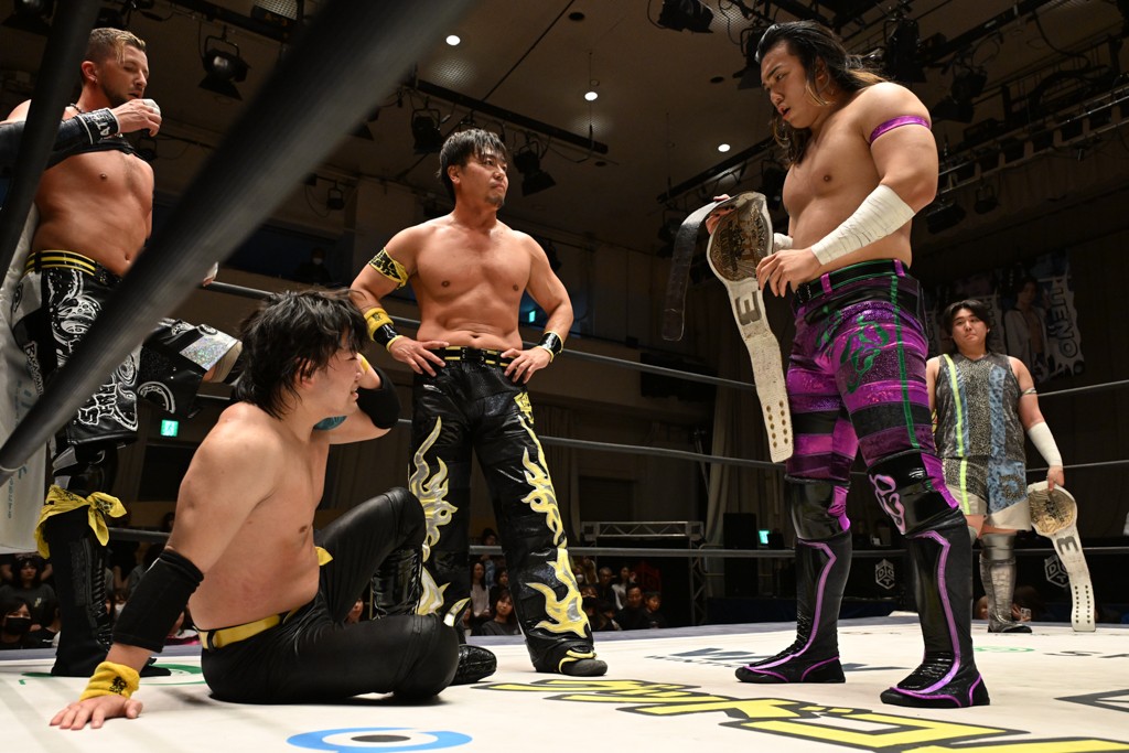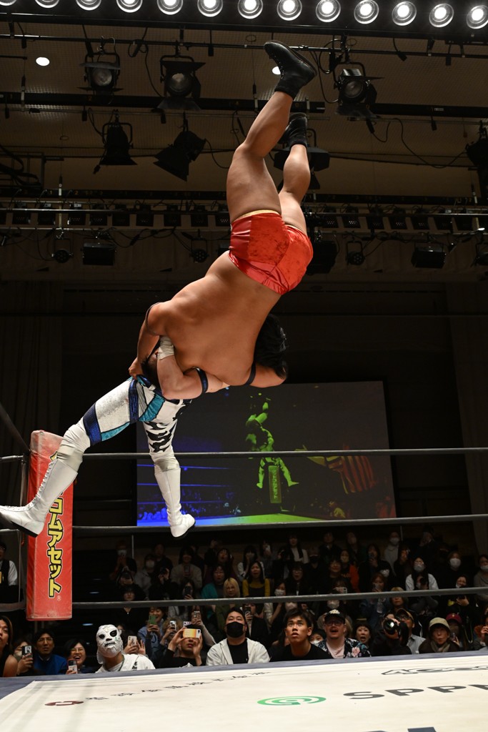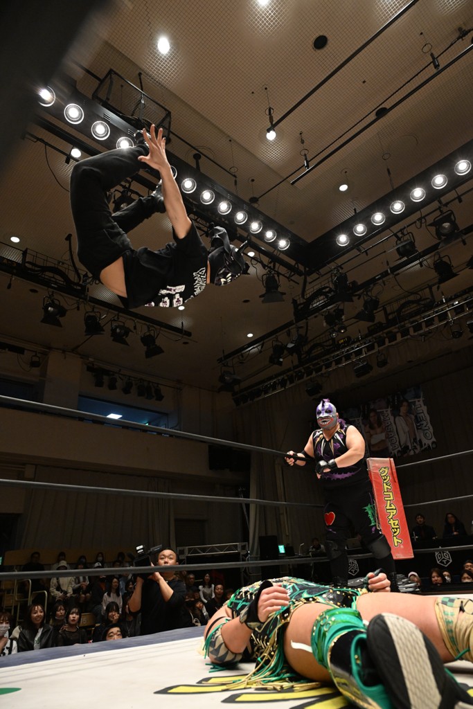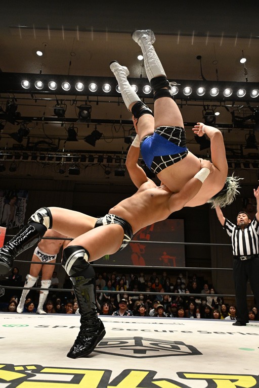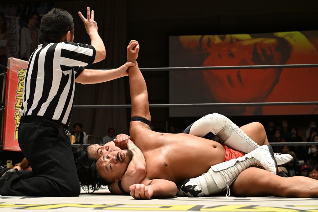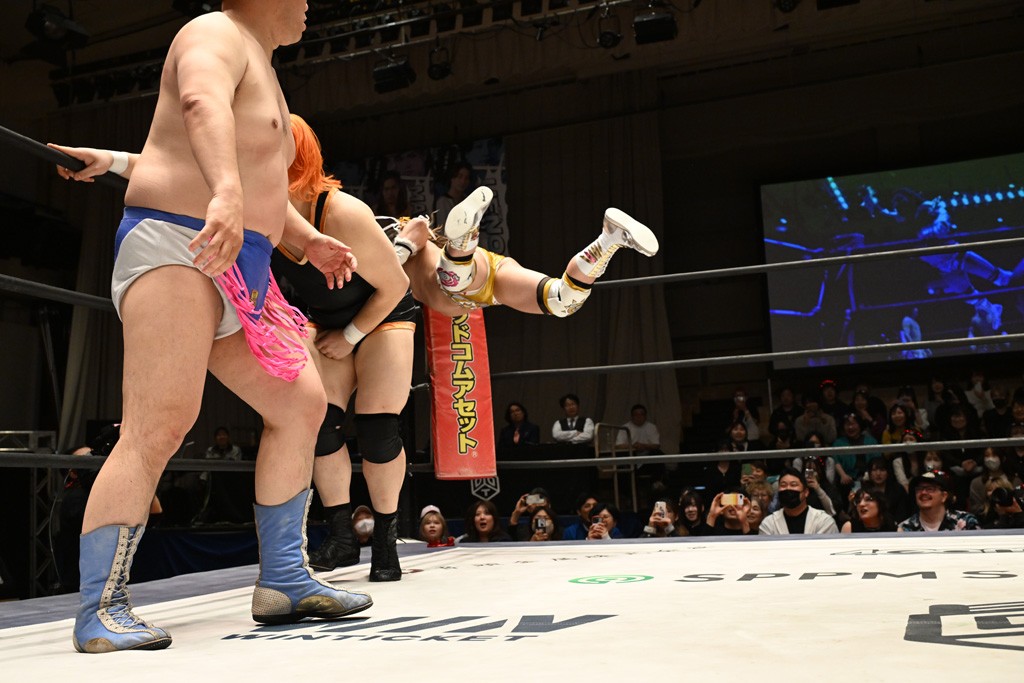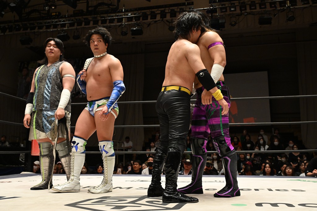 paleyouthの正田壮史&高鹿佑也&佐藤大地がFANTÔMES DRAMATICのクリス・ブルックス&HARASHIMA&葛西陽向を下し、KO-D6人タッグ王座V2に成功。5・2札幌サンプラザでSTRANGE LOVE CONNECTIONのMAO&KANON&ビエント・マリグノが挑戦することが決まった。