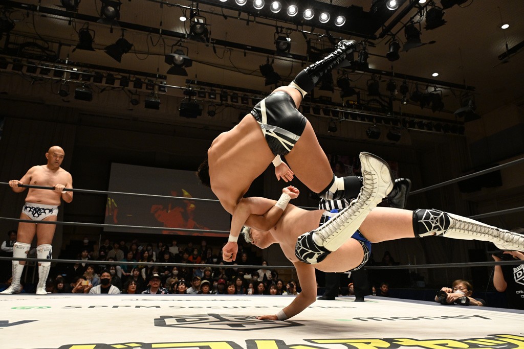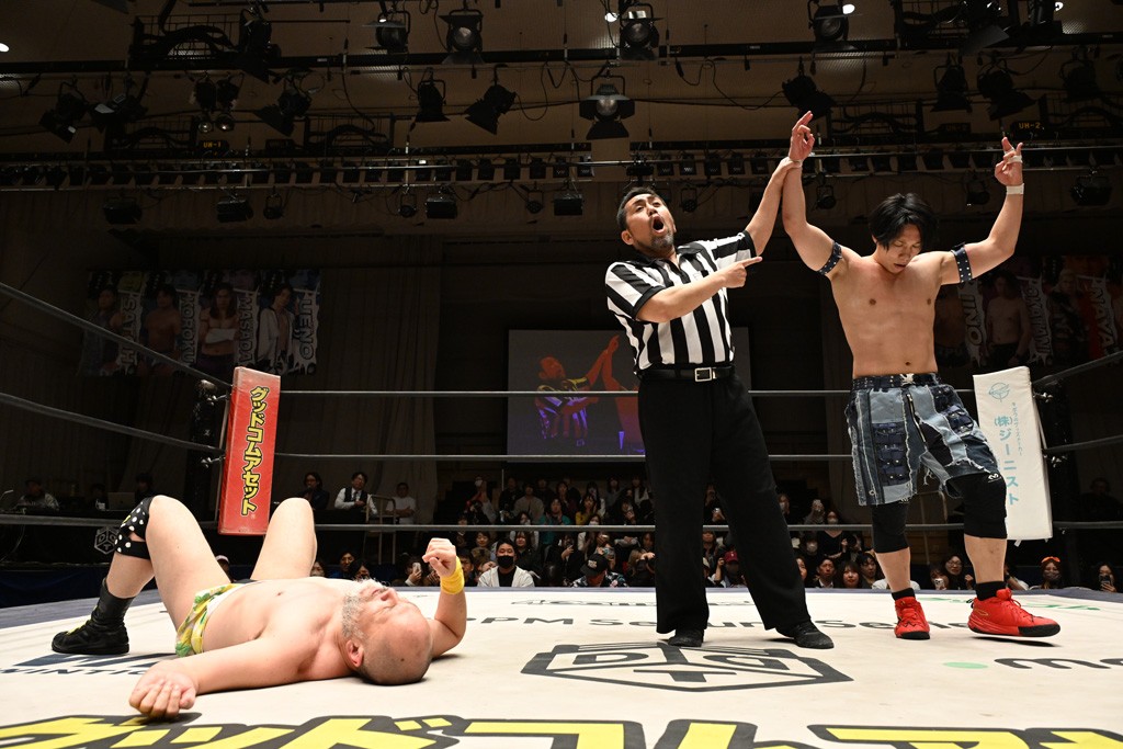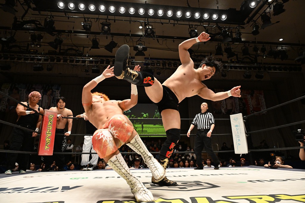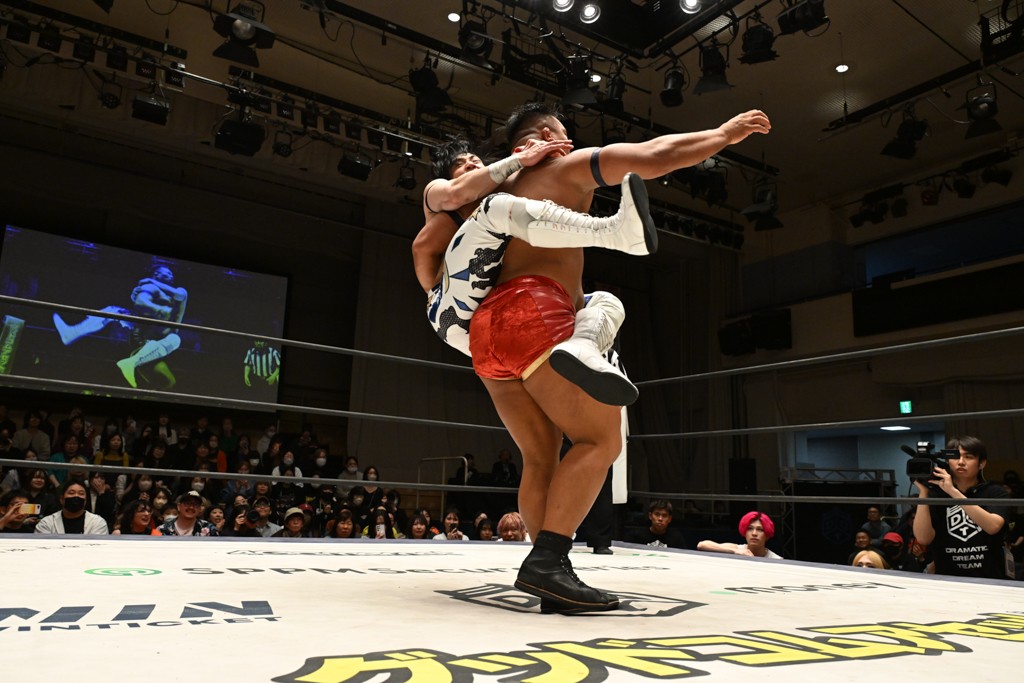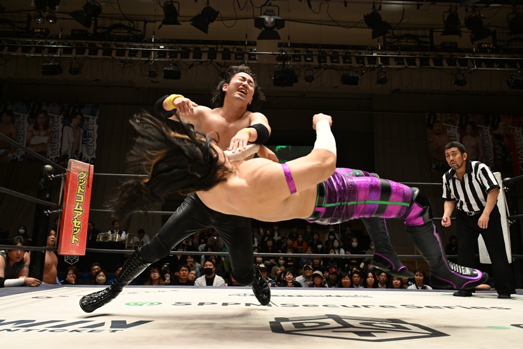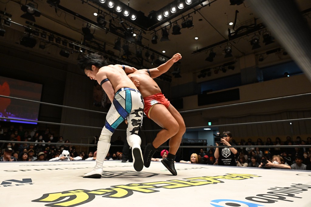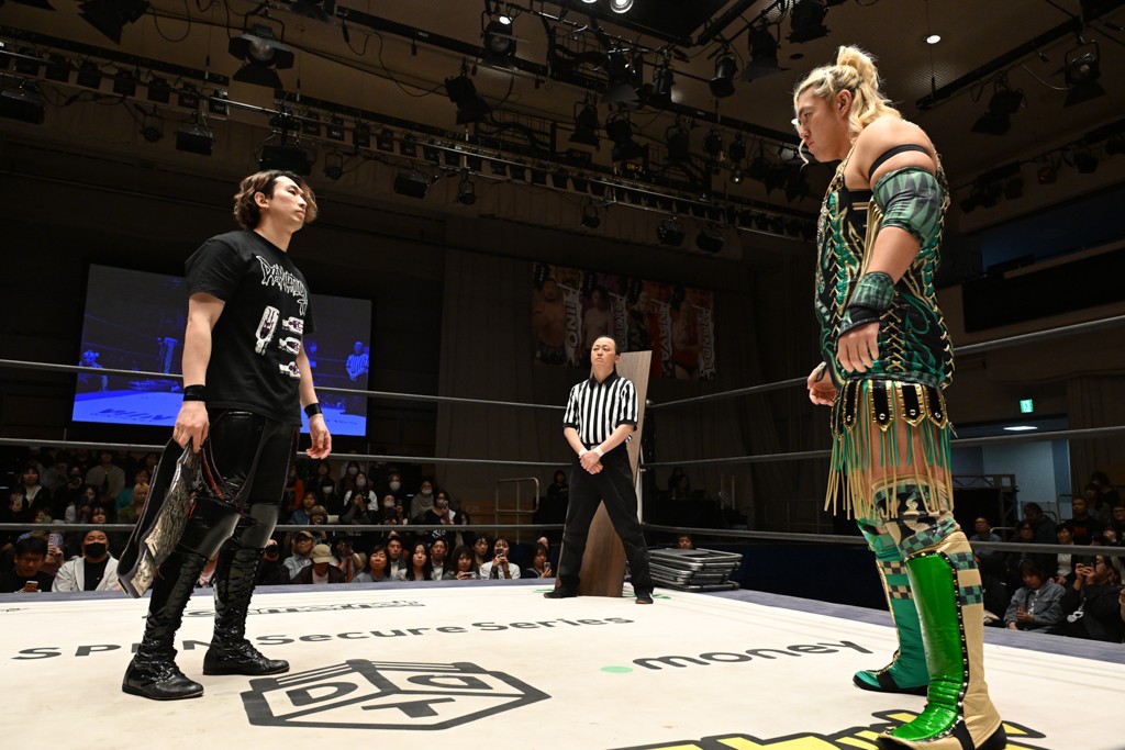 4月15日、東京・後楽園ホールで「DREAM LIGHTS 〜水曜日のDDTどうでしょう〜」が開催。KO-D無差別級王者・上野勇希が大熱闘の末に飯野雄貴を破り、7度目の防衛に成功した。