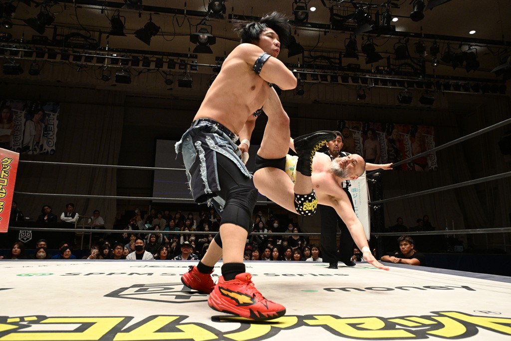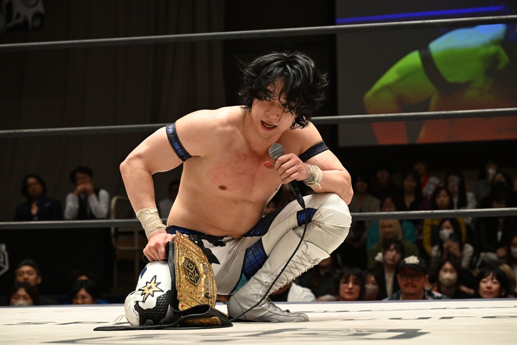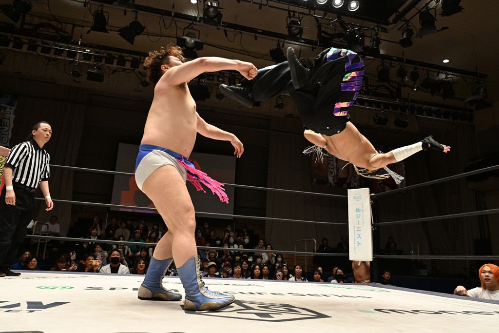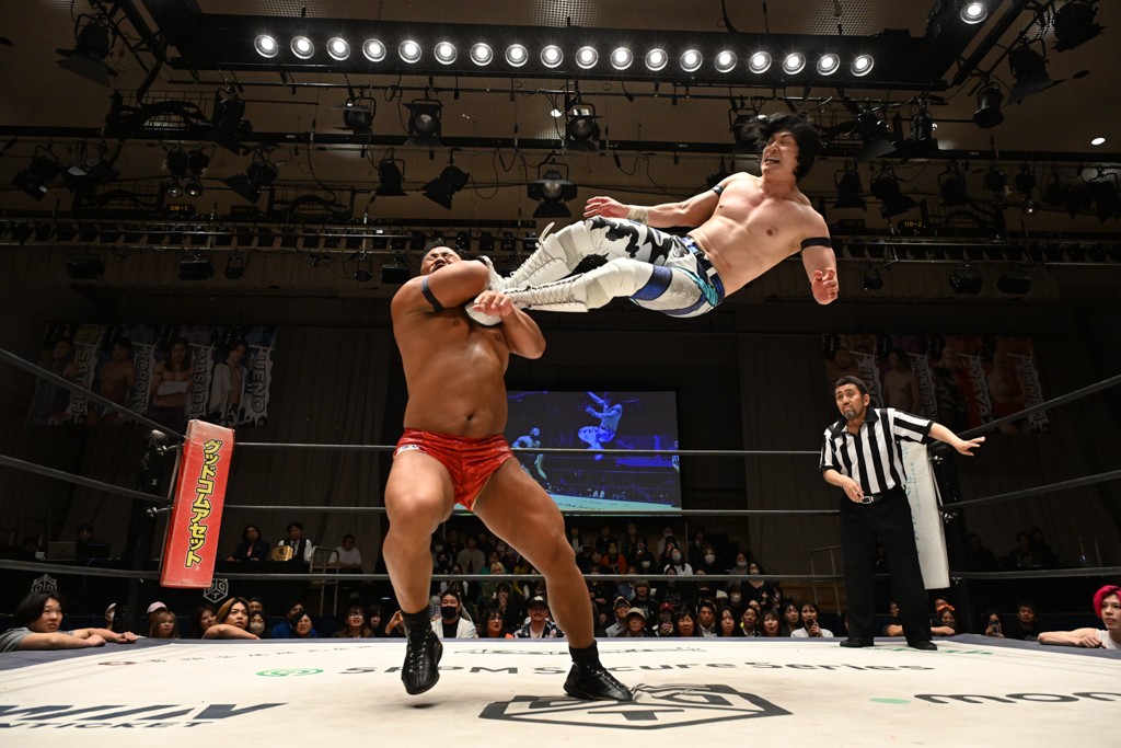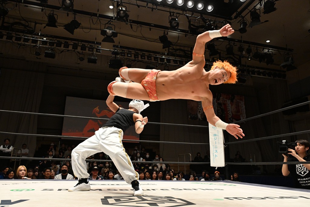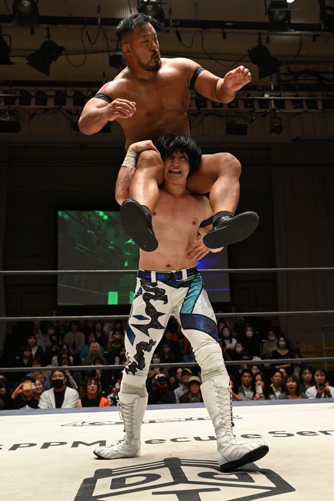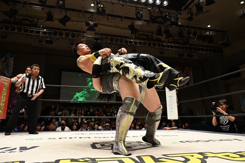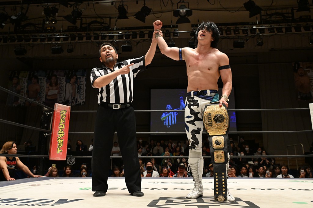 4月15日、東京・後楽園ホールで「DREAM LIGHTS 〜水曜日のDDTどうでしょう〜」が開催。KO-D無差別級王者・上野勇希が大熱闘の末に飯野雄貴を破り、7度目の防衛に成功した。