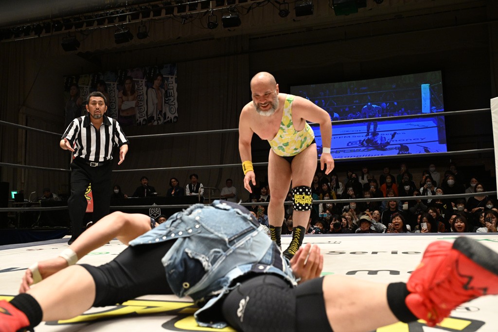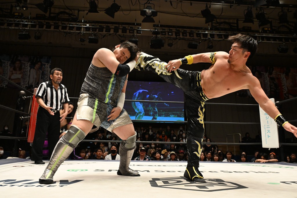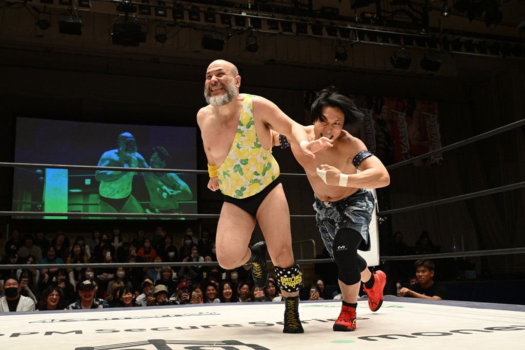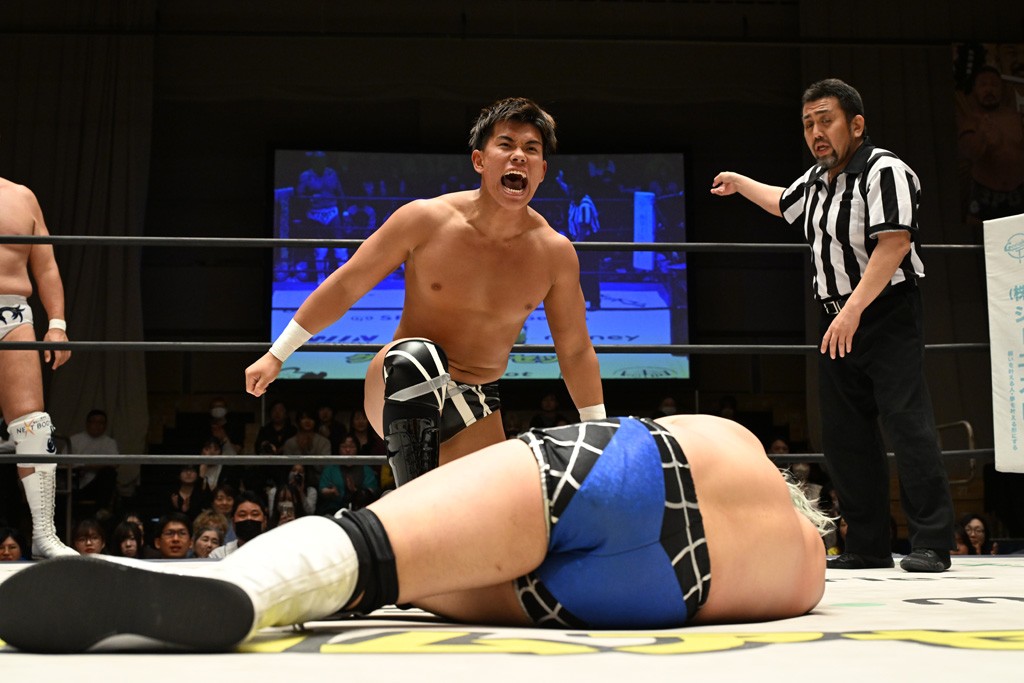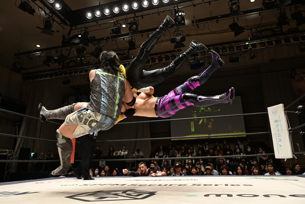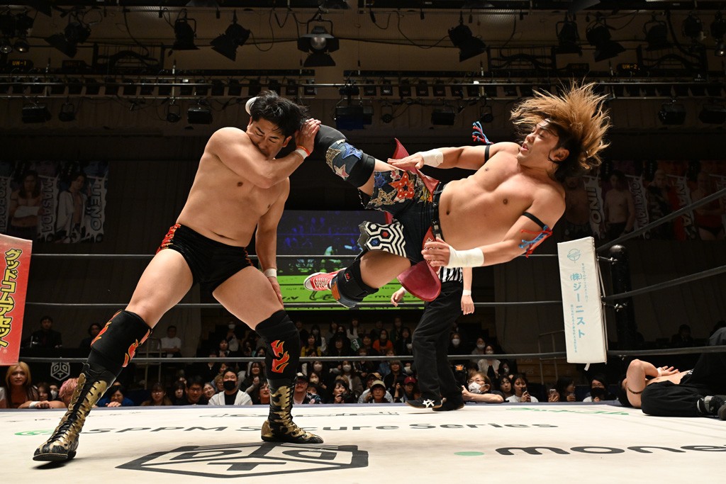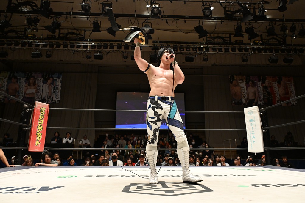4月15日、東京・後楽園ホールで「DREAM LIGHTS 〜水曜日のDDTどうでしょう〜」が開催。KO-D無差別級王者・上野勇希が大熱闘の末に飯野雄貴を破り、7度目の防衛に成功した。