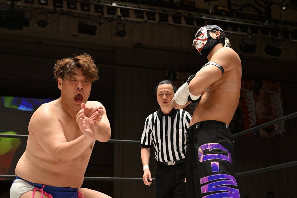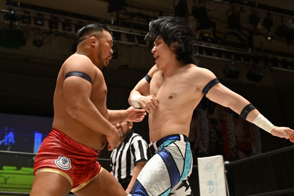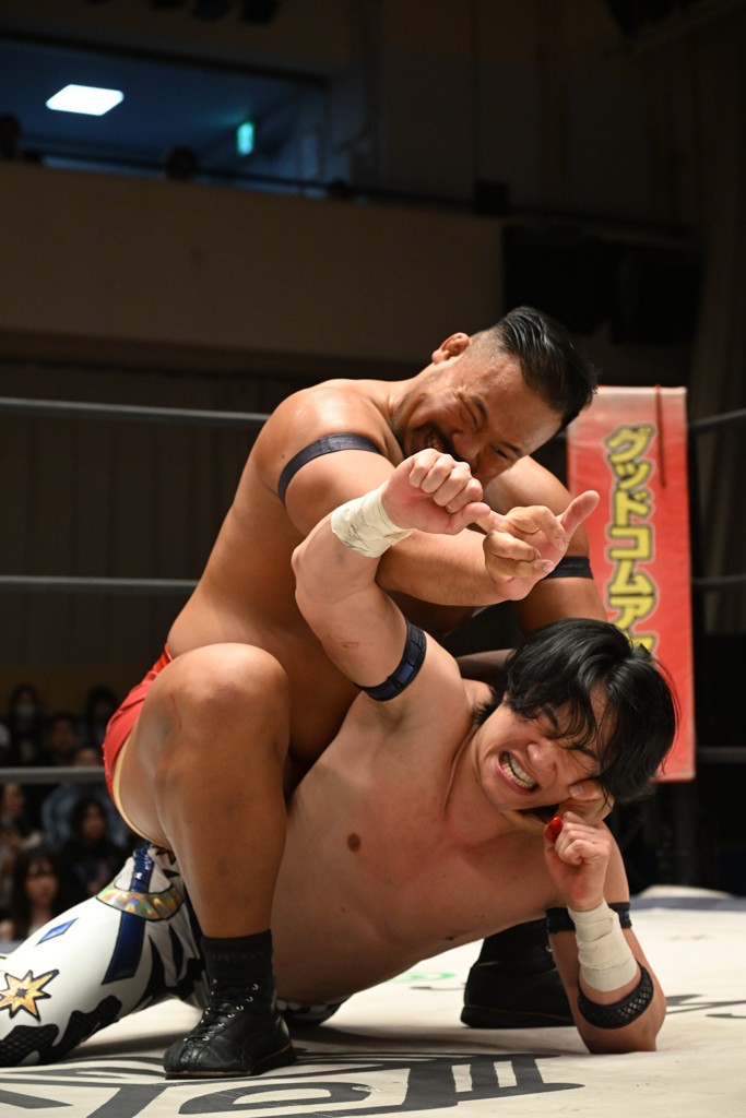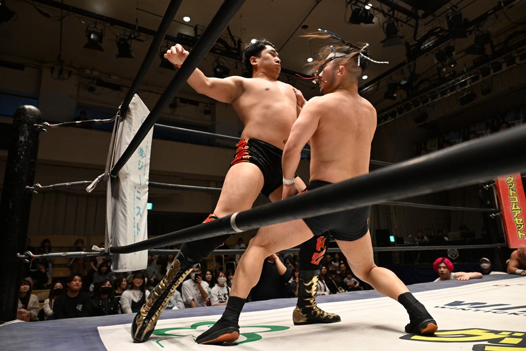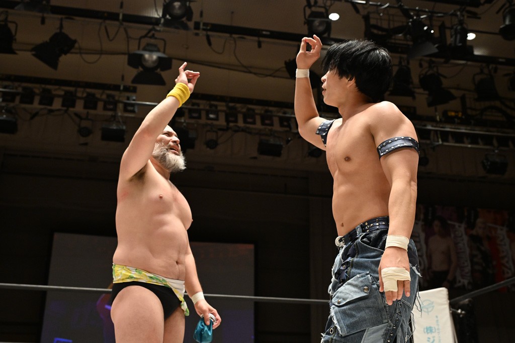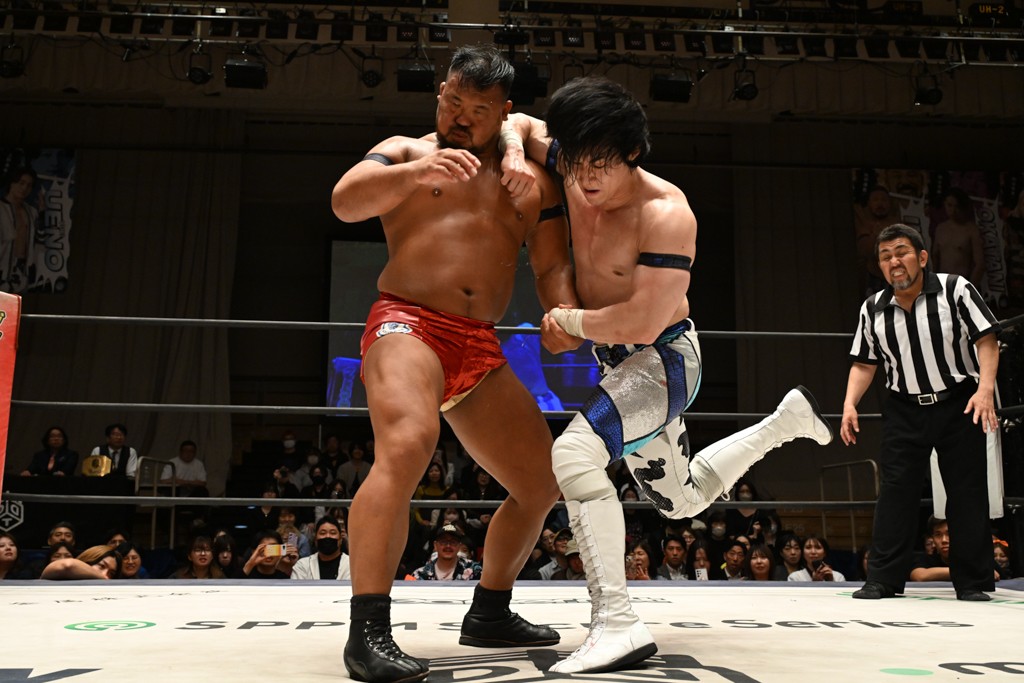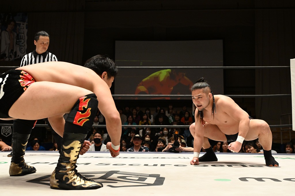 挑戦者の飯野にとって、上野は1年先輩でデビュー戦の対戦相手。同王座には2019年11・19後楽園(当時王者はHARASHIMA)、飯野“セクシー”雄貴時代の2023年5・3横浜武道館(当時王者は火野裕士)で挑んでおり、今回が3年ぶり3度目のチャレンジとなる。