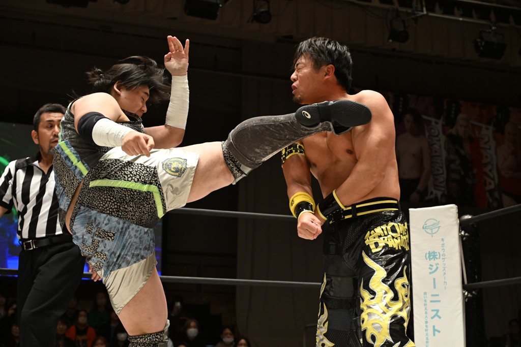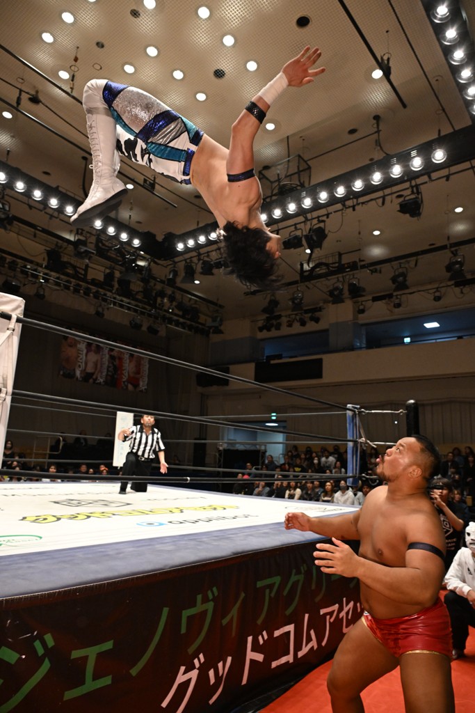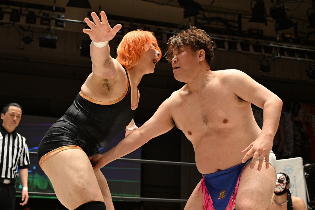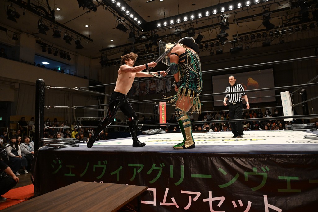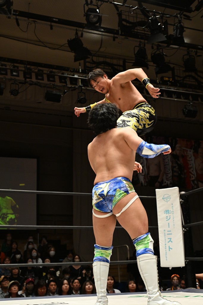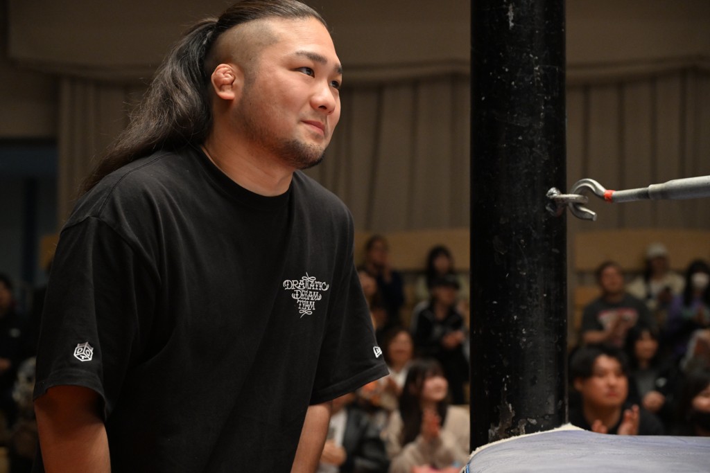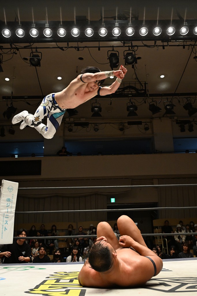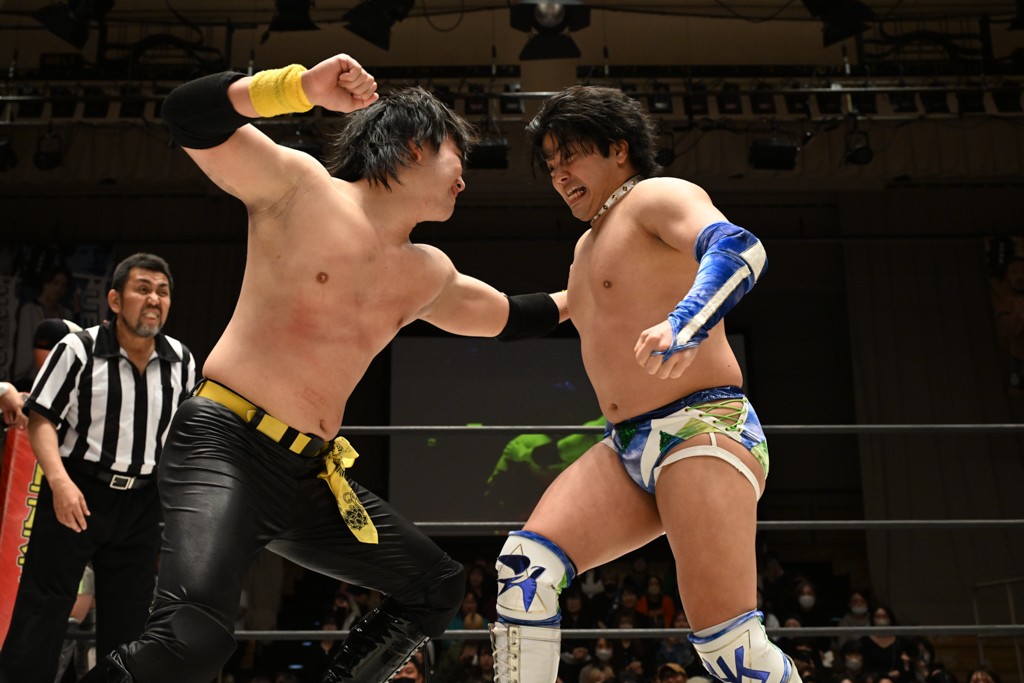 挑戦者の飯野にとって、上野は1年先輩でデビュー戦の対戦相手。同王座には2019年11・19後楽園(当時王者はHARASHIMA)、飯野“セクシー”雄貴時代の2023年5・3横浜武道館(当時王者は火野裕士)で挑んでおり、今回が3年ぶり3度目のチャレンジとなる。