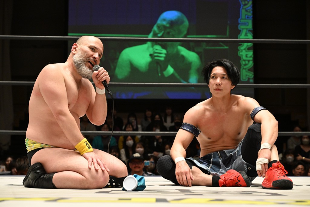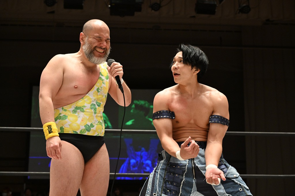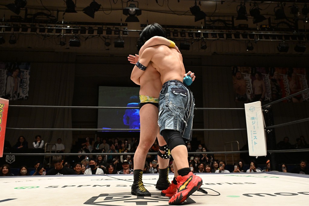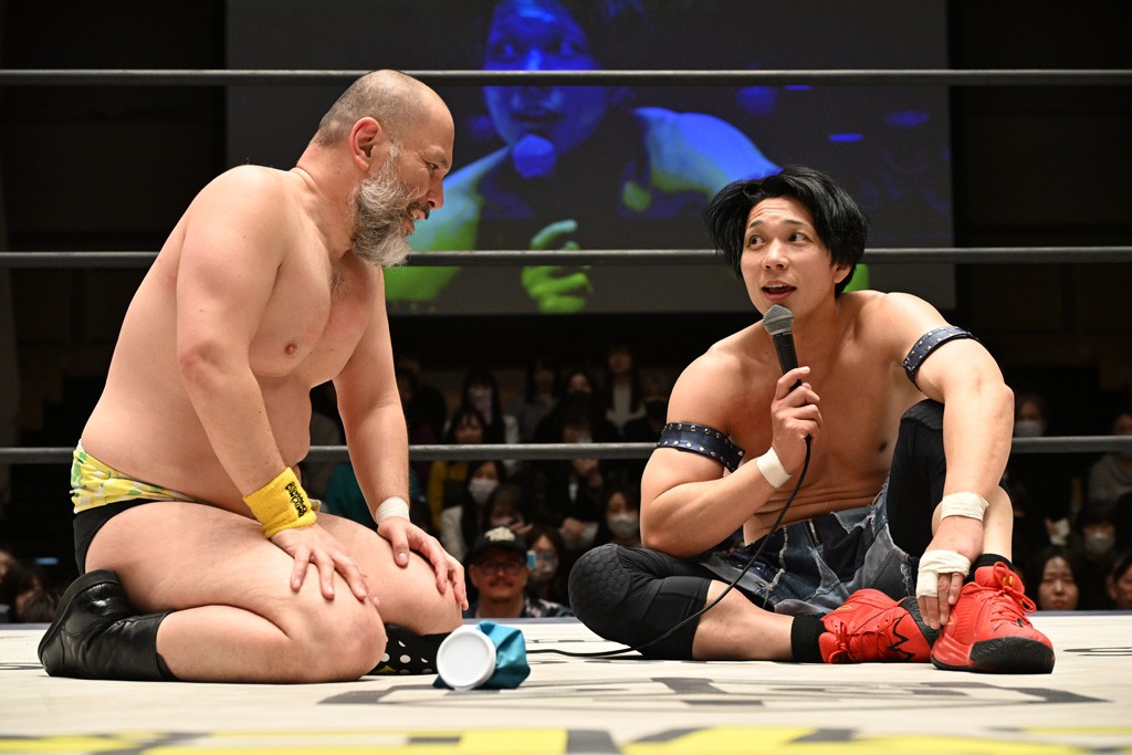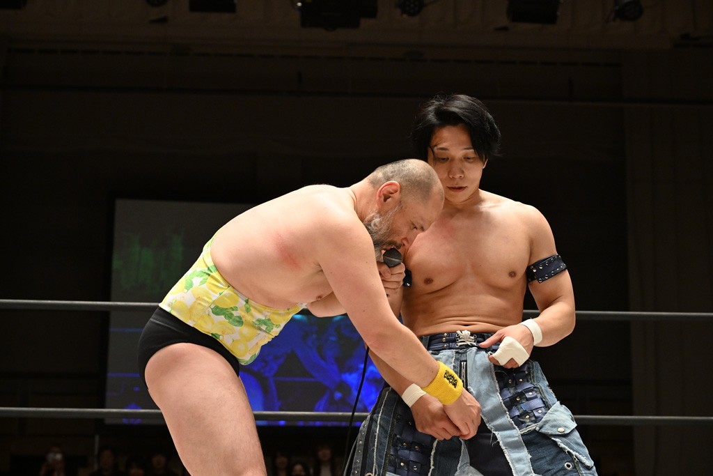 2人は昨年6・9後楽園での「DDTプロレス×新日本プロレス 一面対抗戦」で通じ合い、あれから10カ月の月日を経て、シングルマッチで相対した。