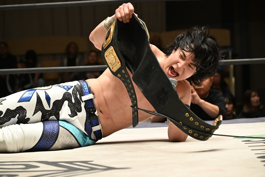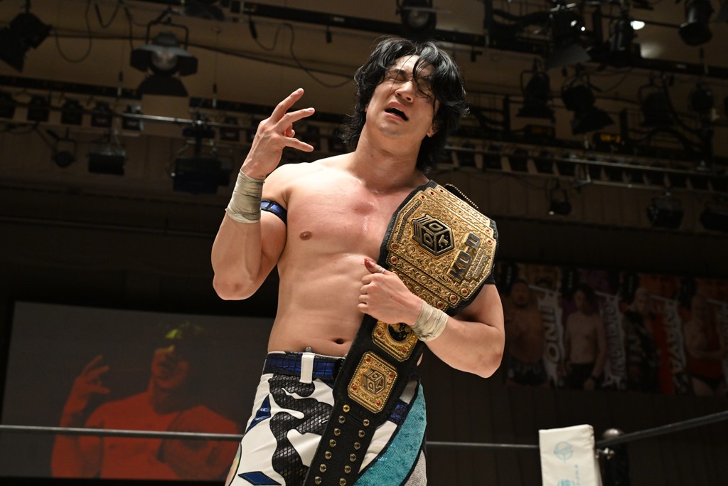 上野勇希が大熱闘の末、飯野雄貴を破りKO-D無差別級王座V7!「明日も5年後も10年後も100年後も何回でもこのベルトかけてやろうや」