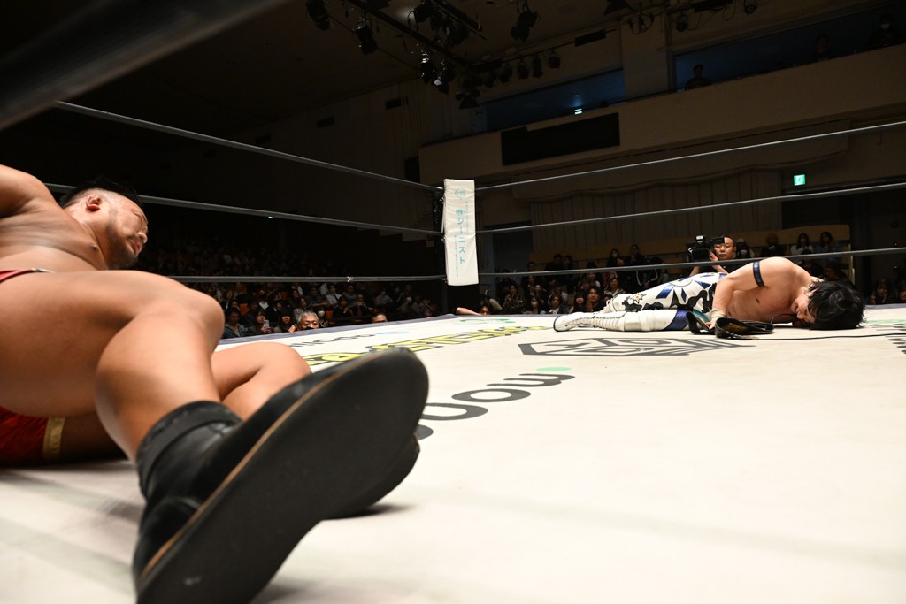 飯野は「俺は負けたんだよな? KO-D無差別獲れなかったのか? クソッ! でも上野勇希、上野先輩、 ユウキ! すげえ楽しかった! 久しぶりにKO-D無差別戦えて、すげえ楽しかった! でもここ(腰)にベルトはない! それはすげえ悔しい! 俺のプロレス人生はまだまだ。まだまだ脂が乗ってると思ってる。これからも脂を乗せていく。未来は考えないよ。俺は今を120%! 次、KO-D無差別、挑戦するときは絶対勝ってやる!」と再チャレンジを期した。