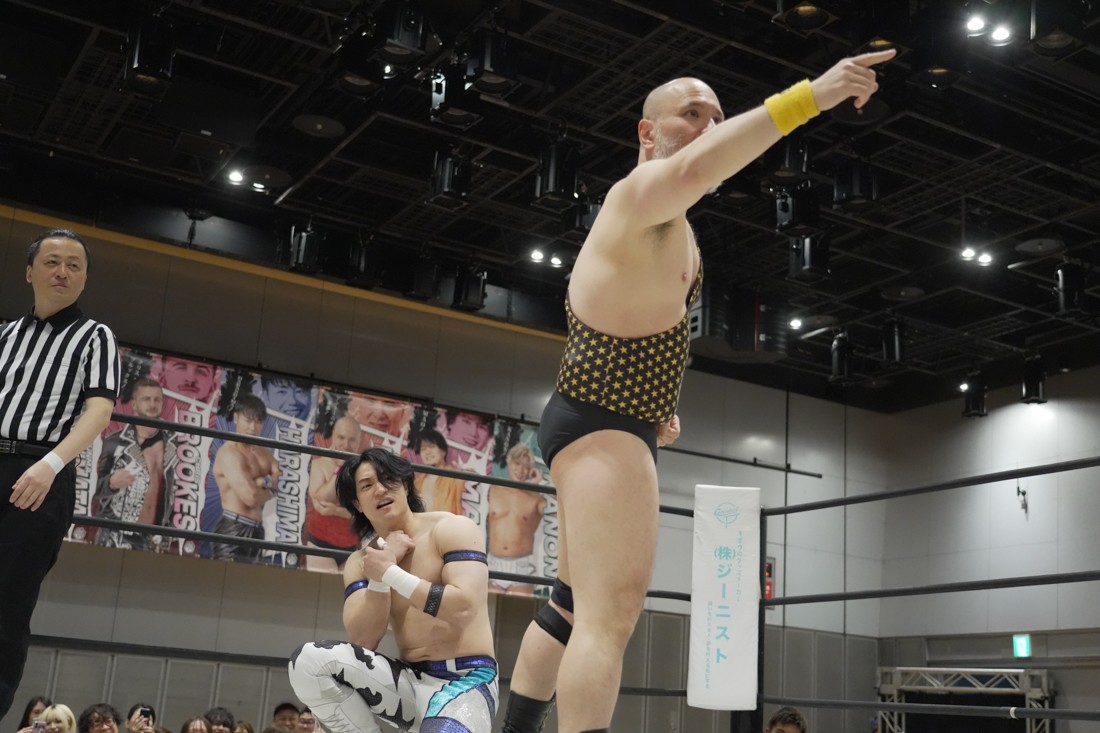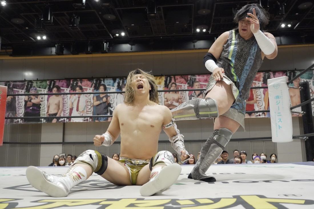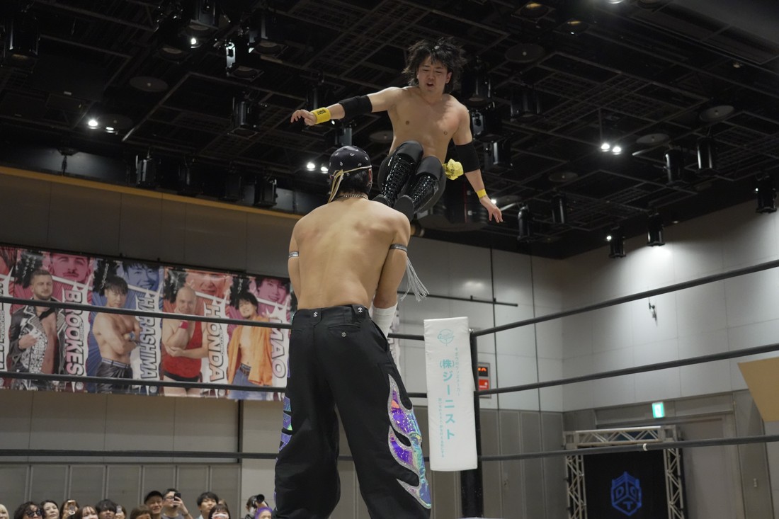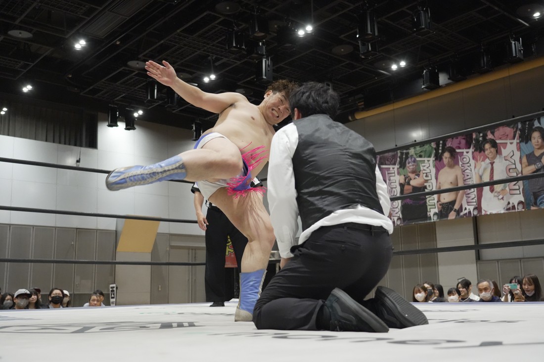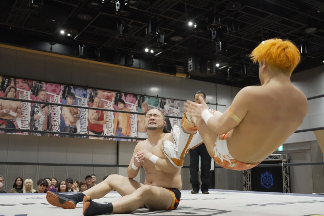 4月18日、福岡・アクロス福岡で「もつなべバスタ-」が開催。メインイベントでは須見和馬の持つDDT UNIVERSAL王座に勝俣瞬馬が挑戦。須見にとっては同じNωA Jr.のメンバーにして先輩の勝俣から挑戦表明された格好となったが、勝俣はリング下から大量のパイプイスを取り出して床にまき散らすと、リング上の須見に「降りてこい!」と挑発。挑発に乗った須見を場外で引きずり回した勝俣は、イス盛りの上にデスバレーボムで須見を叩き付ける。その後もシットダウン・パワーボムやKONOSUKE TAKESHITAばりのジャーマンスープレックスで須見を追い込んでいった勝俣だが、須見も隙あらばスク〜ルボ〜イを仕掛けていく。どうにかキックアウトした勝俣はととのえスプラッシュ2連発から¡Hasta la vista!で仕留めようとしたが、須見はこれをスク〜ルボ〜イで切り返し、がっつり体重を乗せて3カウントを奪った。