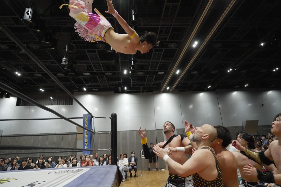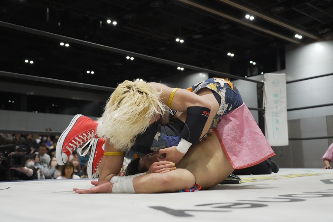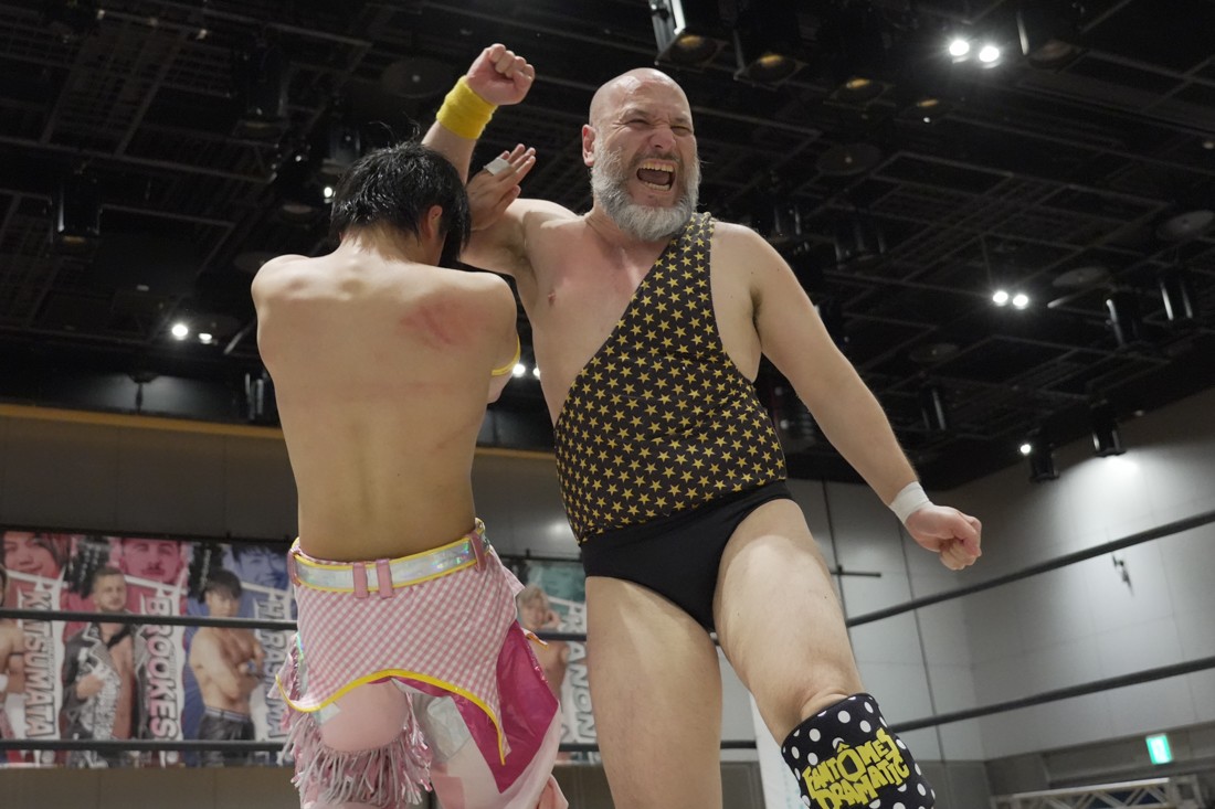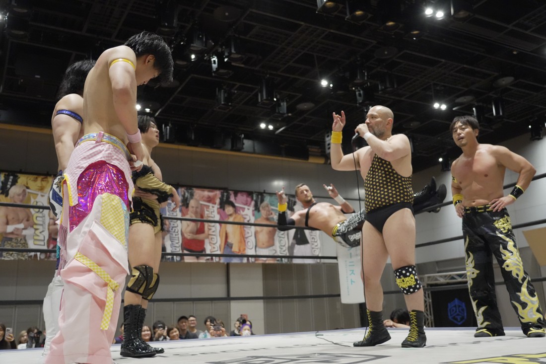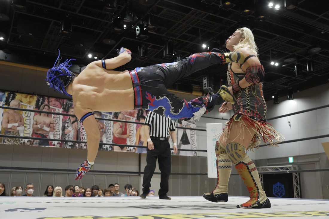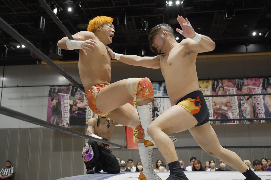 4月18日、福岡・アクロス福岡で「もつなべバスタ-」が開催。メインイベントでは須見和馬の持つDDT UNIVERSAL王座に勝俣瞬馬が挑戦。須見にとっては同じNωA Jr.のメンバーにして先輩の勝俣から挑戦表明された格好となったが、勝俣はリング下から大量のパイプイスを取り出して床にまき散らすと、リング上の須見に「降りてこい!」と挑発。挑発に乗った須見を場外で引きずり回した勝俣は、イス盛りの上にデスバレーボムで須見を叩き付ける。その後もシットダウン・パワーボムやKONOSUKE TAKESHITAばりのジャーマンスープレックスで須見を追い込んでいった勝俣だが、須見も隙あらばスク〜ルボ〜イを仕掛けていく。どうにかキックアウトした勝俣はととのえスプラッシュ2連発から¡Hasta la vista!で仕留めようとしたが、須見はこれをスク〜ルボ〜イで切り返し、がっつり体重を乗せて3カウントを奪った。