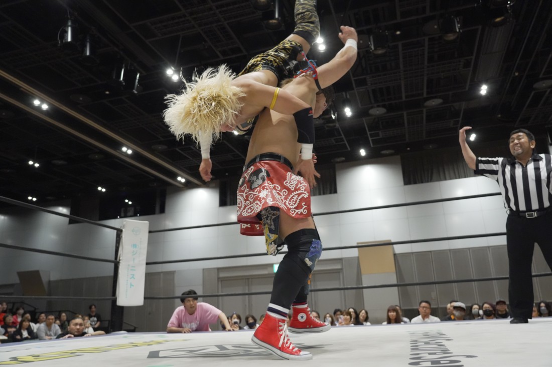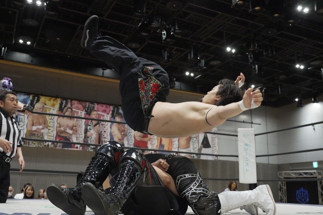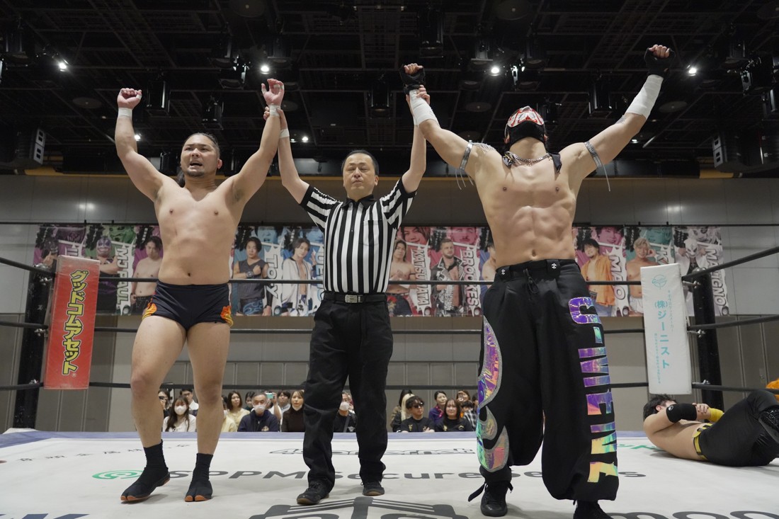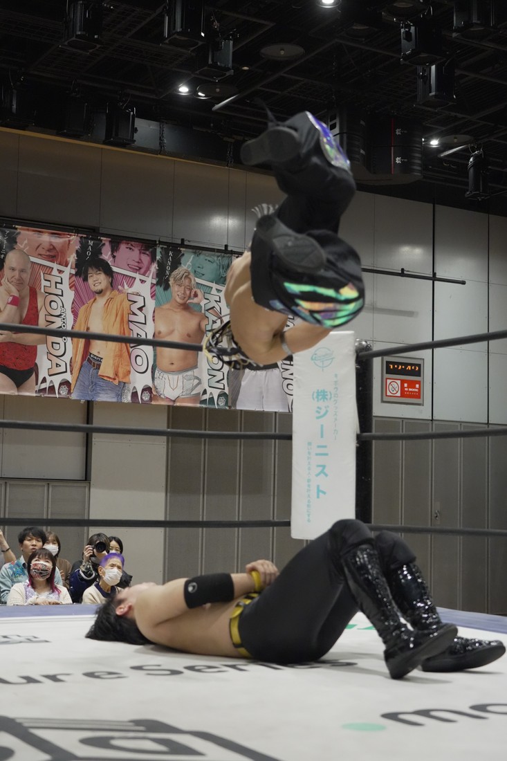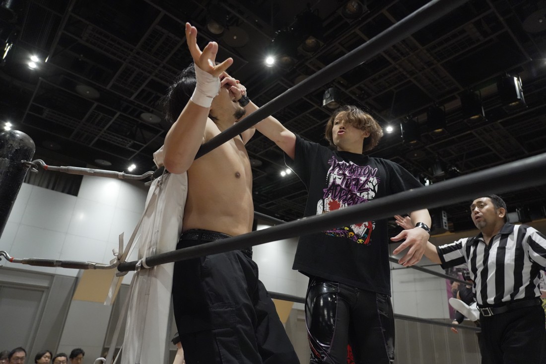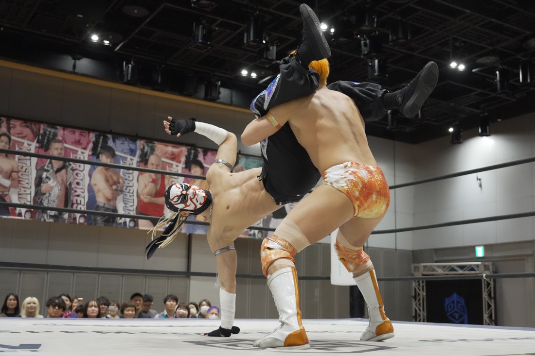 O-MENZの隈取が初めて地方大会に参戦。石田有輝とタッグを組んだ隈取は宮脇純太&葛西陽向と対戦。大歓声で迎え入れられた隈取は、ダンスを取り入れたトリッキーな動きで宮脇も葛西も翻弄していく。途中、葛西の足攻めを食らい、STFに捉えられたが、石田がすぐにカット。葛西が何とか丸め込もうとするが、キックアウトした隈取はドロップキックからDDTで叩き付けると、きりもみ式セントーンを投下して葛西から3カウントを奪った。試合後、隈取は「初めての地方遠征で無地勝利を収めることが出来てよかった。今日はカンペを持ってきたから読ませてくれ! 『北海道も出ます! 見に来てね』以上だ!」とカンペ持参でコメントを出した。