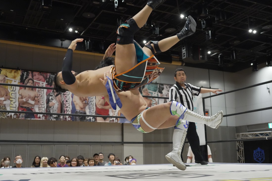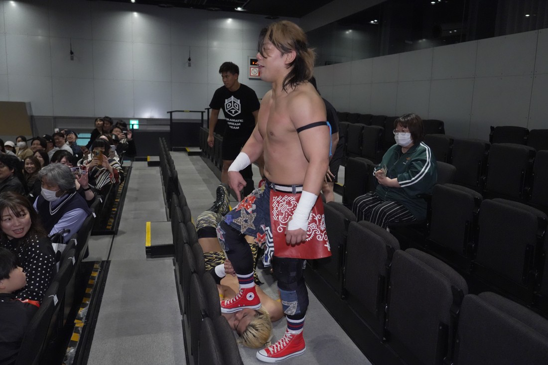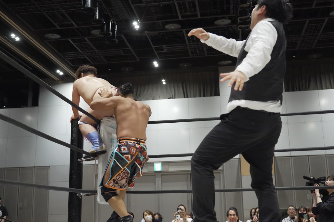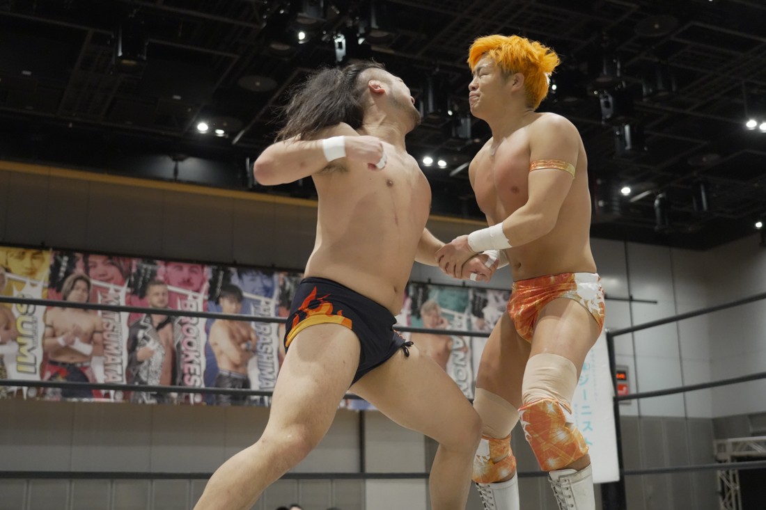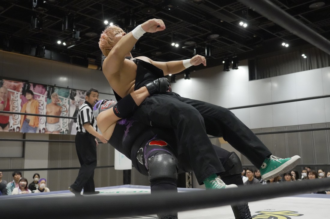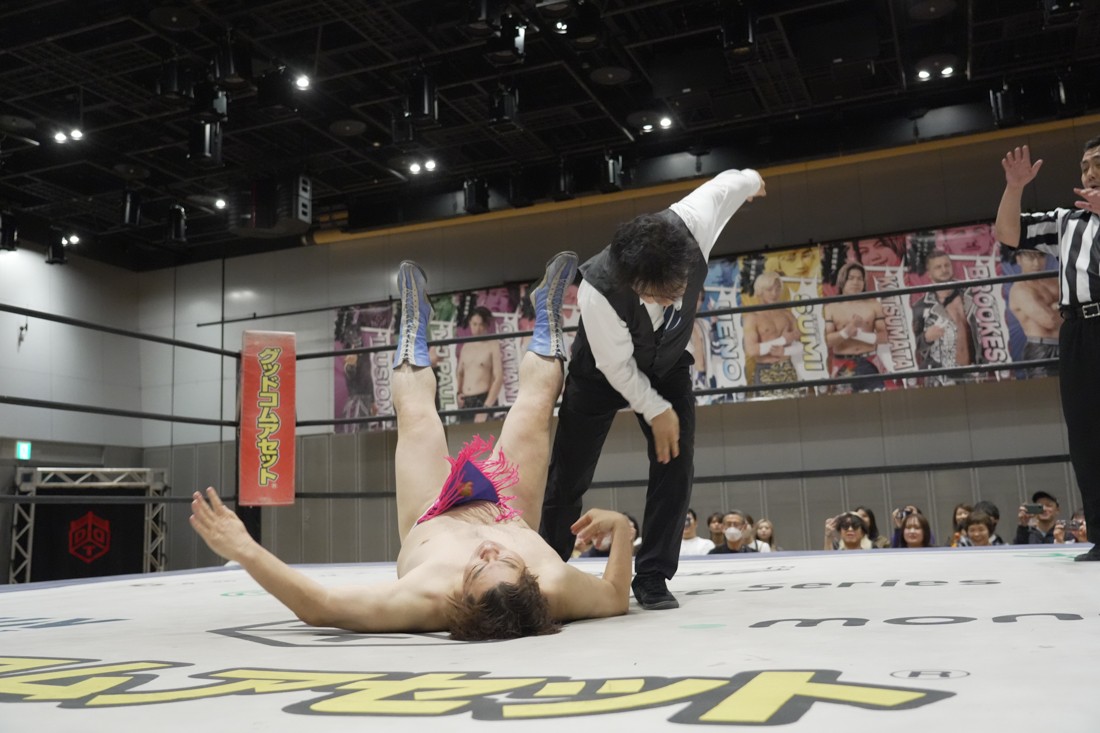 O-MENZの隈取が初めて地方大会に参戦。石田有輝とタッグを組んだ隈取は宮脇純太&葛西陽向と対戦。大歓声で迎え入れられた隈取は、ダンスを取り入れたトリッキーな動きで宮脇も葛西も翻弄していく。途中、葛西の足攻めを食らい、STFに捉えられたが、石田がすぐにカット。葛西が何とか丸め込もうとするが、キックアウトした隈取はドロップキックからDDTで叩き付けると、きりもみ式セントーンを投下して葛西から3カウントを奪った。試合後、隈取は「初めての地方遠征で無地勝利を収めることが出来てよかった。今日はカンペを持ってきたから読ませてくれ! 『北海道も出ます! 見に来てね』以上だ!」とカンペ持参でコメントを出した。