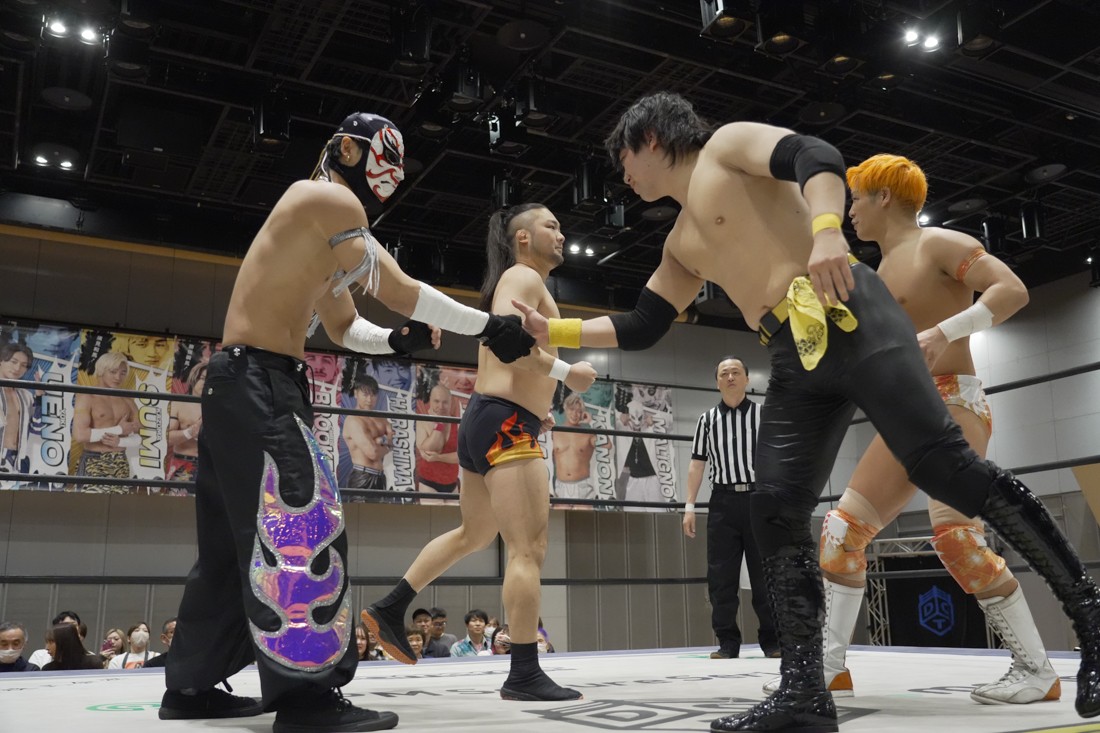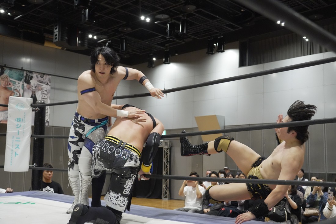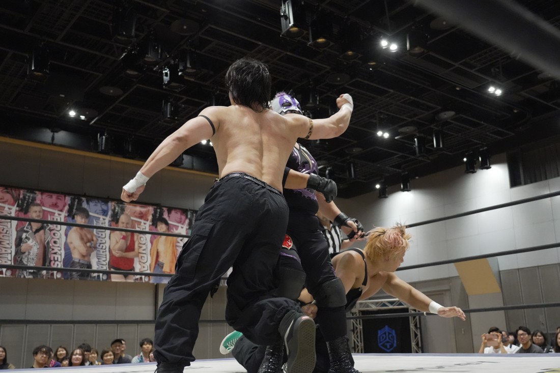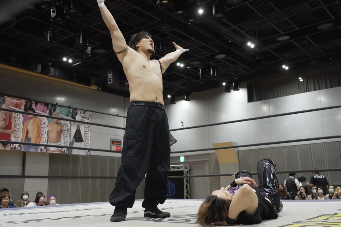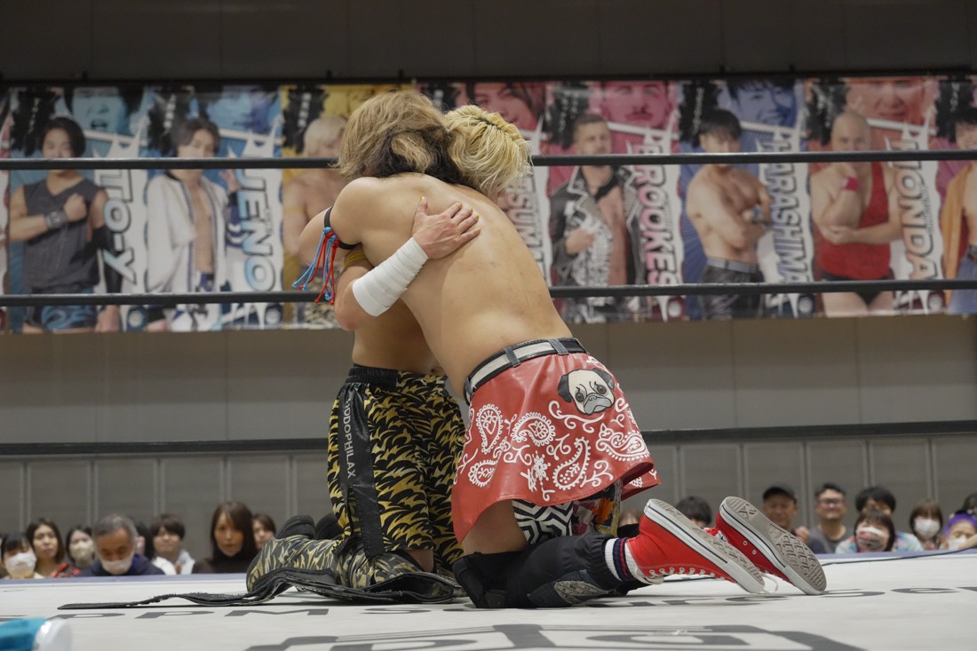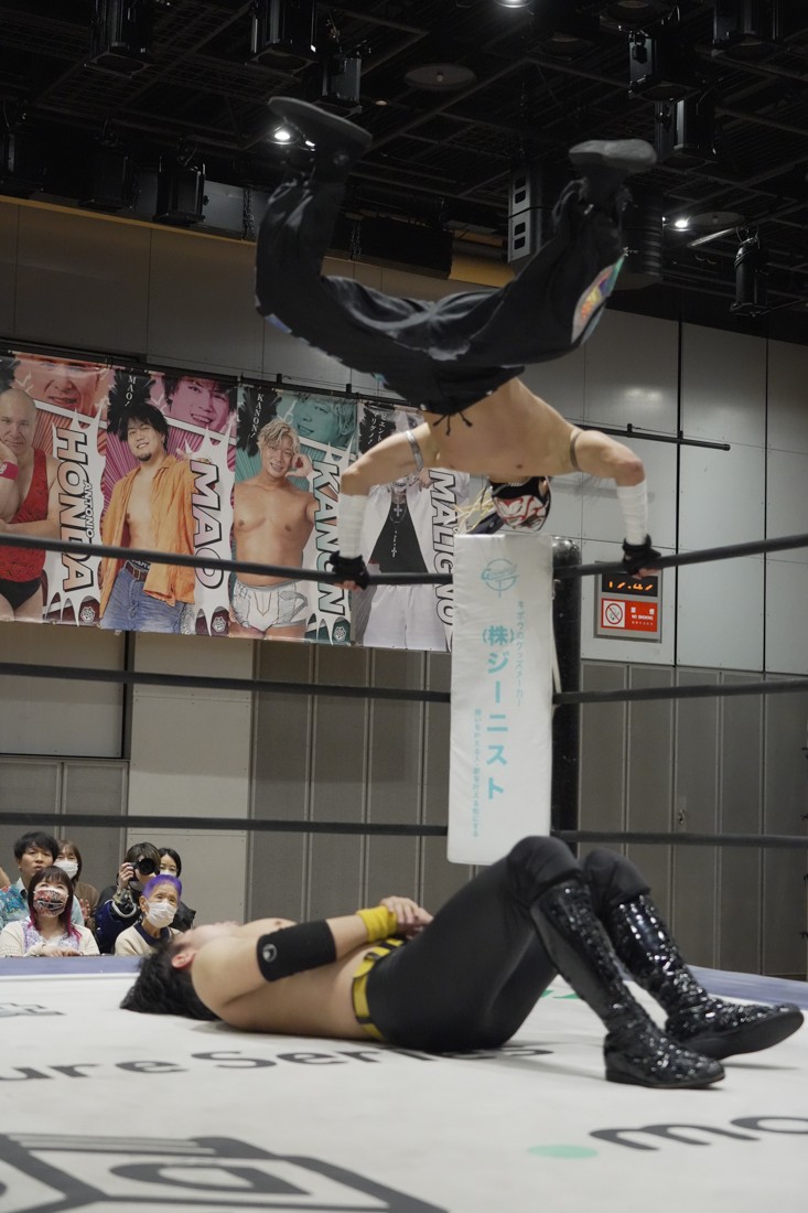 O-MENZの隈取が初めて地方大会に参戦。石田有輝とタッグを組んだ隈取は宮脇純太&葛西陽向と対戦。大歓声で迎え入れられた隈取は、ダンスを取り入れたトリッキーな動きで宮脇も葛西も翻弄していく。途中、葛西の足攻めを食らい、STFに捉えられたが、石田がすぐにカット。葛西が何とか丸め込もうとするが、キックアウトした隈取はドロップキックからDDTで叩き付けると、きりもみ式セントーンを投下して葛西から3カウントを奪った。試合後、隈取は「初めての地方遠征で無地勝利を収めることが出来てよかった。今日はカンペを持ってきたから読ませてくれ! 『北海道も出ます! 見に来てね』以上だ!」とカンペ持参でコメントを出した。