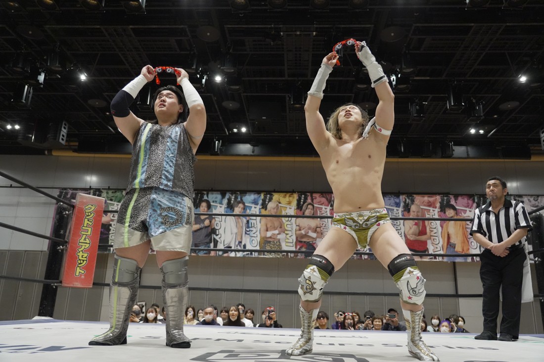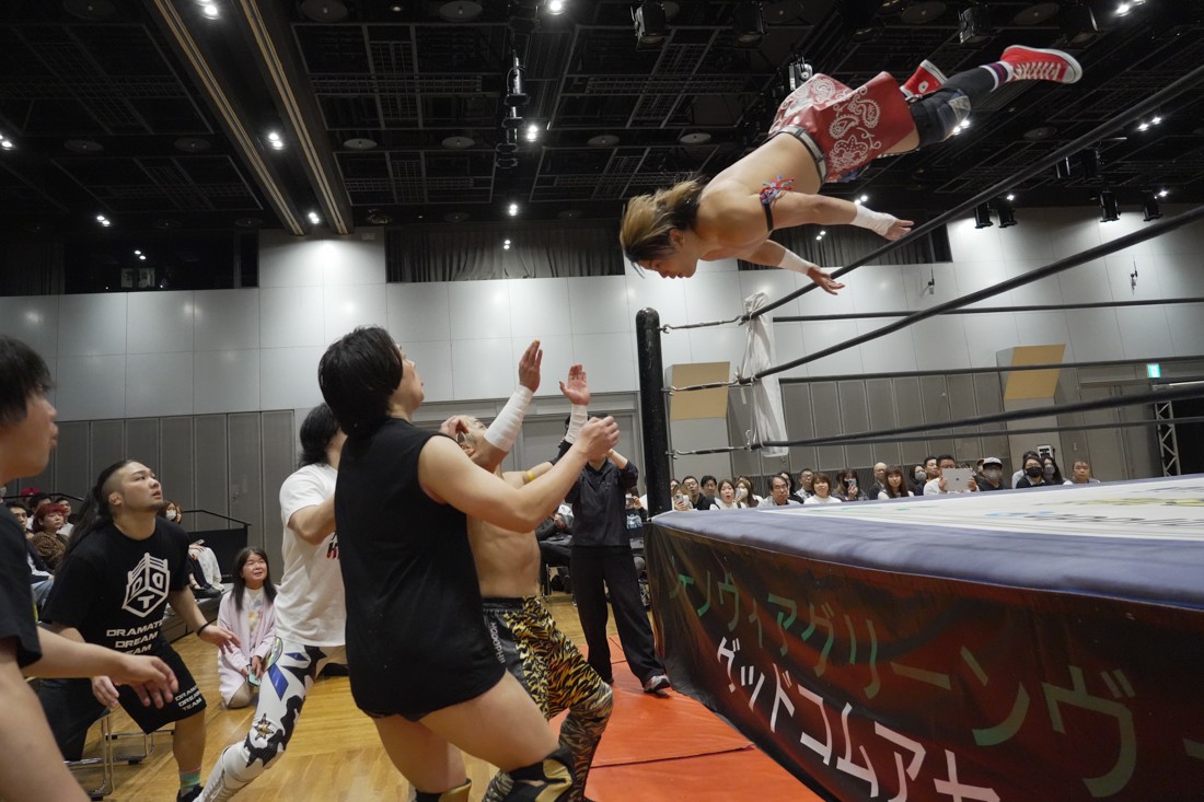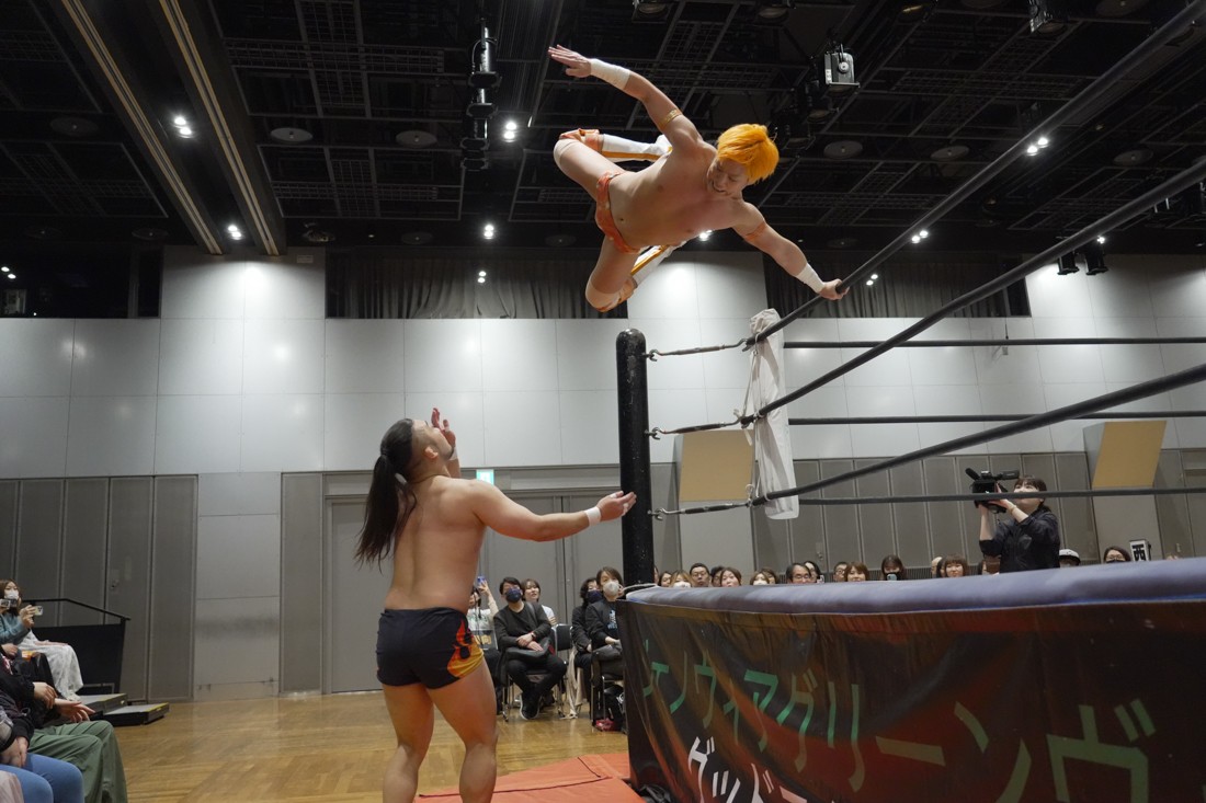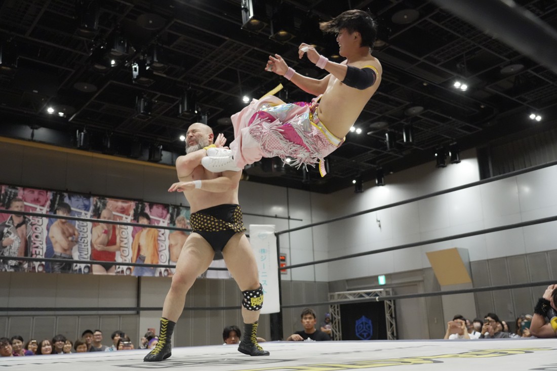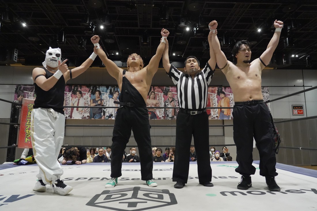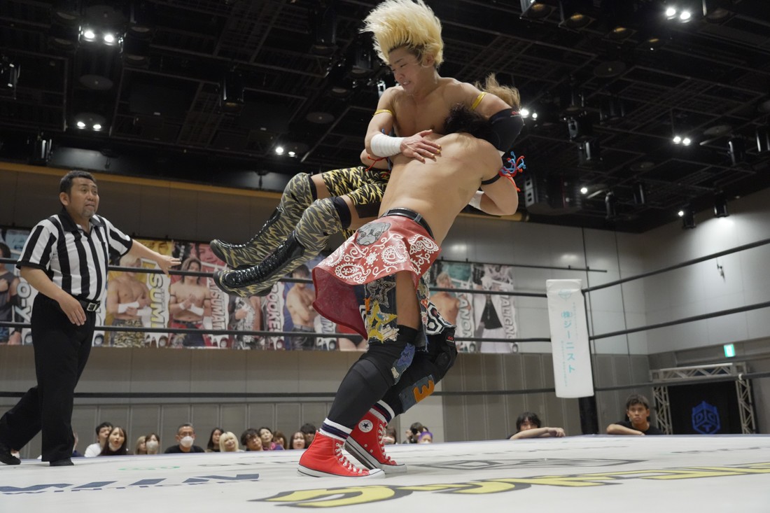 O-MENZの隈取が初めて地方大会に参戦。石田有輝とタッグを組んだ隈取は宮脇純太&葛西陽向と対戦。大歓声で迎え入れられた隈取は、ダンスを取り入れたトリッキーな動きで宮脇も葛西も翻弄していく。途中、葛西の足攻めを食らい、STFに捉えられたが、石田がすぐにカット。葛西が何とか丸め込もうとするが、キックアウトした隈取はドロップキックからDDTで叩き付けると、きりもみ式セントーンを投下して葛西から3カウントを奪った。試合後、隈取は「初めての地方遠征で無地勝利を収めることが出来てよかった。今日はカンペを持ってきたから読ませてくれ! 『北海道も出ます! 見に来てね』以上だ!」とカンペ持参でコメントを出した。