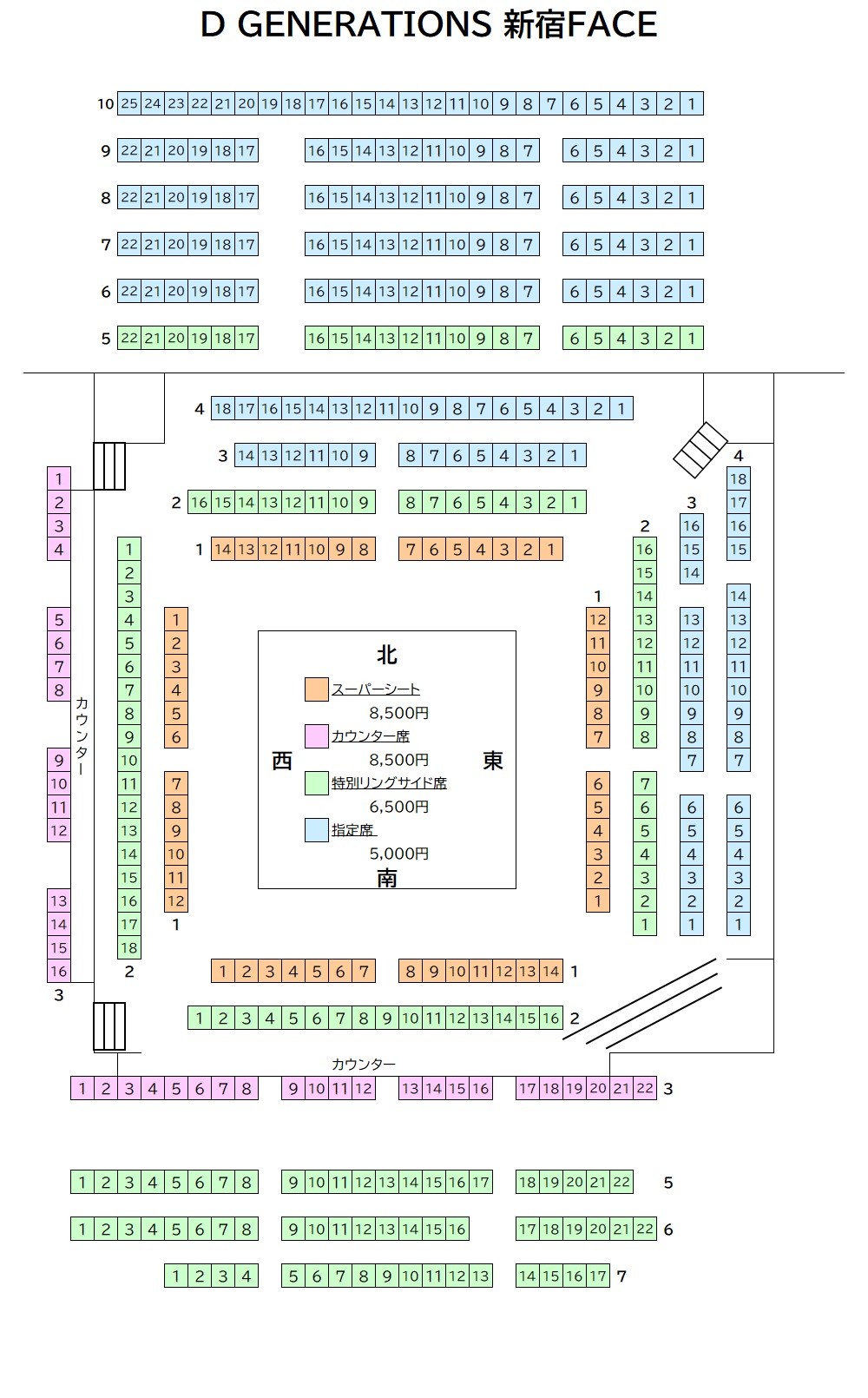 座席図は現在の予定です。当日、列数などが変更される場合がございます。予めご了承の上、チケットをご購入ください。